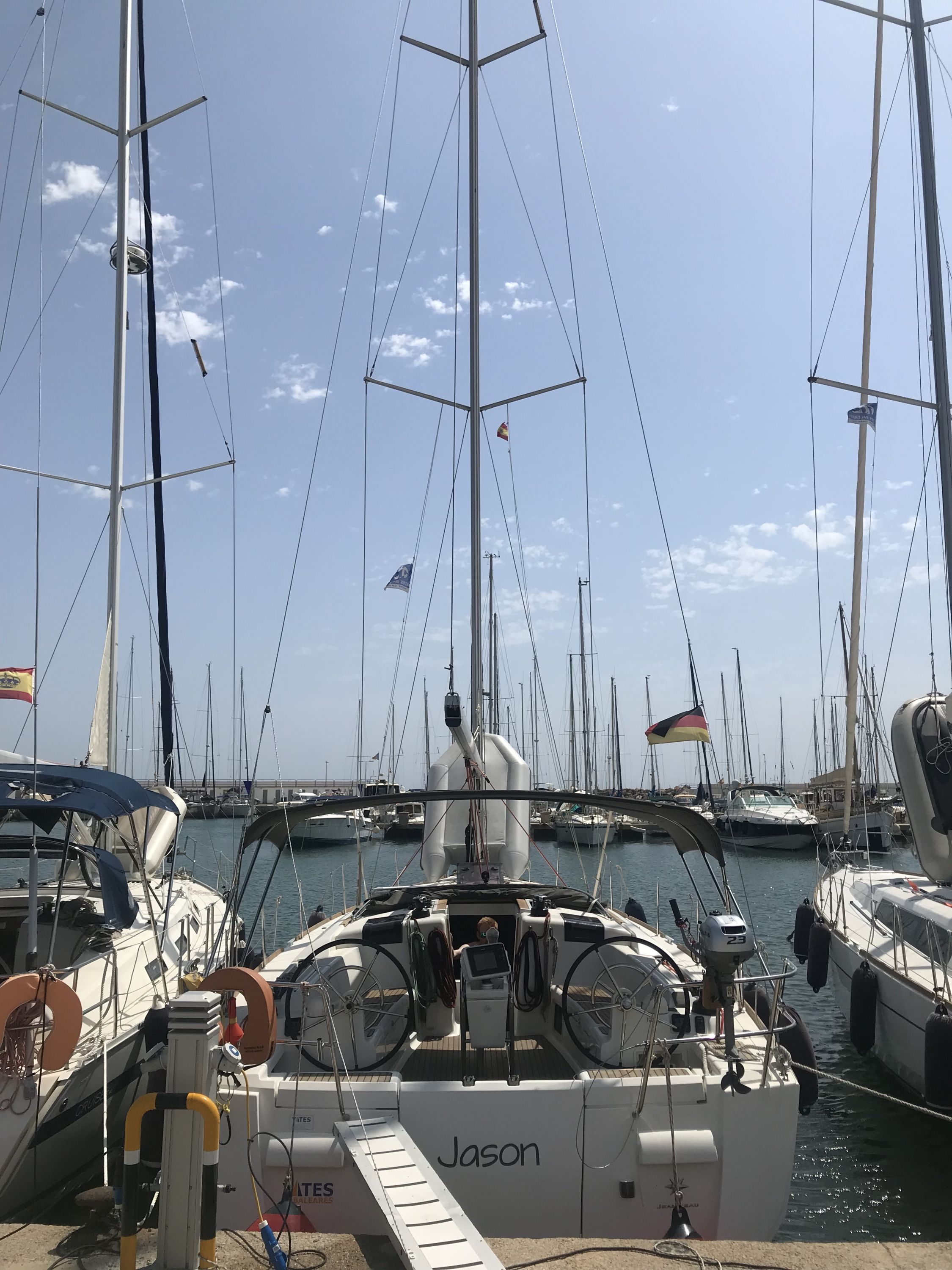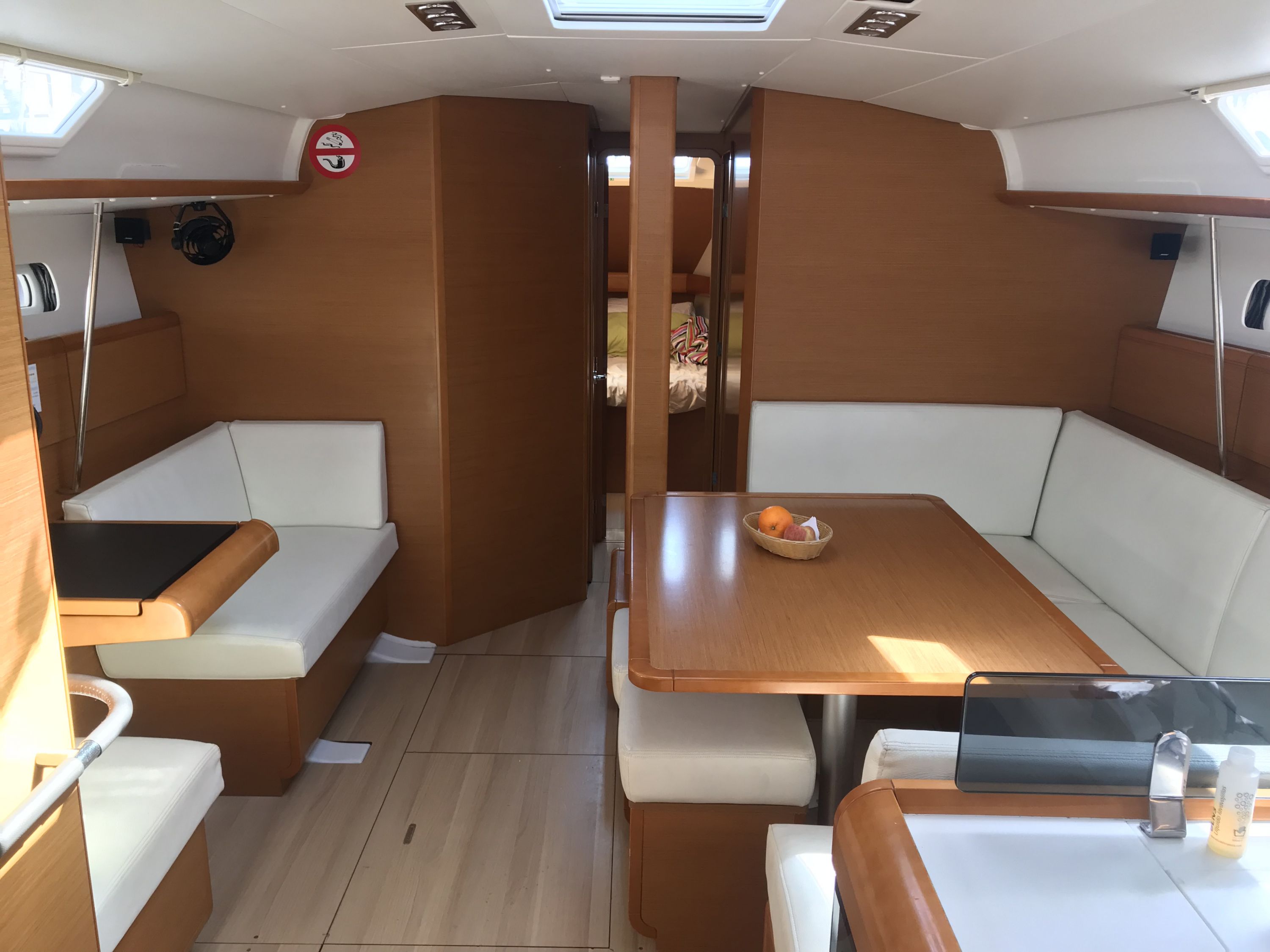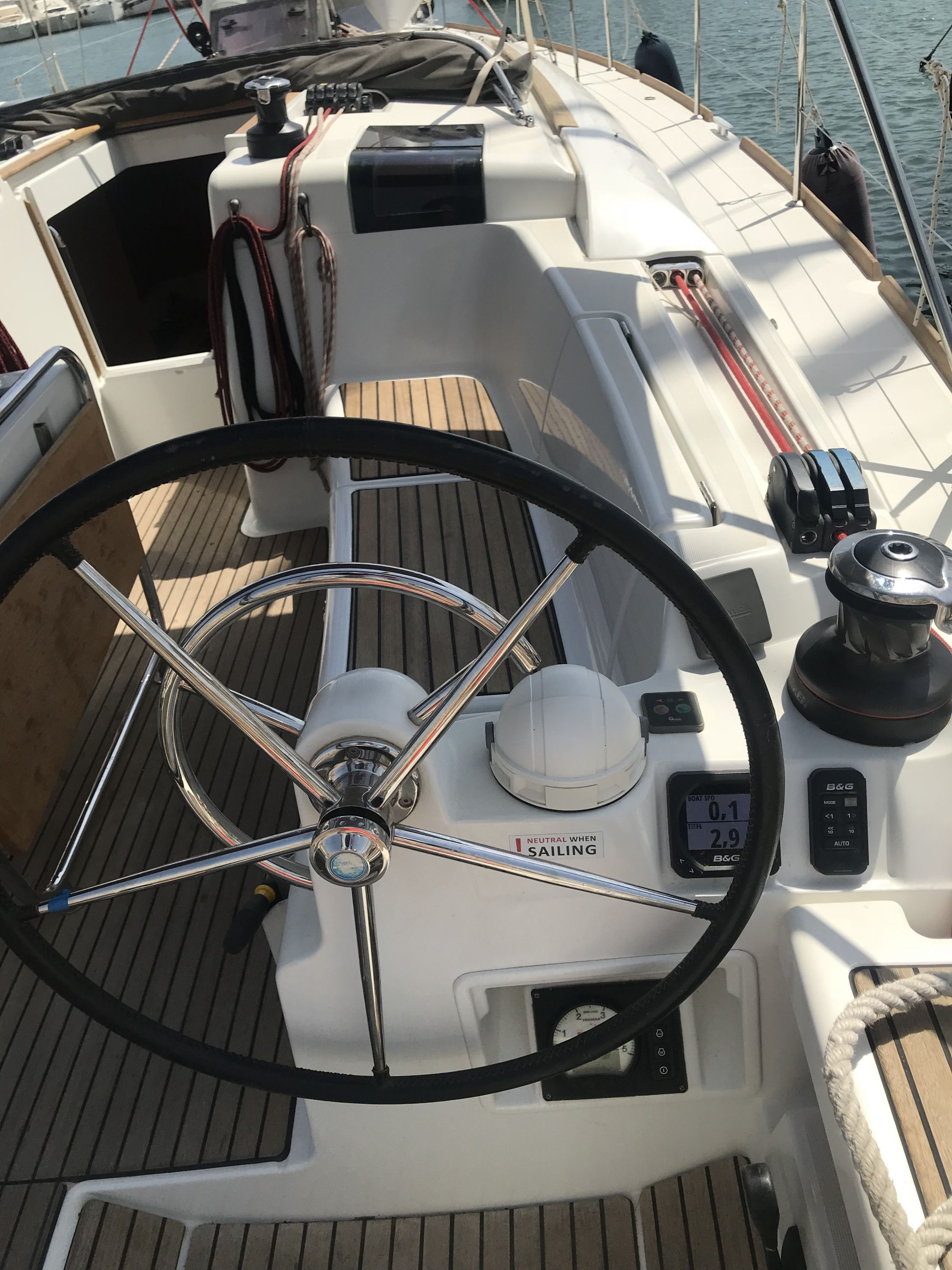 | Navigation | Barometer, Echolot, elektr. Seekarten, Fernglas, GPS mit Kartenplotter im Cockpit, Hafenhandbücher, Handpeilkompass, Kompass, Seekarten, Sumlog, Tablet-PC am Kartentisch, Windmesser |