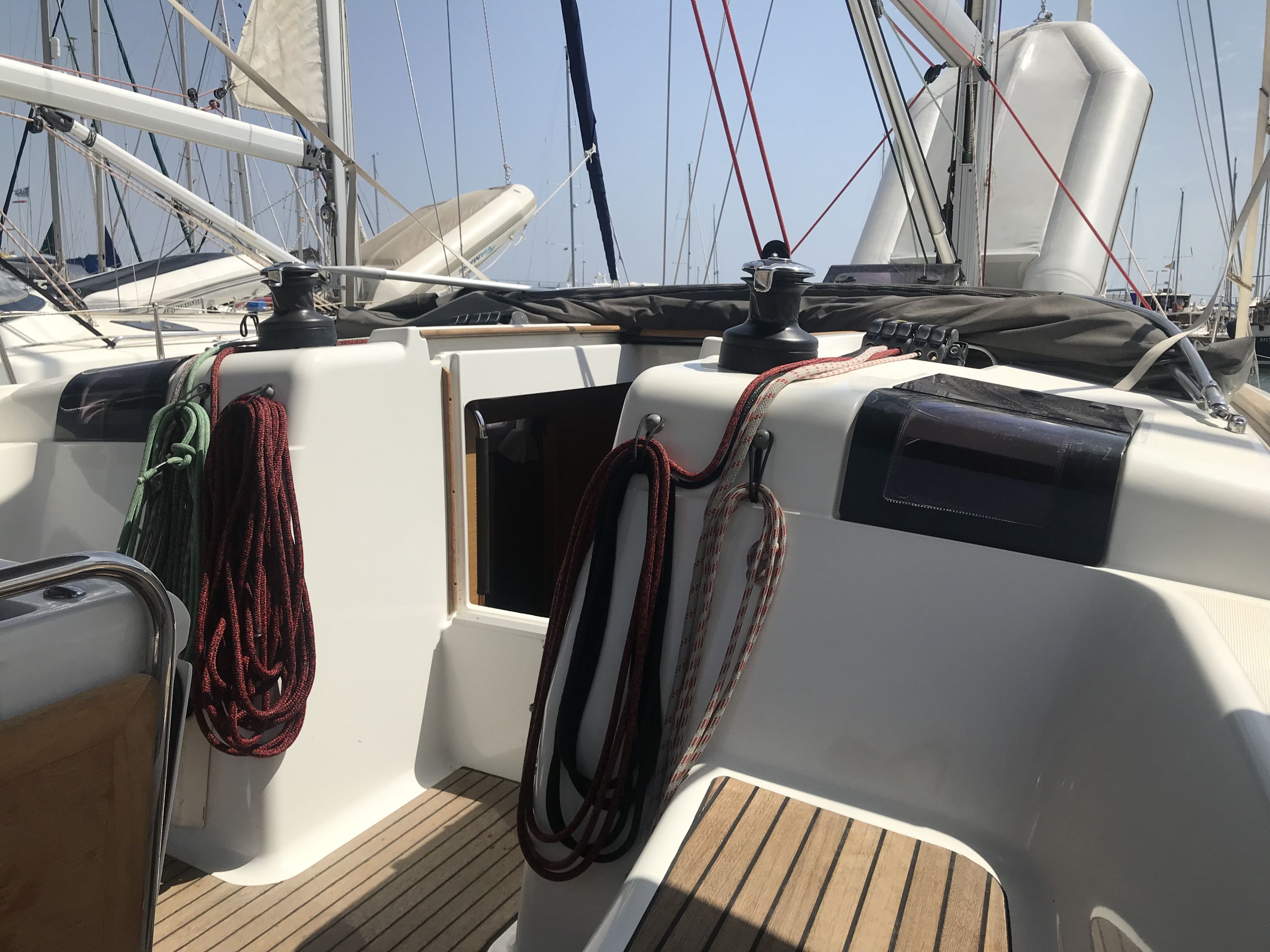 | Outside | 220 V-Landanschluss, Badeleiter, Biminitop, Cockpitdusche, Cockpitlautsprecher, Cockpittisch, elektr. Ankerwinsch, Gangway, Sonnensegel, Sprayhood, Windex |