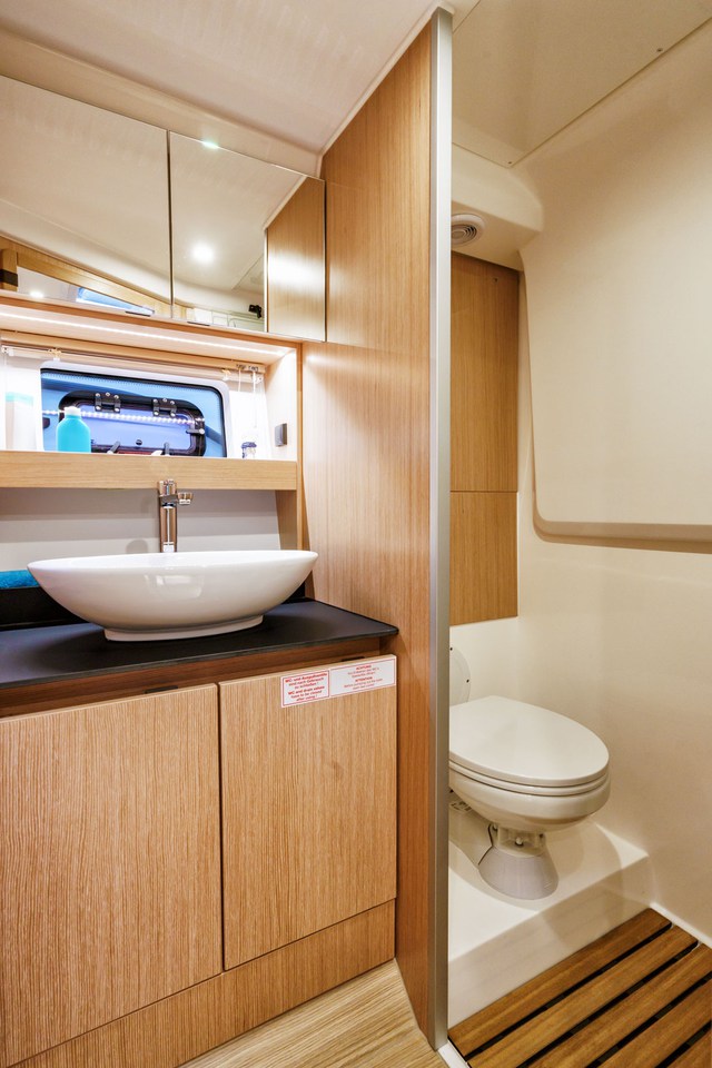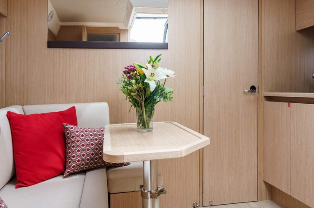 | Inside | Gasherd, Heizlüfter, Heizung, Inverter 12V/220V, Kaffeemaschine, Kühlschrank, Lautsprecher im Salon, Pantryausstattung, Sound System, Spülbecken |