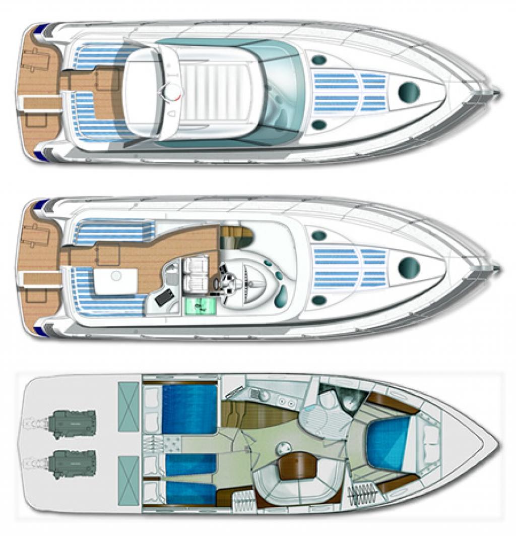 | Outside | 220 V-Landanschluss, Anker mit Kette, Außendusche, elektr. Ankerwinsch, Gangway, Heckanker, Heckdusche |