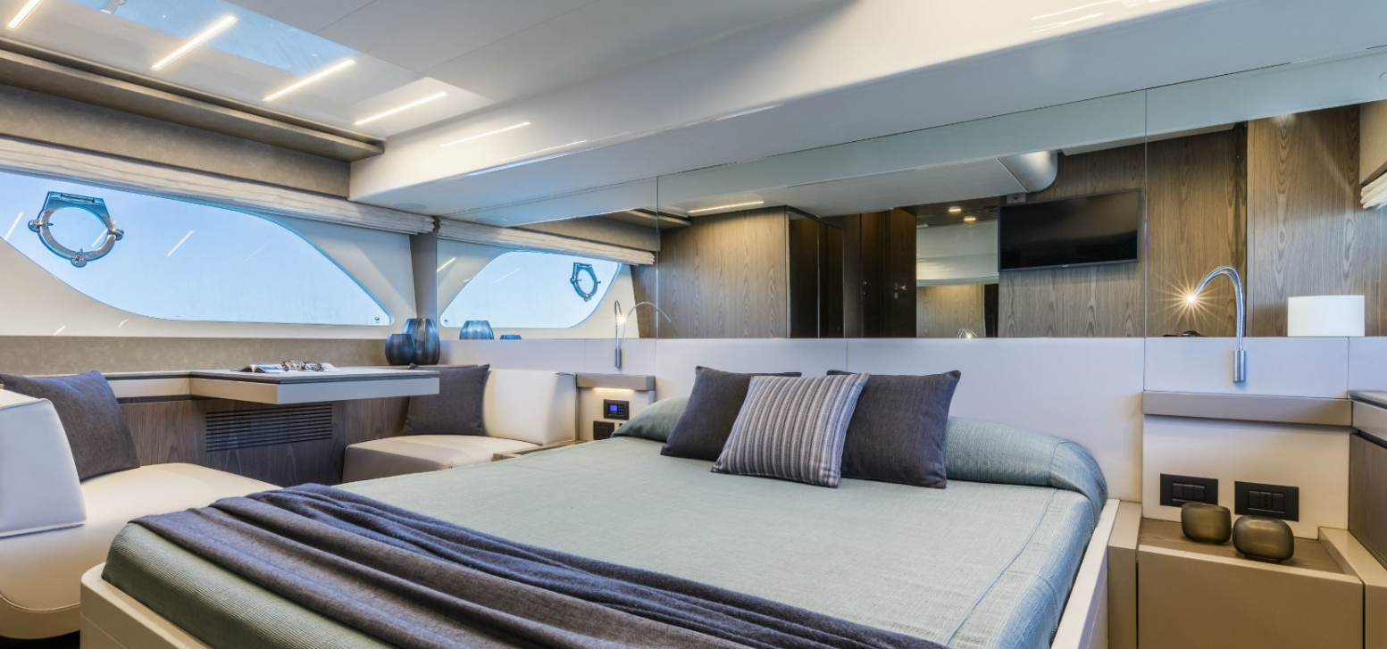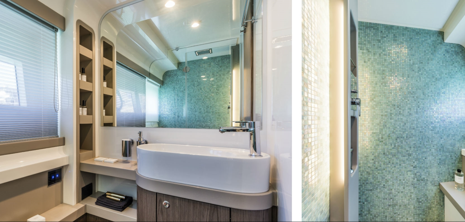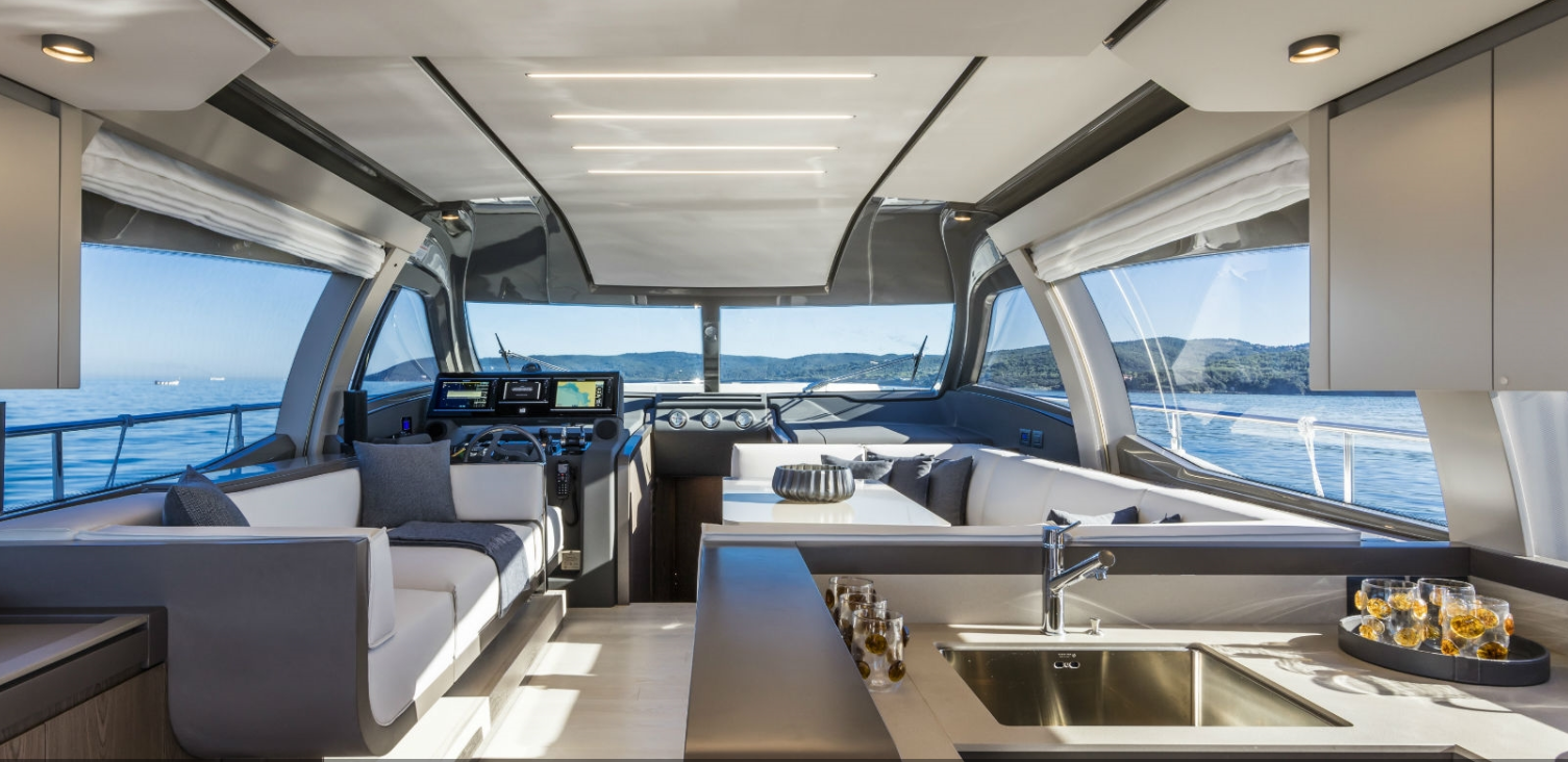 | Inside | Backofen, Eiswürfelmaschine, Generator, Hi-Fi System, Klimaanlage (ohne Landstrombedarf), Ladegerät, Salontisch absenkbar, TV, Watermaker |