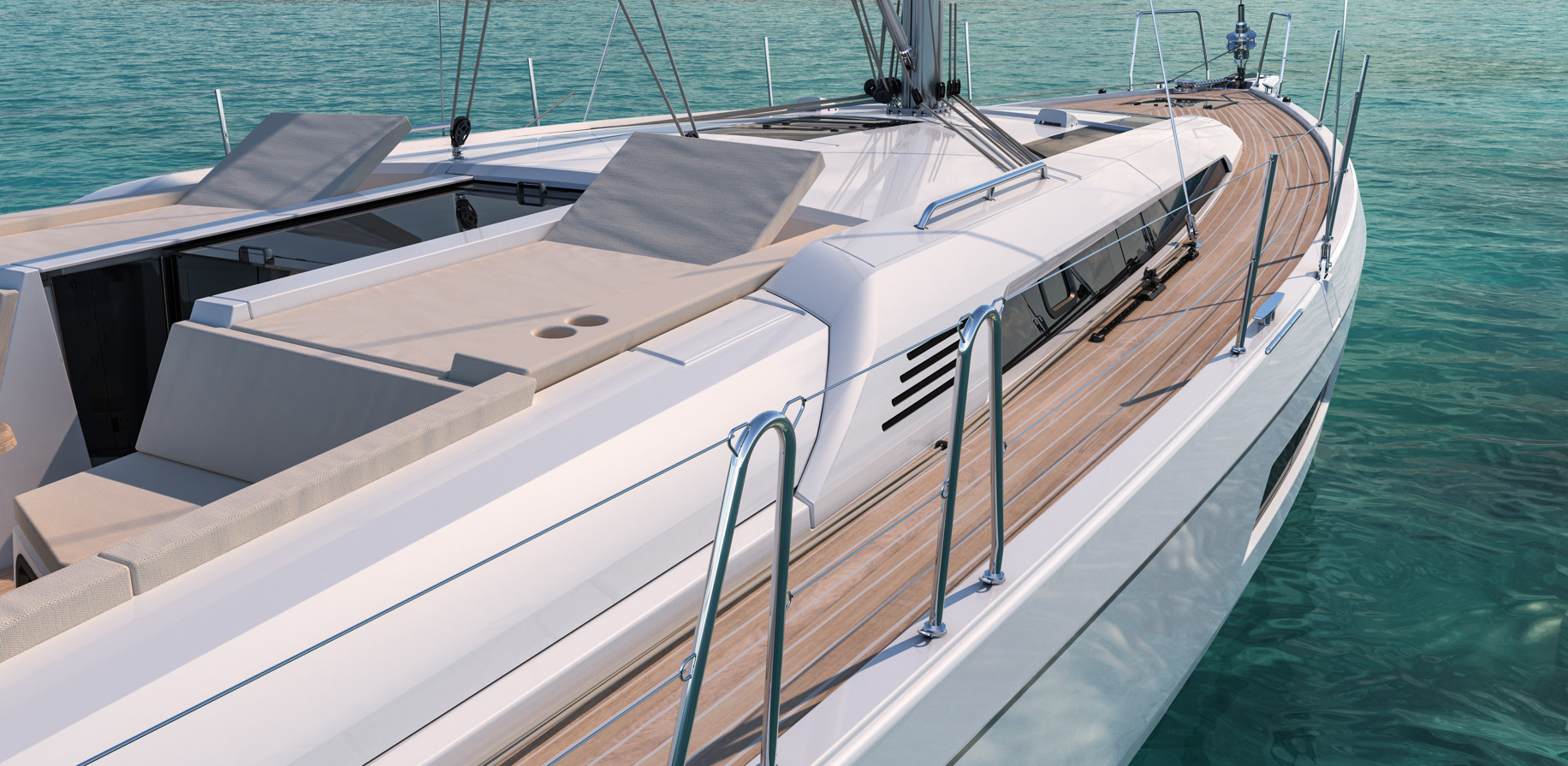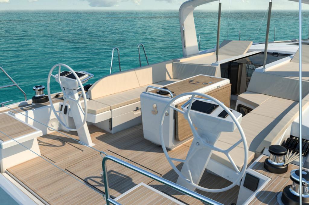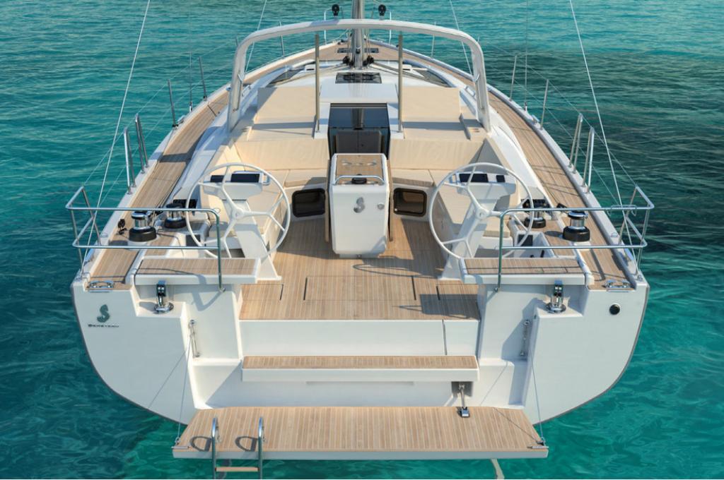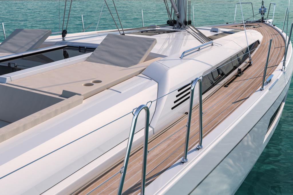 | Outside | Badeleiter, Badeplattform, Biminitop, Cockpitdusche, Cockpitpolster, elektr. Ankerwinsch, elektr. Winsch, Lifeline System, Schnorchelausrüstung, Selbstholende Winschen, Sprayhood, Teakdeck |