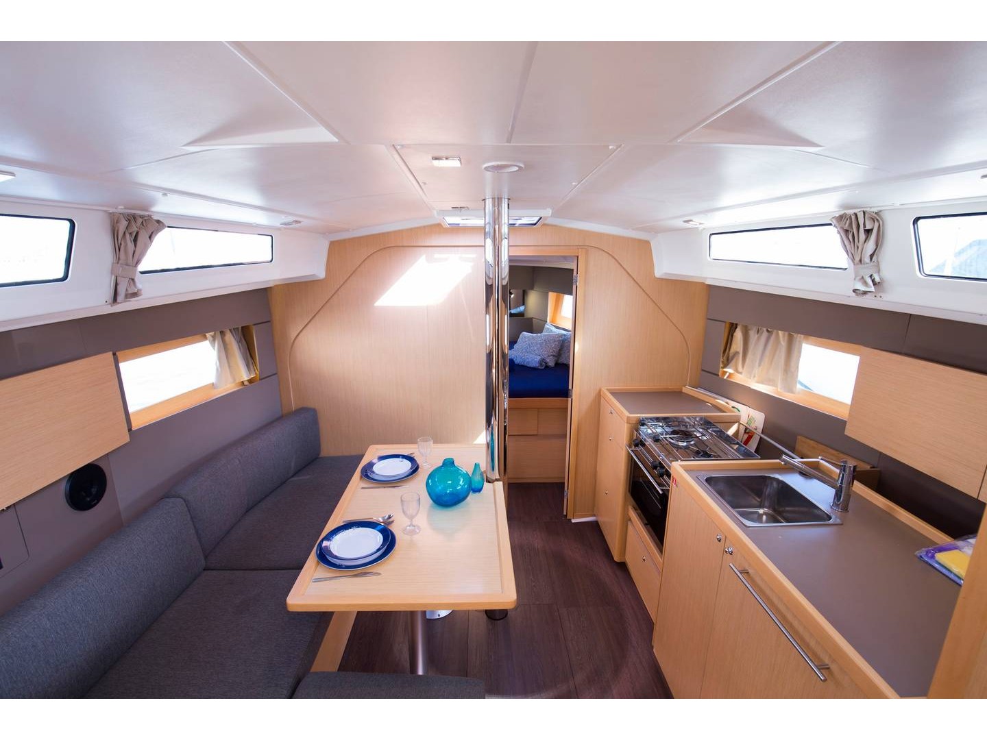 | Outside | Badeleiter, Badeplattform, Biminitop, Cockpitlautsprecher, Cockpitpolster, Cockpittisch, elektr. Ankerwinsch, Sprayhood, Teak im Cockpit |