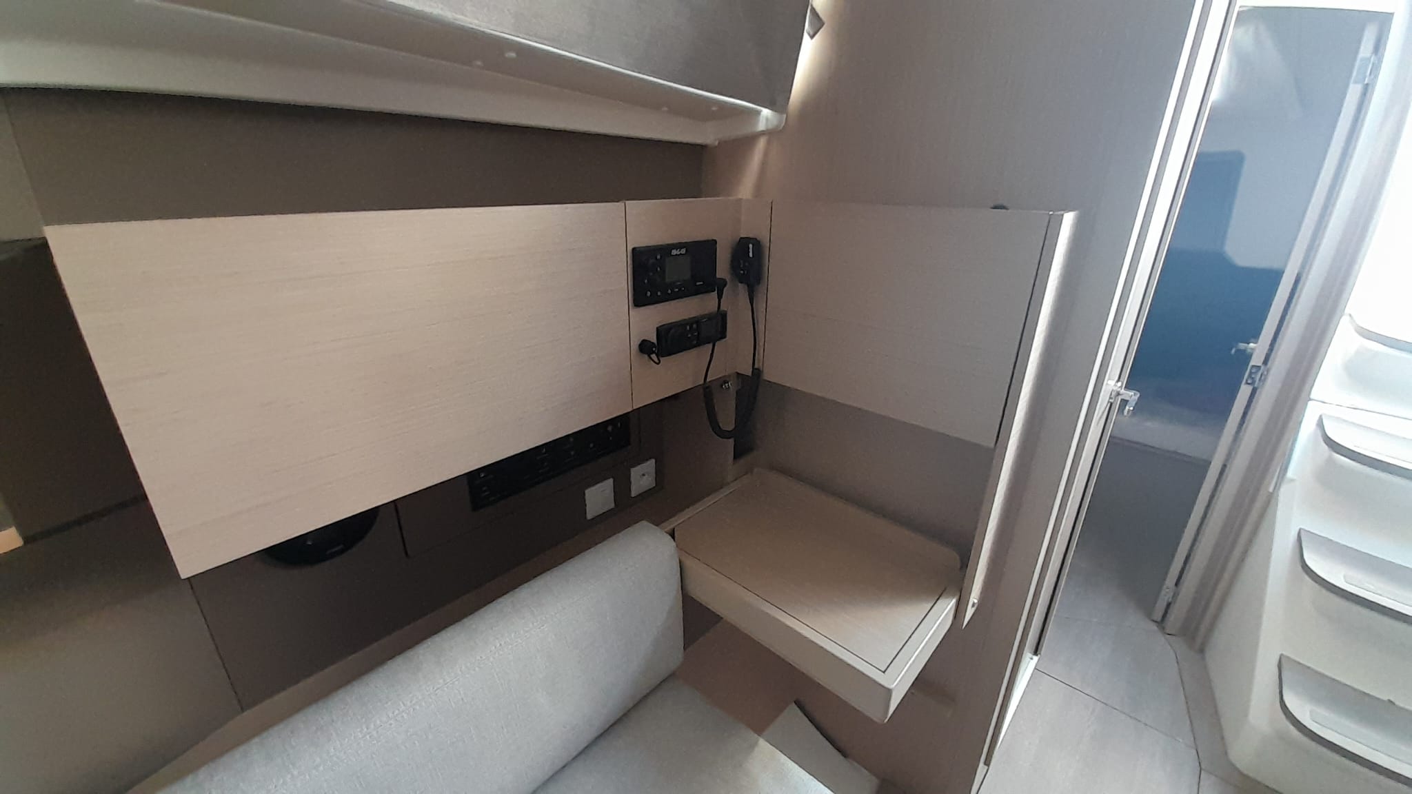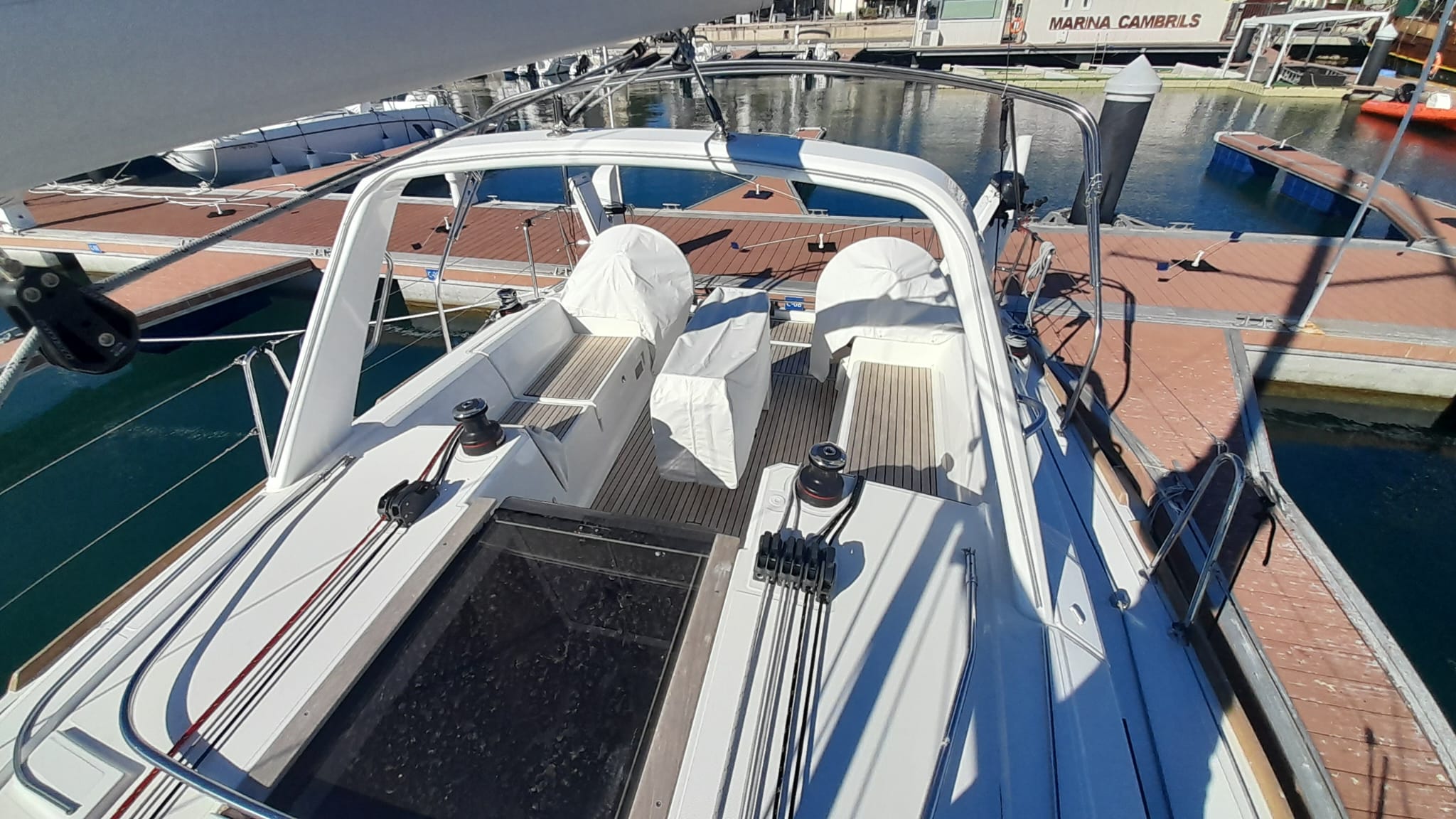 | Outside | Badeleiter, Badeplattform, Biminitop, Cockpitlautsprecher, Cockpitpolster, Cockpittisch, elektr. Ankerwinsch, Sprayhood, Teak im Cockpit |