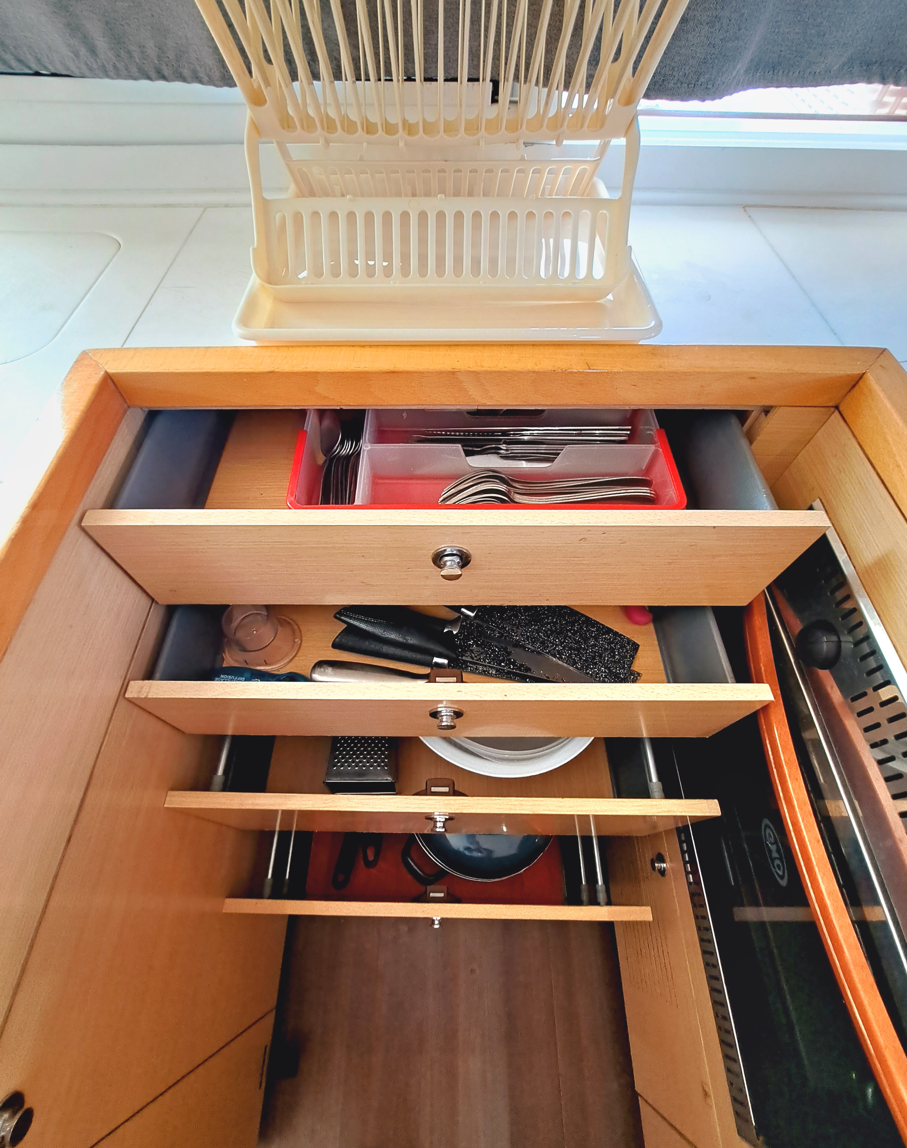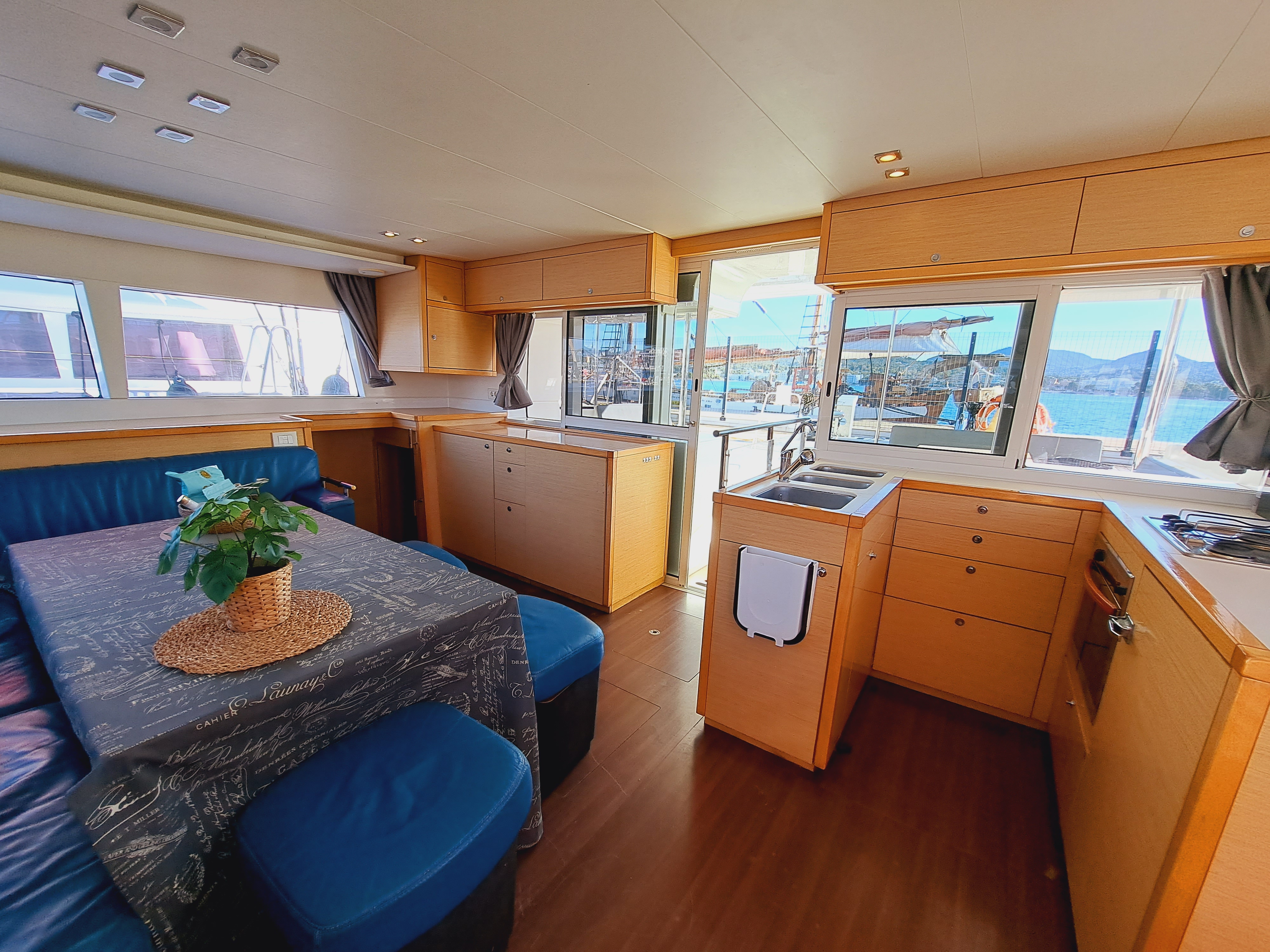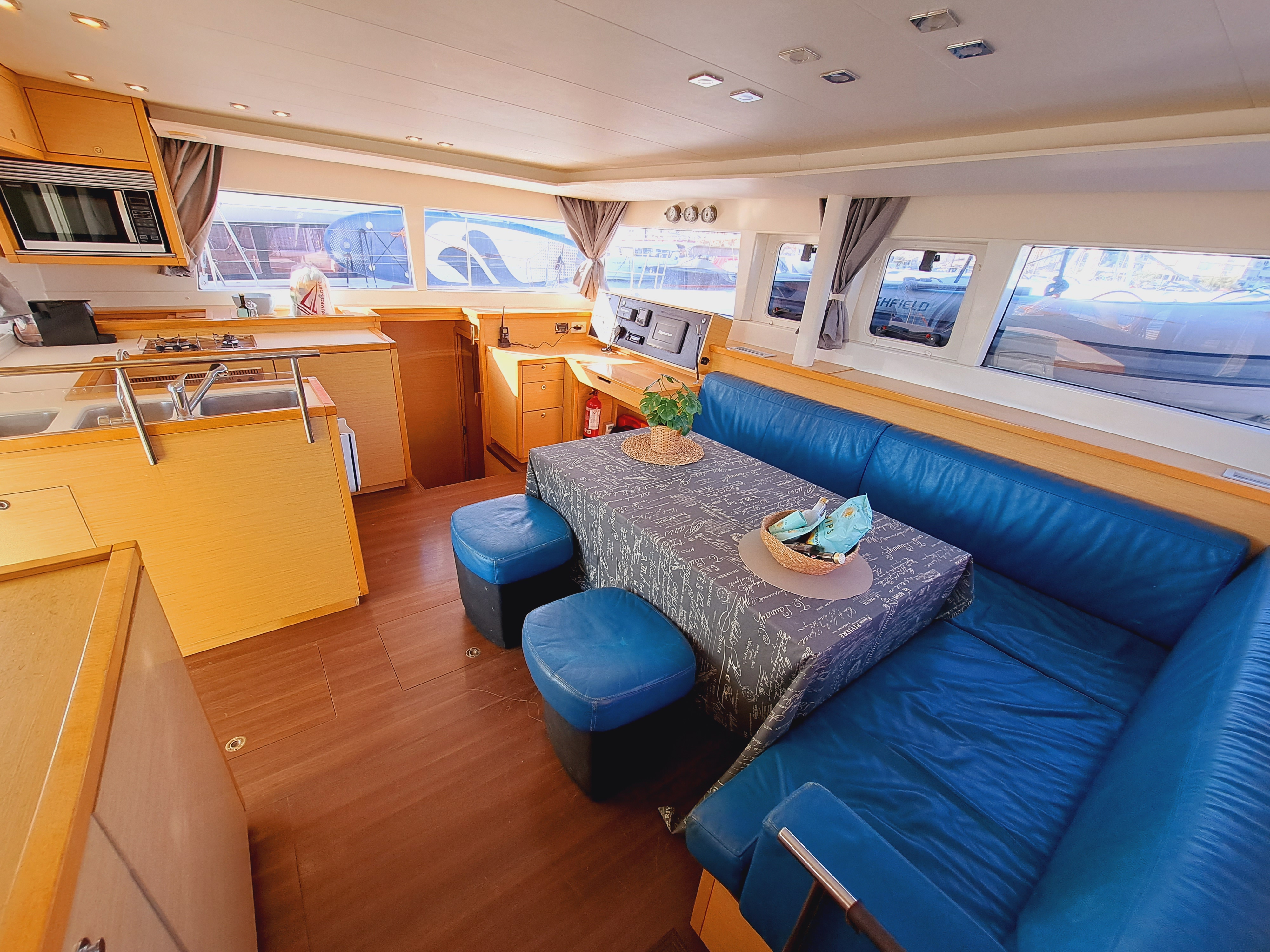| Inside | 2. Kühlschrank, Gefrierschrank, Generator, Inverter 12V/220V, Klimaanlage (ohne Landstrombedarf), Kühlschrank, Ladegerät, Radio mit CD, Salontisch absenkbar, Ventilator, Watermaker |