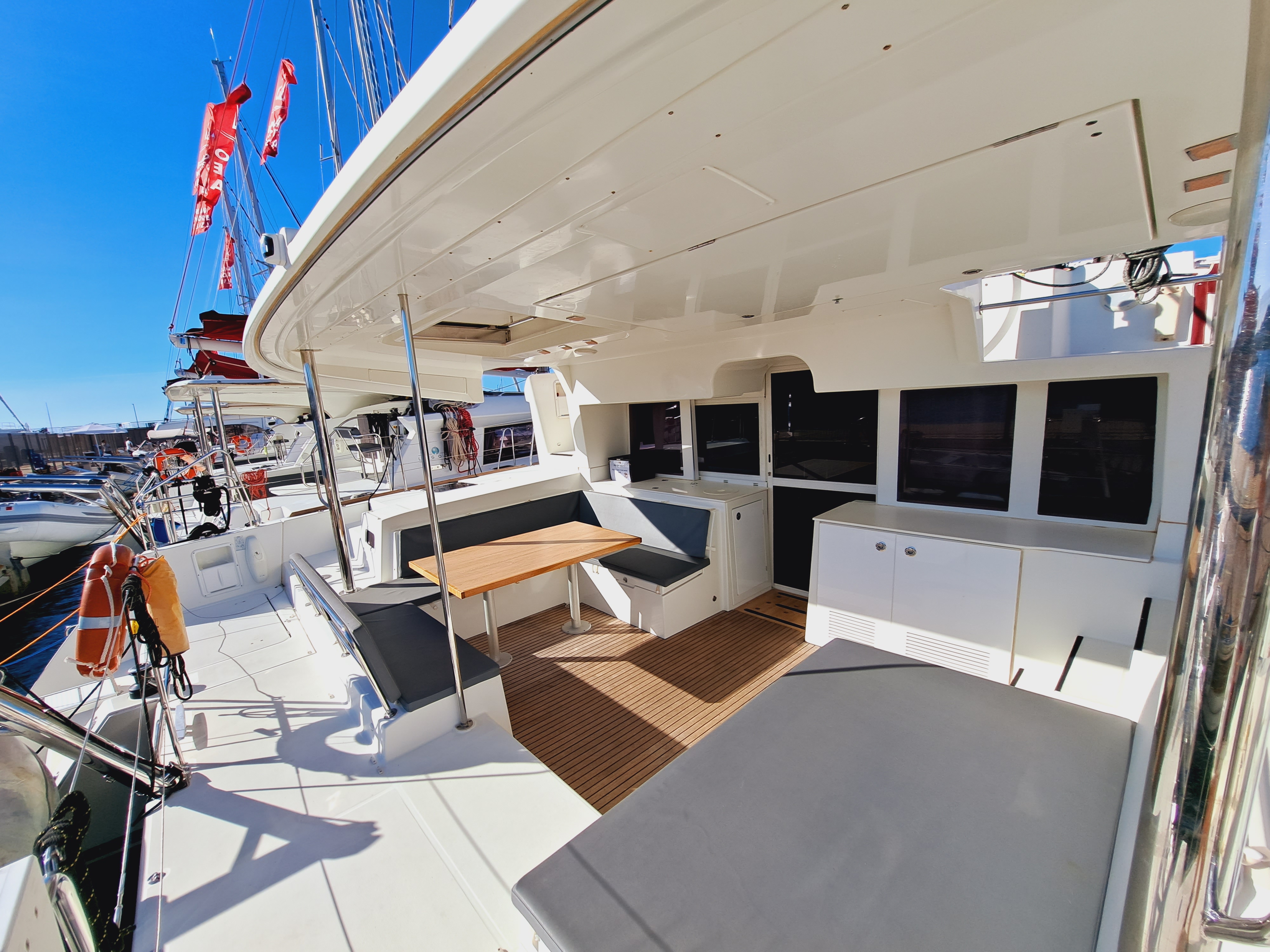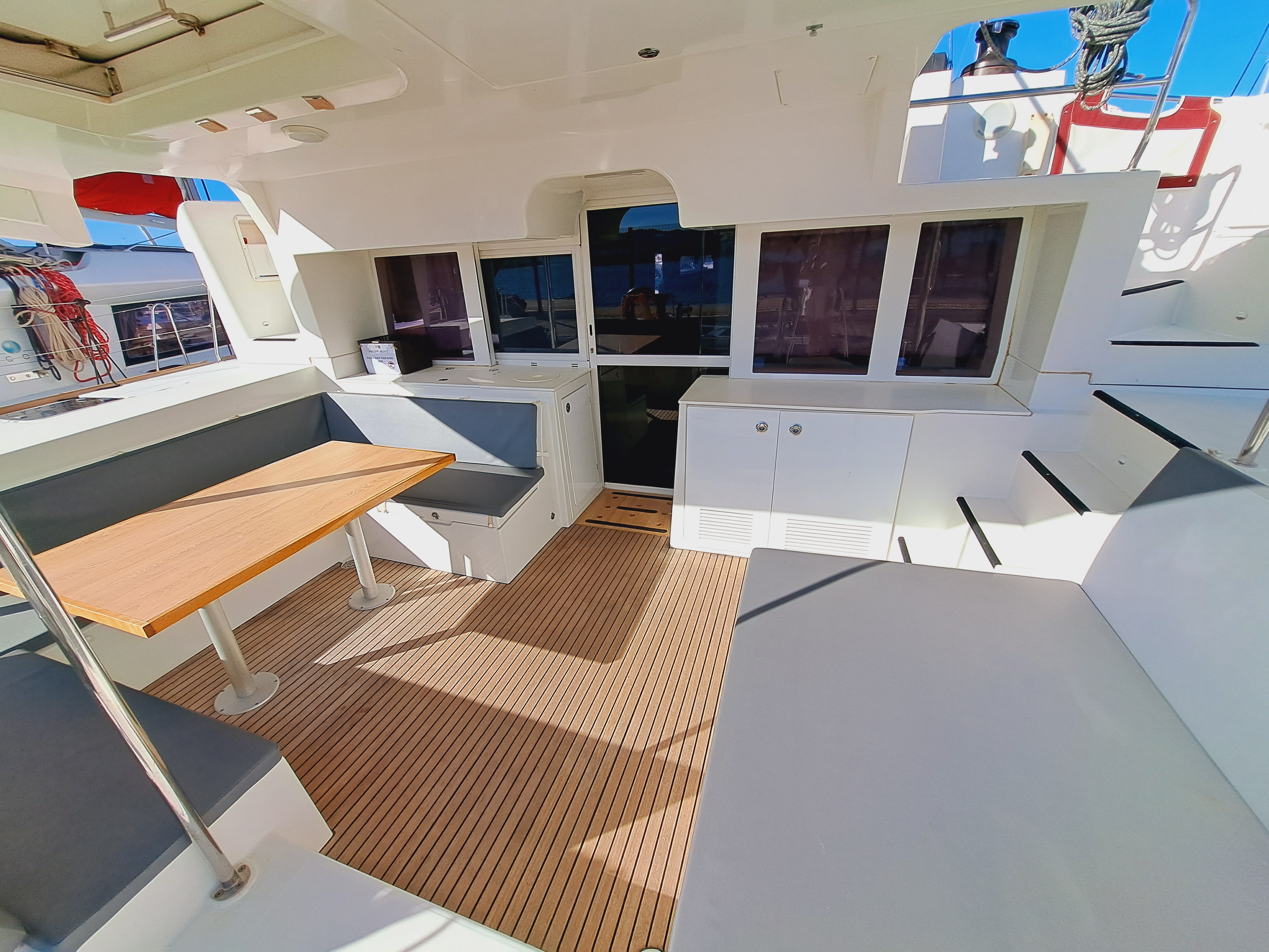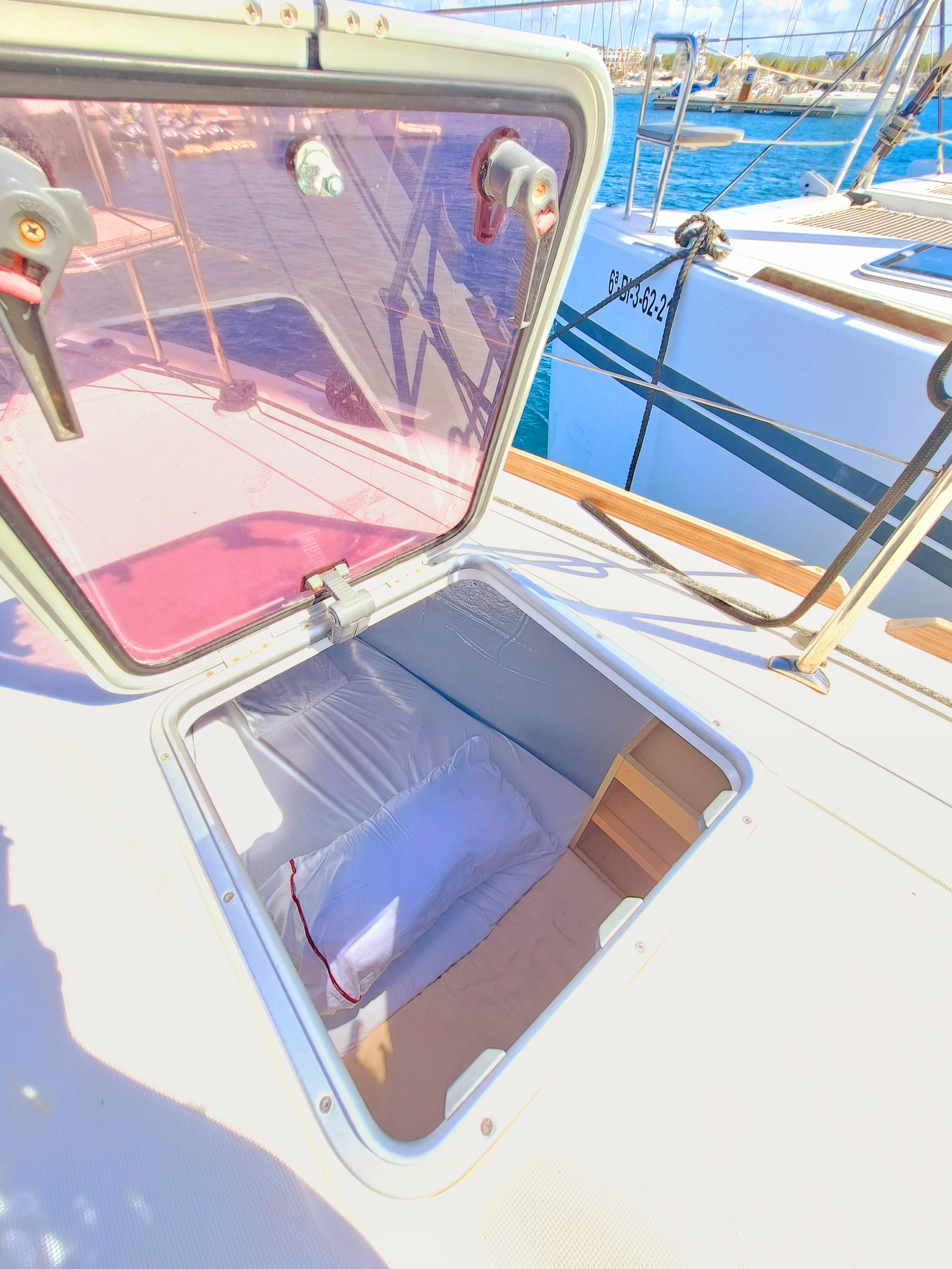 | Outside | Biminitop, Cockpitdusche warm/kalt, Cockpitlautsprecher, Cockpittisch, elektr. Ankerwinsch, elektr. Winsch, Fender, Festmacherleinen |