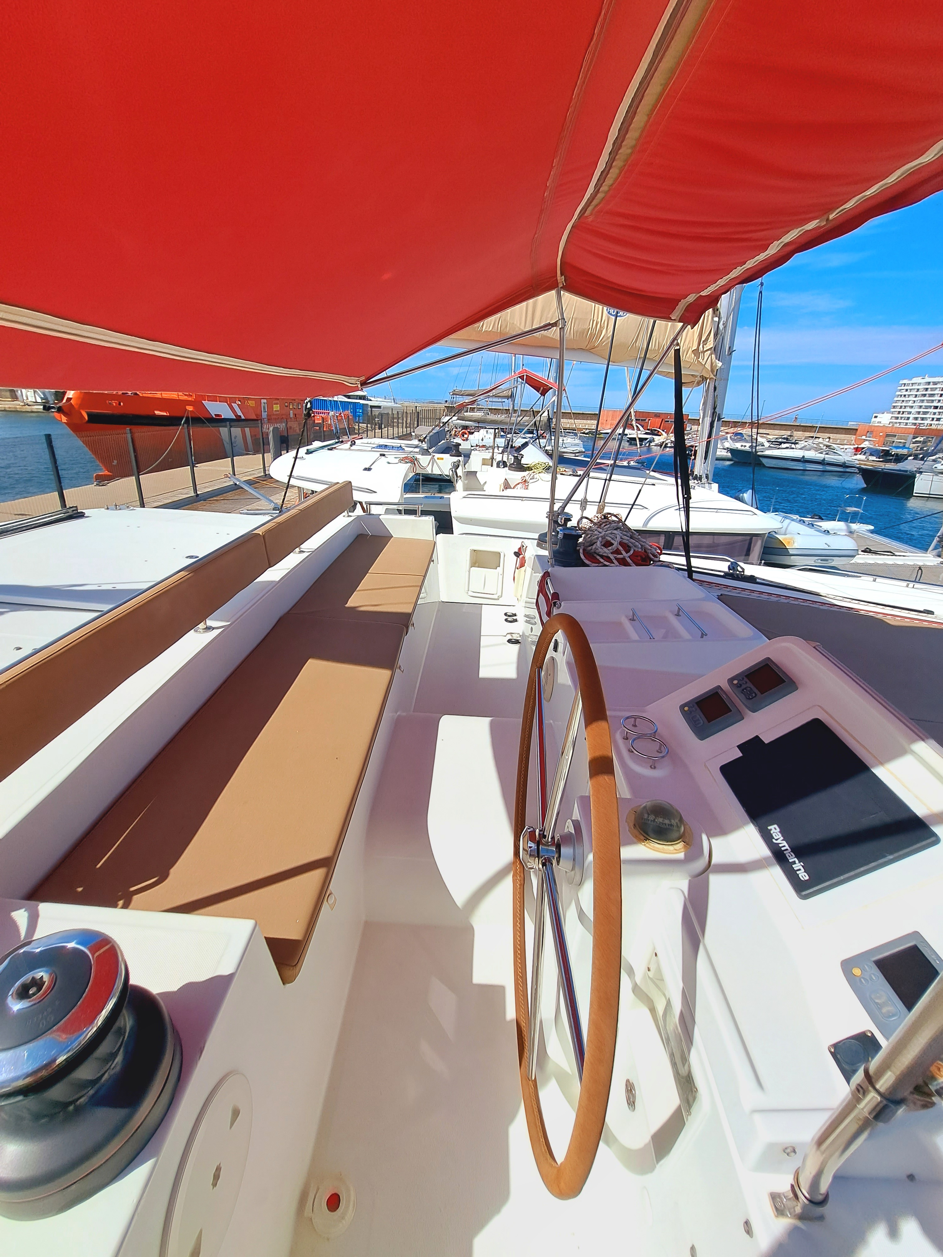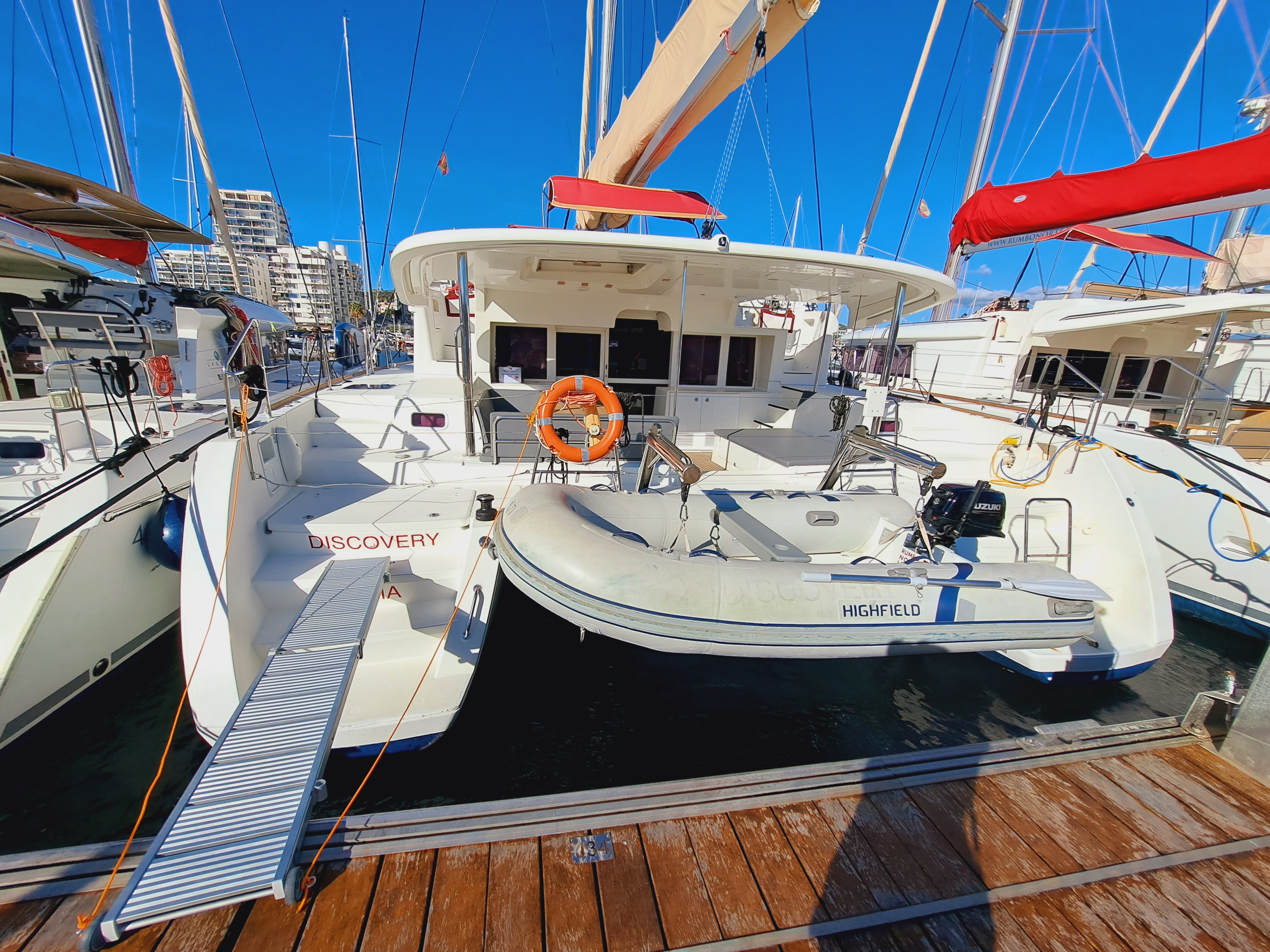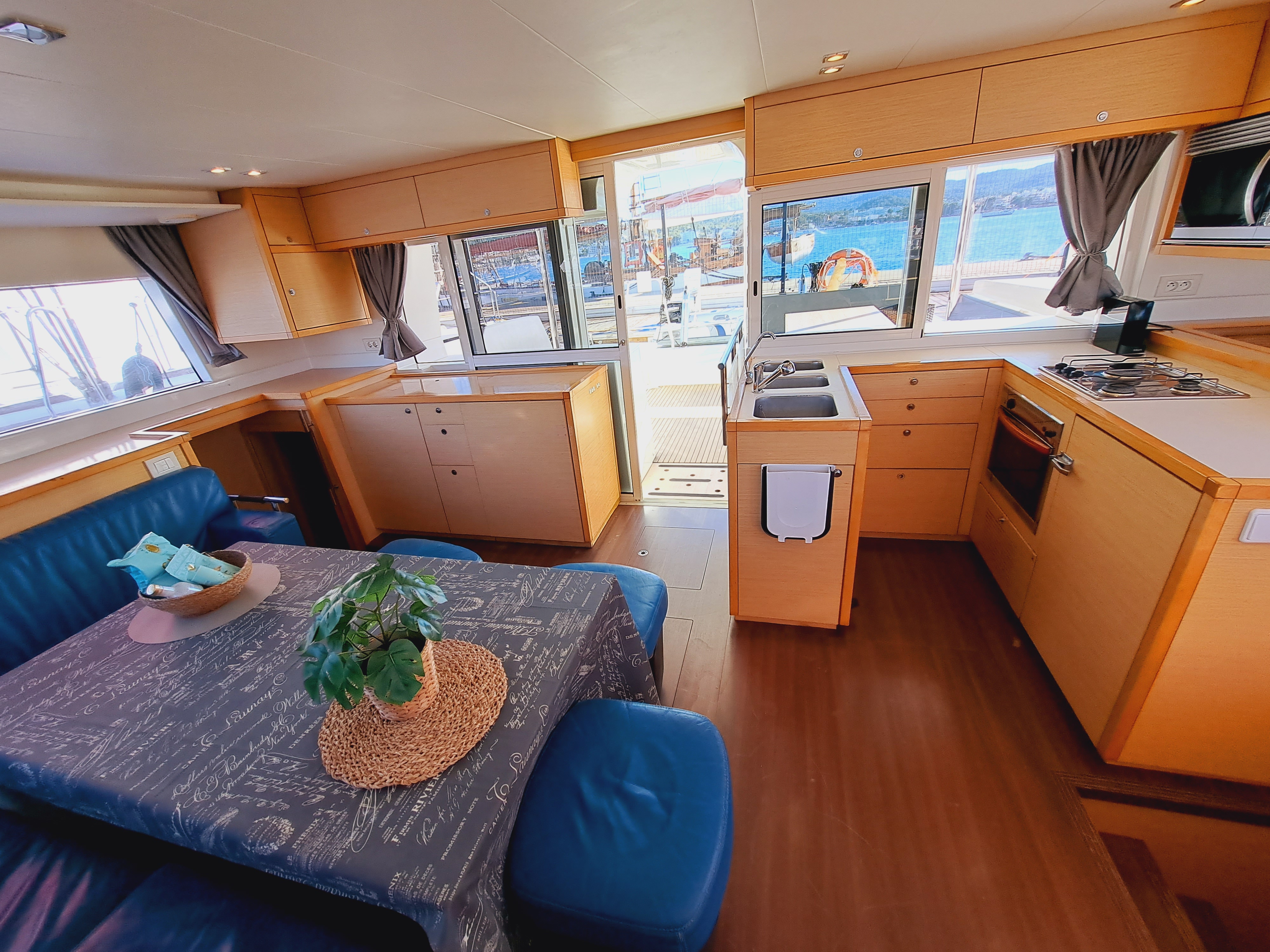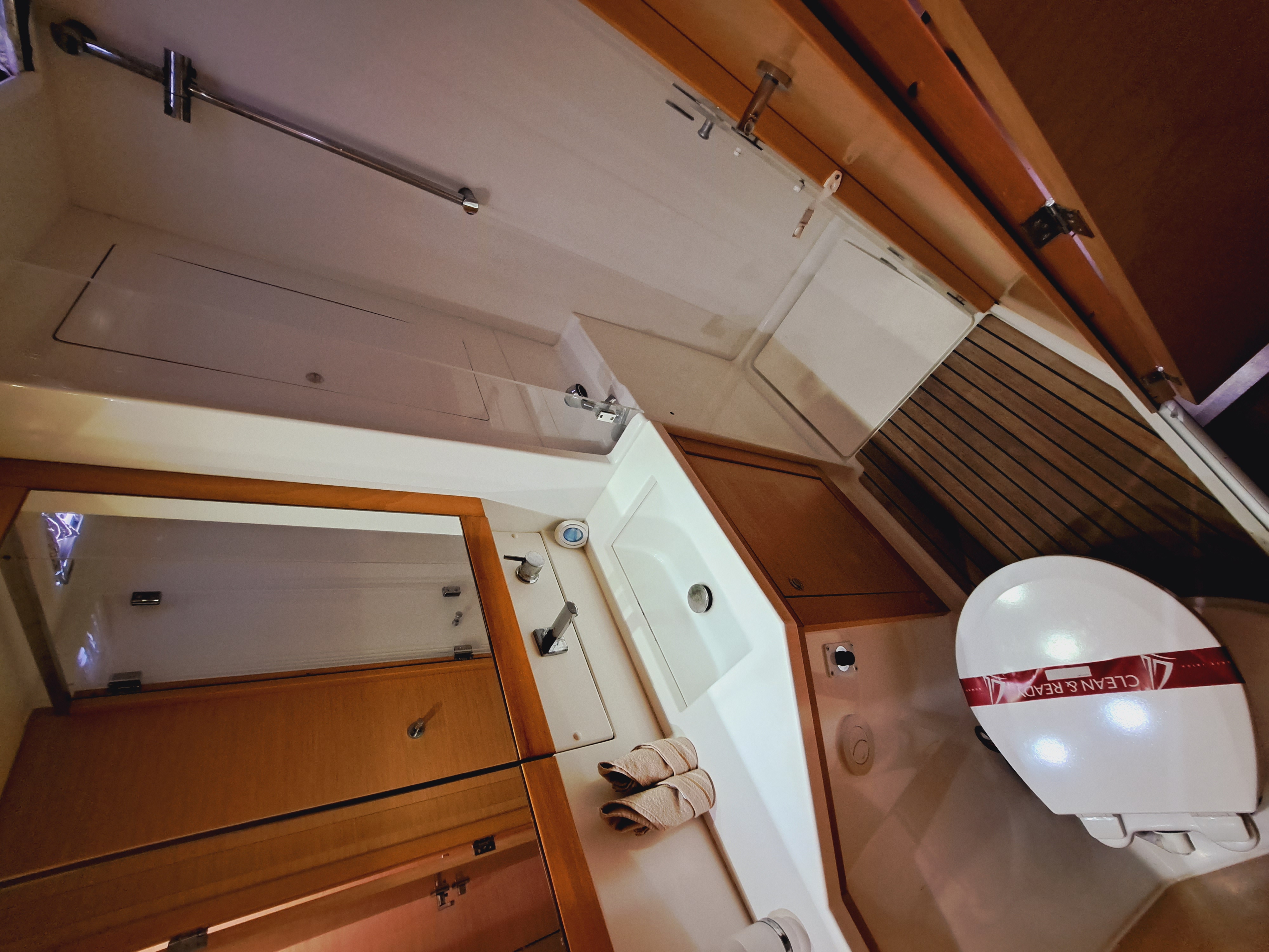 | Outside | Biminitop, Cockpitdusche warm/kalt, Cockpitlautsprecher, Cockpittisch, elektr. Ankerwinsch, elektr. Winsch, Fender, Festmacherleinen |
