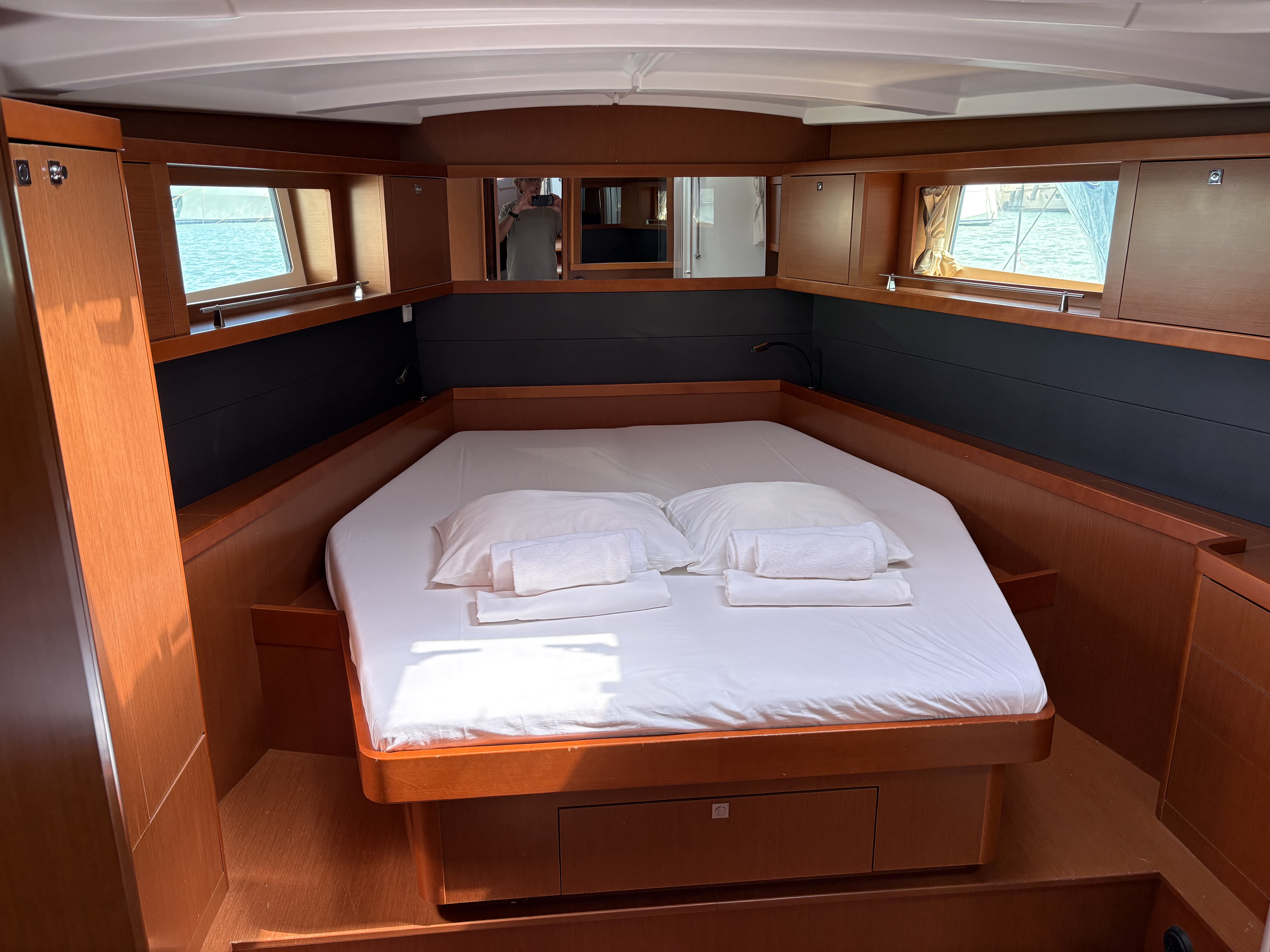 Beste Lage vom Vercharterer (Steg) direkt vor der Altstadt von Ibiza (super Kulisse), perfekte Betreuung samt Flexibilität vom Beginn bis zum Ende des Törns, Boot dem Alter entsprechend in Ordnung (Schwachstellen: Stabilisatoren bei den Fenstern und Instrumente Navigation - aber vertretbar), Bugkabine samt Dusche, WC in Luxusausführung (s. Fotos) und sehr komfortabel.