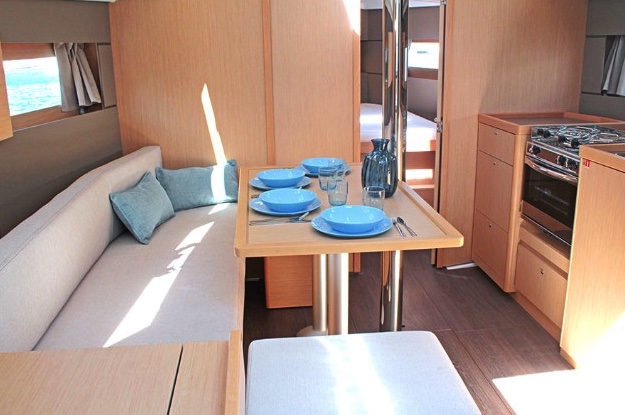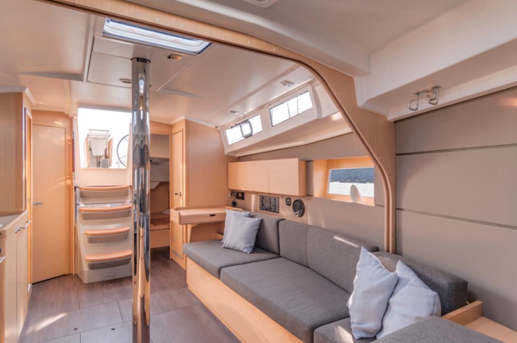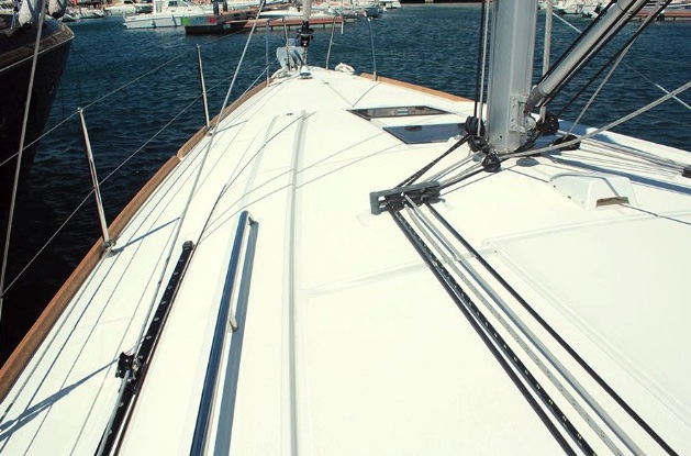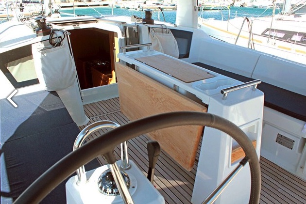 | Outside | Badeleiter, Badeplattform, Biminitop, Cockpitlautsprecher, Cockpitpolster, Cockpittisch, elektr. Ankerwinsch, Sprayhood, Teak im Cockpit |