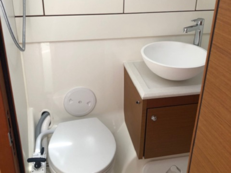 | Outside | 220 V-Landanschluss, Ankerwinsch, Badeleiter, Biminitop, Bootshaken, Cockpitdusche, Cockpittisch, elektr. Ankerwinsch, Fender, Sprayhood, Wantenschneider, Windex, Winschen |
