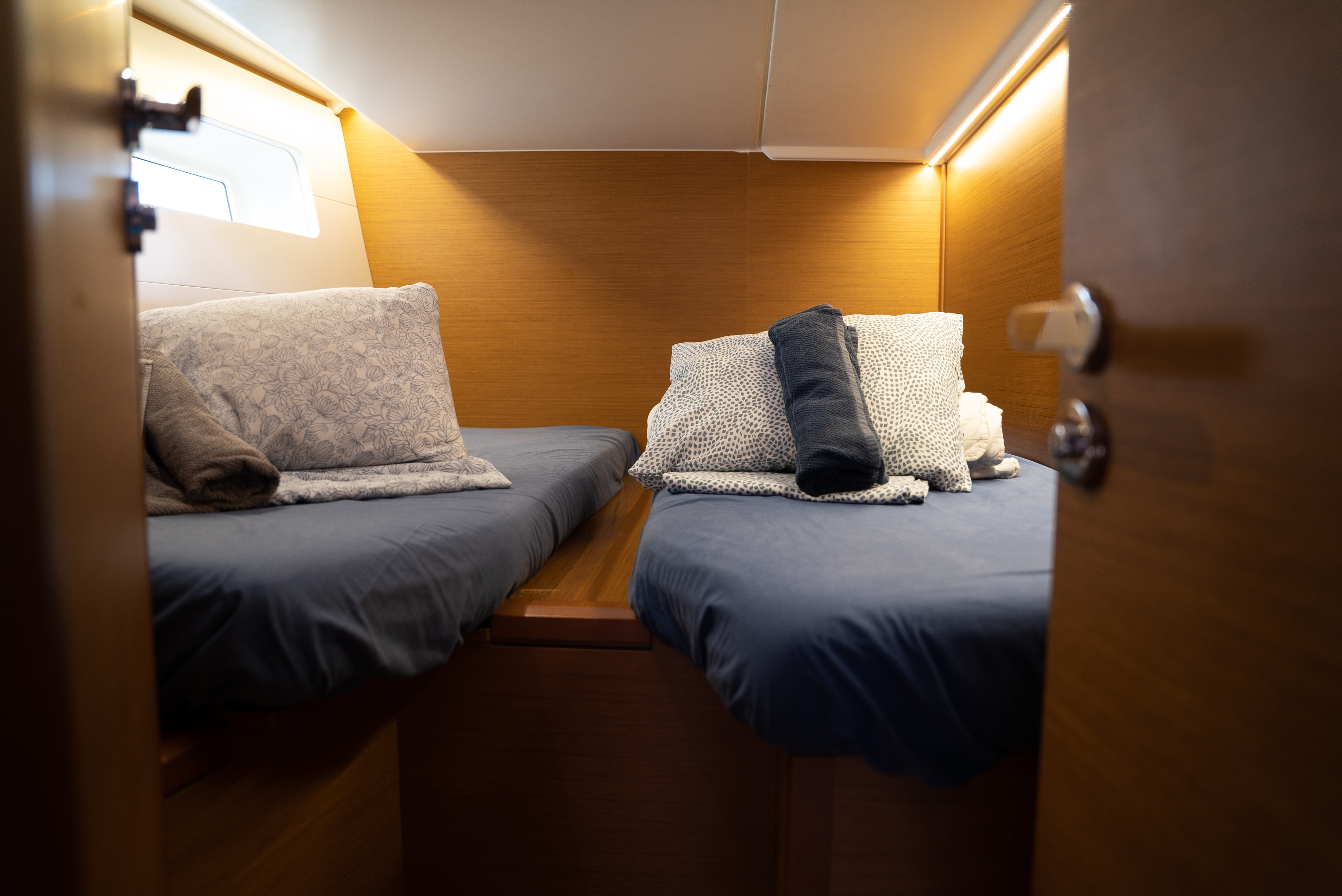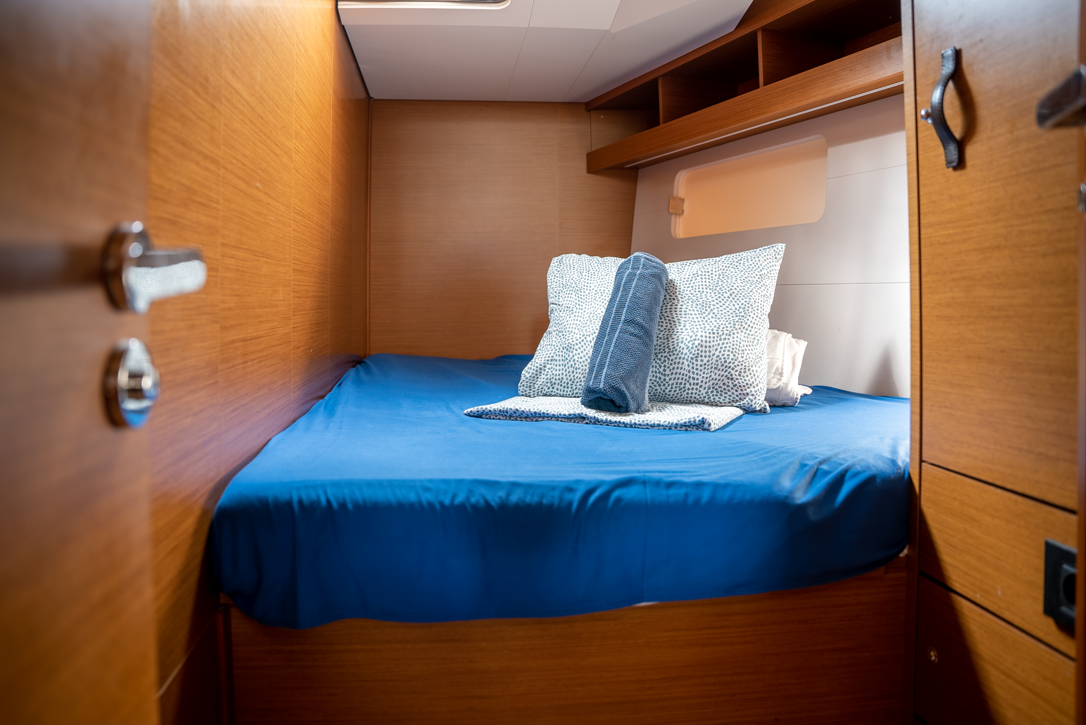 | Safety | AIS Empfänger, Bordapotheke, Bordwerkzeug, Bugstrahlruder, Feststoffschwimmwesten, Feuerlöscher, Handbilgepumpe, Lifebelts, Nebelhorn, Notpinne, Radarreflektor, Sicherheitsausrüstung, Sicherheitsgurt, UKW-Funk, Zweitanker |