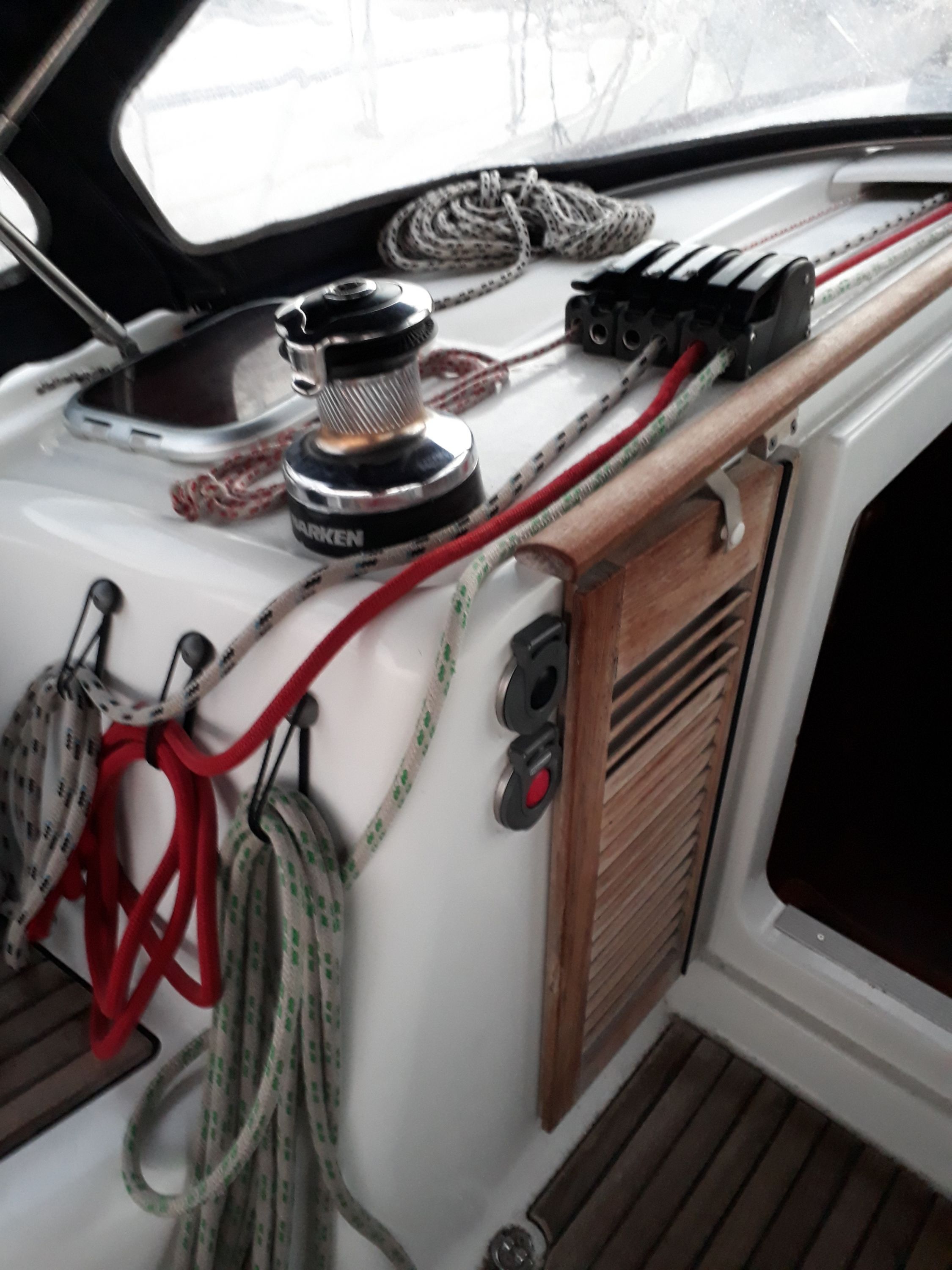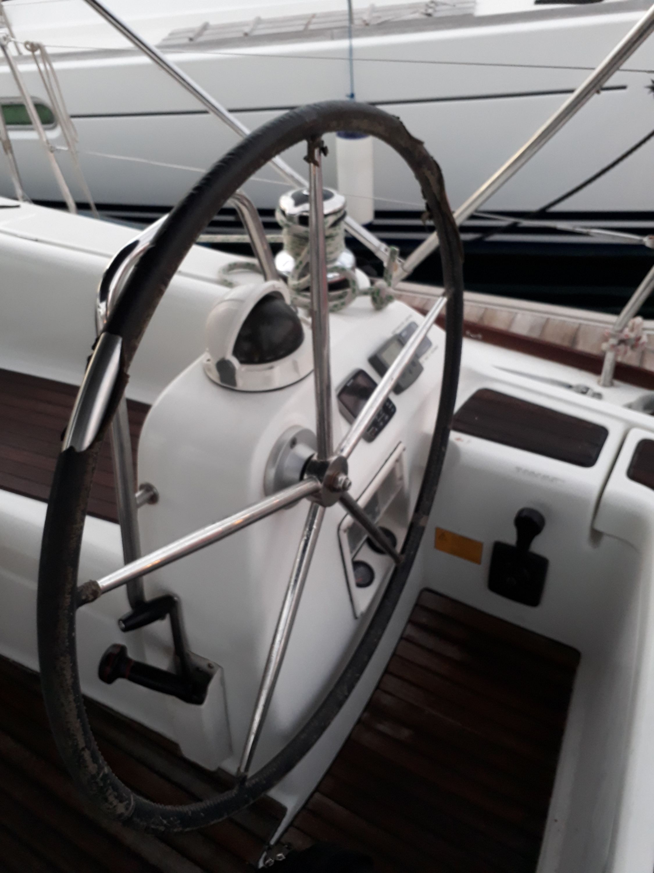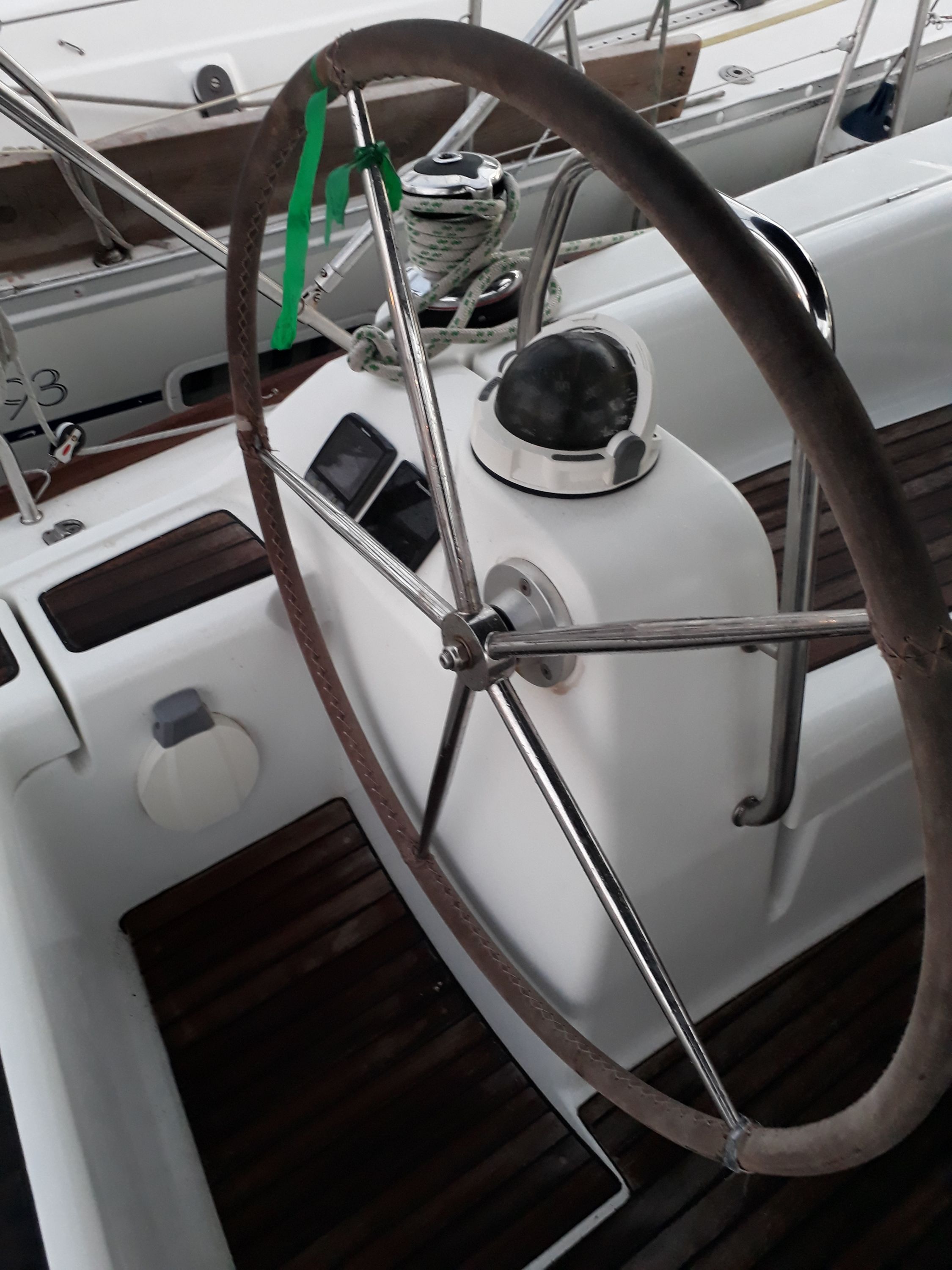 | Navigation | Barometer, Echolot, elektr. Seekarten, Fernglas, GPS mit Kartenplotter, GPS mit Kartenplotter im Cockpit, Hafenhandbücher, Handpeilkompass, Kompass, Navigationsbesteck, Seekarten, Sumlog, Windmesser |