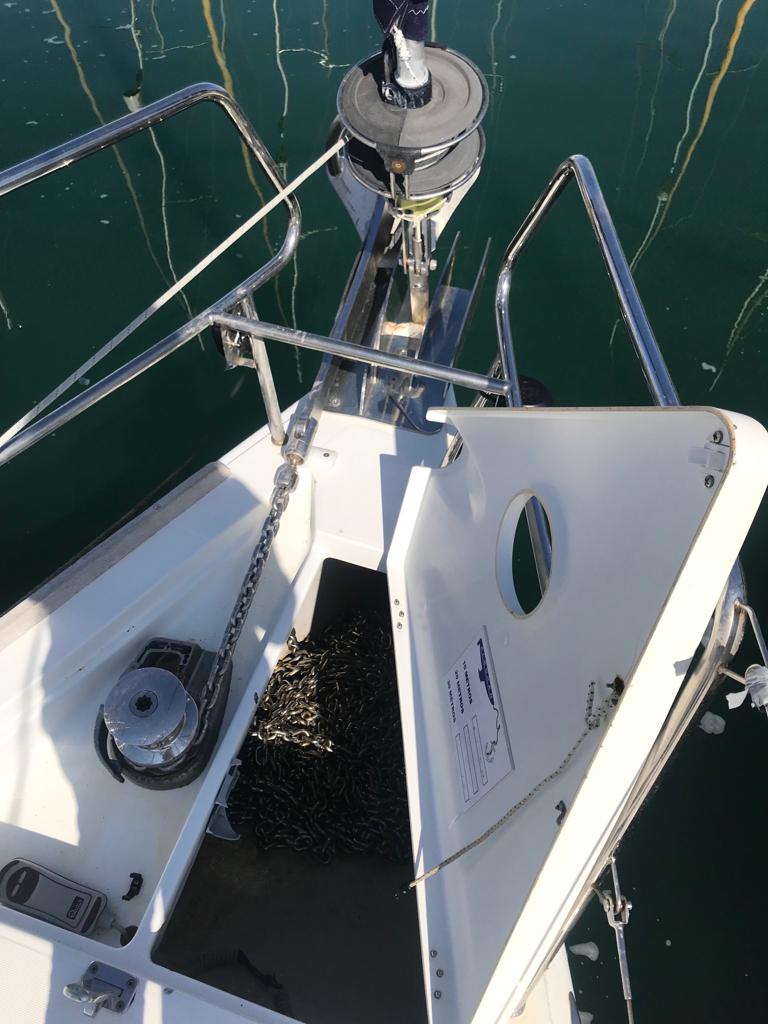 | Outside | 220 V-Landanschluss, Badeleiter, Biminitop, Cockpitdusche, Cockpitlautsprecher, Cockpittisch, elektr. Ankerwinsch, Gangway, Segel-Flickwerkzeug, Solaranlage, Sprayhood |