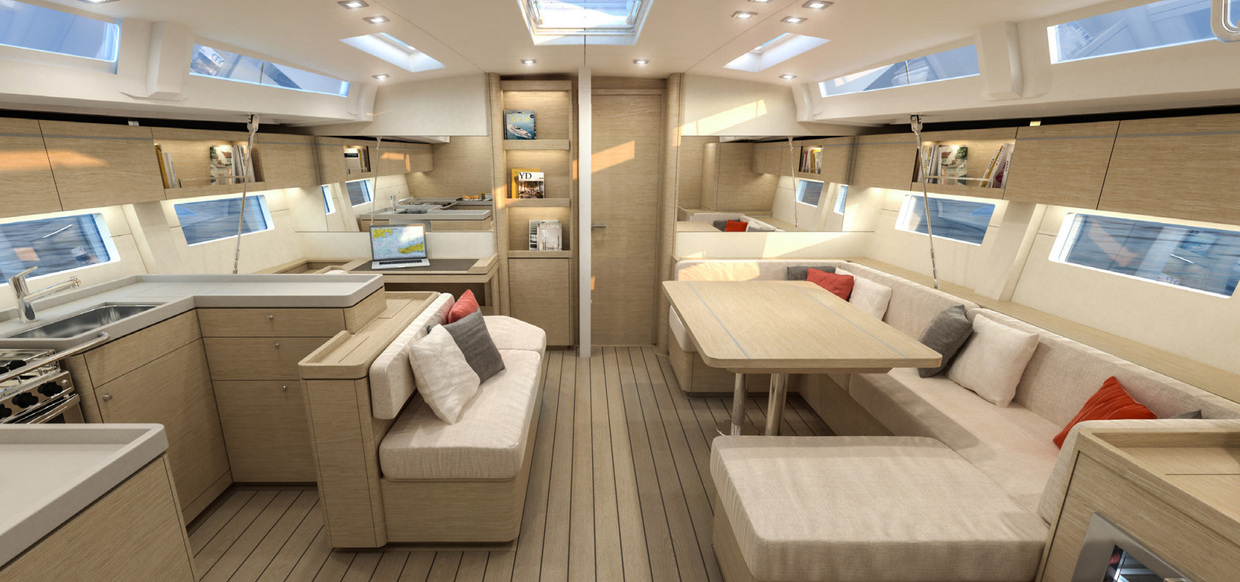 | Outside | 220 V-Landanschluss, Anker mit Kette, Ankerwinsch, Badeleiter, Biminitop, Cockpitdusche, Cockpitlautsprecher, Cockpitleuchte, Cockpittisch, Fender, Fernsteuerung für elektr. Ankerwinsch, Gangway, Sprayhood, Winschen |