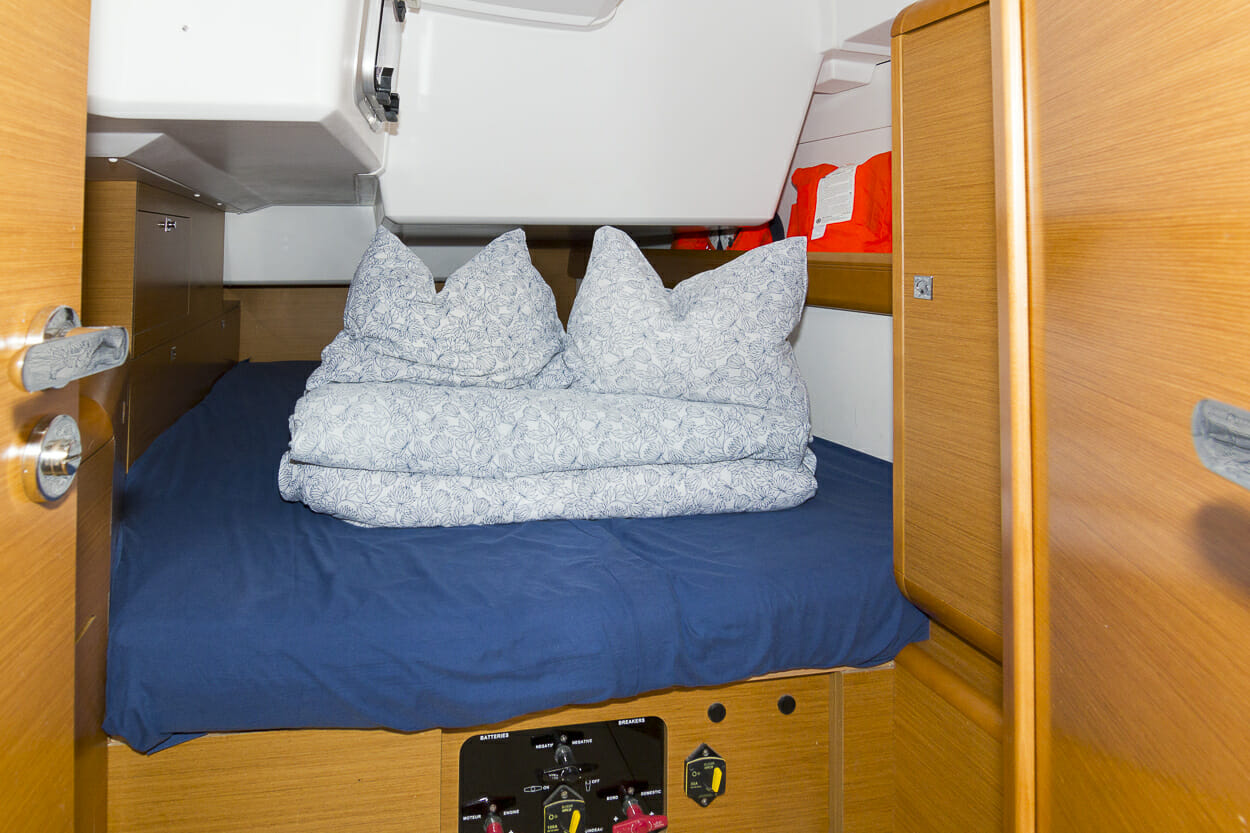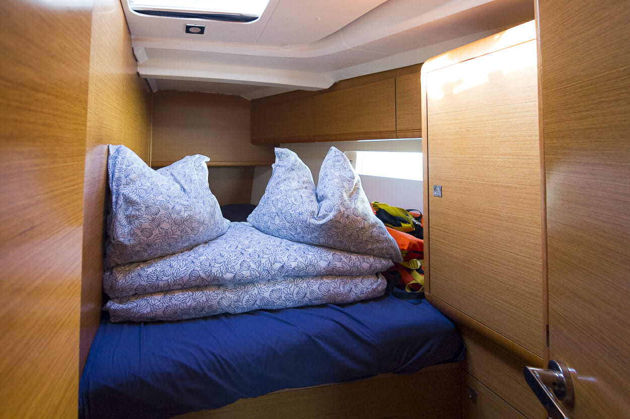 | Safety | Automatikwesten, Bordapotheke, Bordwerkzeug, Bugstrahlruder, Feststoffschwimmwesten, Feuerlöscher, Handbilgepumpe, Notpinne, Radarreflektor, Seenot-Funkboje, Sicherheitsgurt, UKW-Funk, Zweitanker |