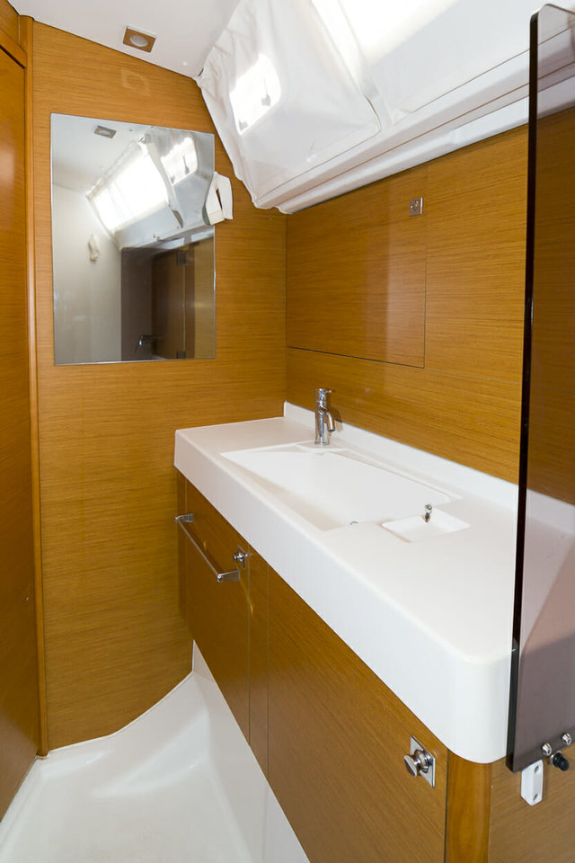| Outside | 220 V-Landanschluss, Ankerwinsch, Biminitop, Bootshaken, Cockpitdusche, Solaranlage, Sprayhood, Wantenschneider, Windex, Winschen |