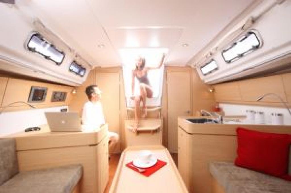 | Outside | Biminitop, Cockpitdusche, Cockpitpolster, elektr. Ankerwinsch, Schnorchelausrüstung, Sprayhood, Windex |