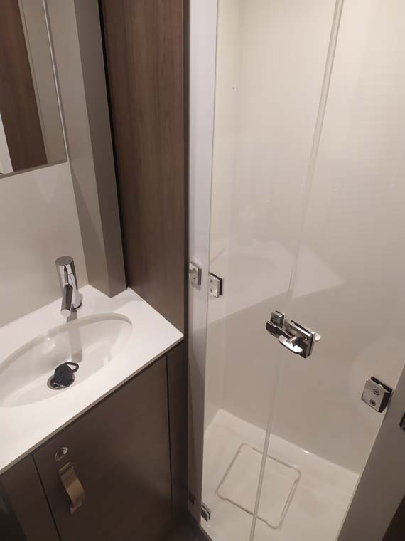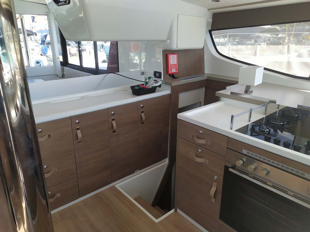 | Inside | 220V Steckdosen, Eiswürfelmaschine, Gasherd, Gefrierschrank, Generator, Heizung, Inverter 12V/220V, Klimaanlage (ohne Landstrombedarf), Kühlschrank, Ladegerät, Pantryausstattung, Radio, Salontisch absenkbar, TV, Warmwasser, Wasserkocher, Watermaker |