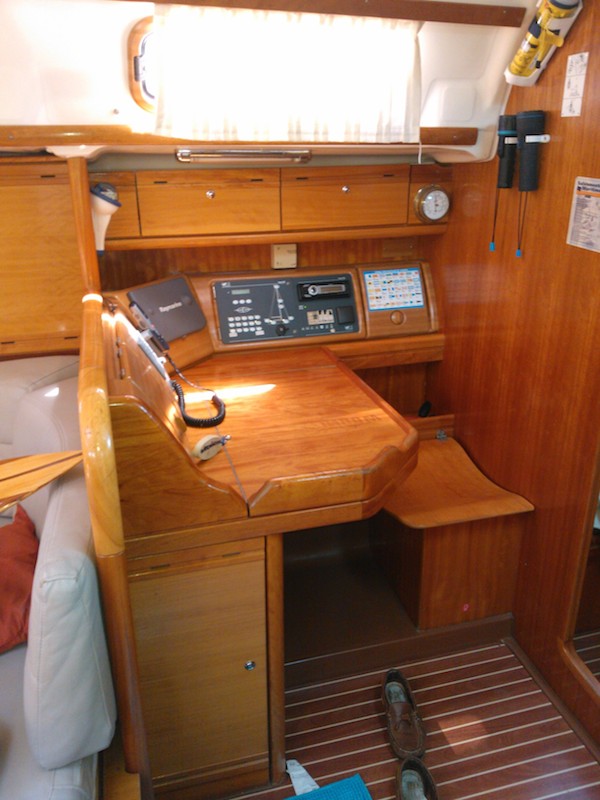 | Navigation | Barometer, Echolot, elektr. Seekarten, Fernglas, GPS mit Farbkartenplotter, Hafenhandbücher, Handpeilkompass, Kartenplotter im Cockpit, Kompass, Radar, Seekarten, Sumlog, Windmesser |
