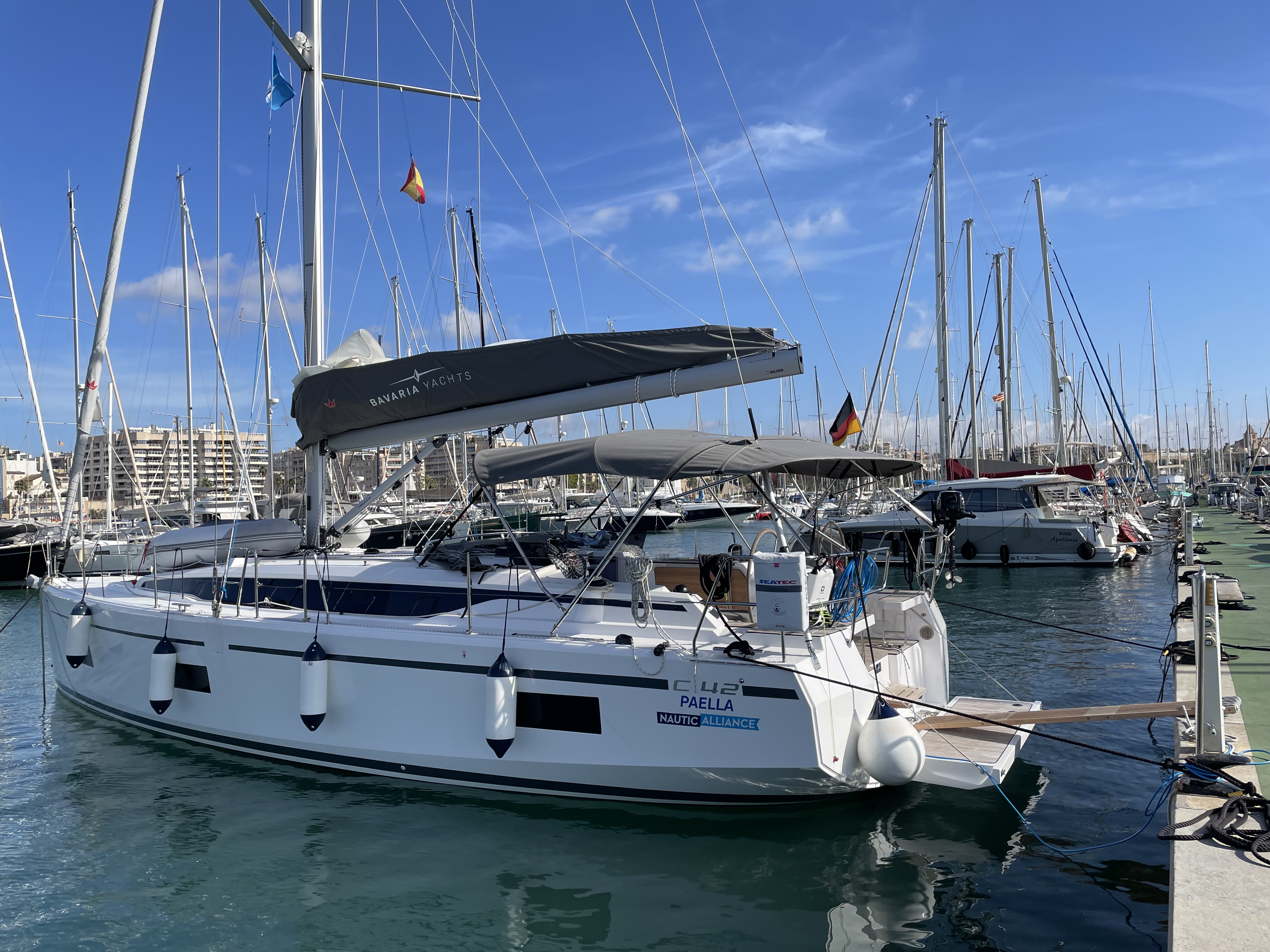 | Outside | 220 V-Landanschluss, Anker mit Kette, Biminitop, Bootshaken, Cockpitdusche, Cockpitlautsprecher, Cockpitpolster, Cockpittisch, elektr. Ankerwinsch, Faltpropeller, Fender, Festmacherleinen, Gangway, Kugelfender, Sprayhood, Teak im Cockpit, Wantenschneider, Wasserschlauch, Windex |