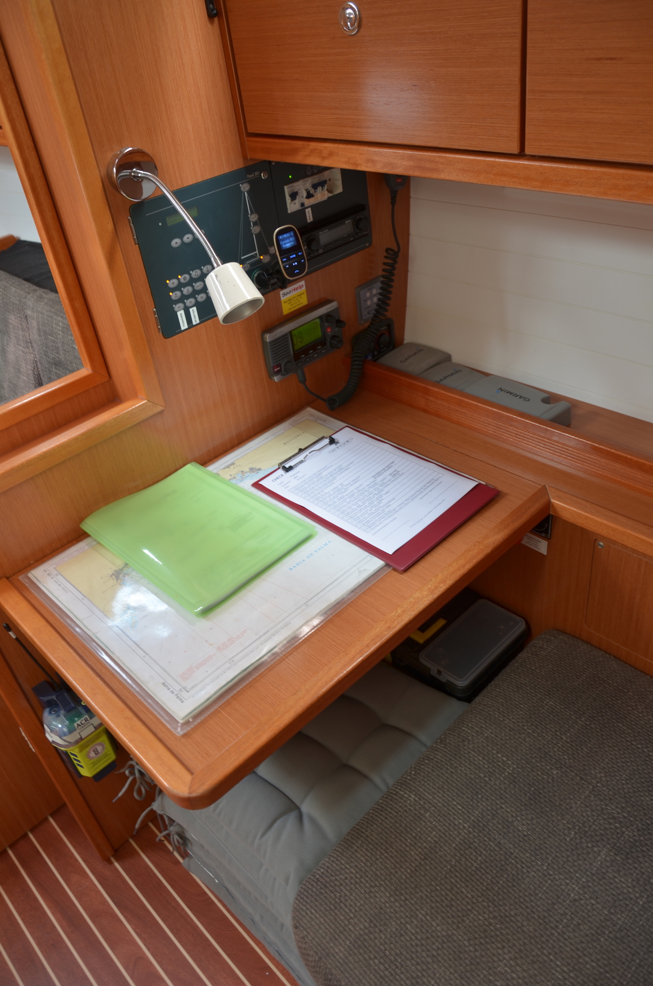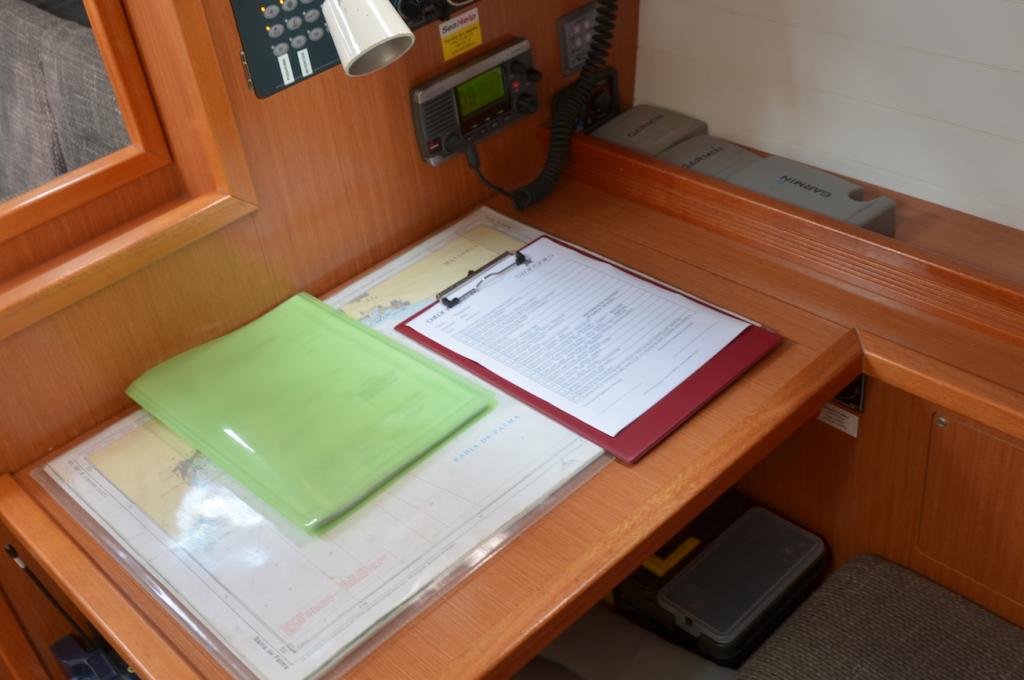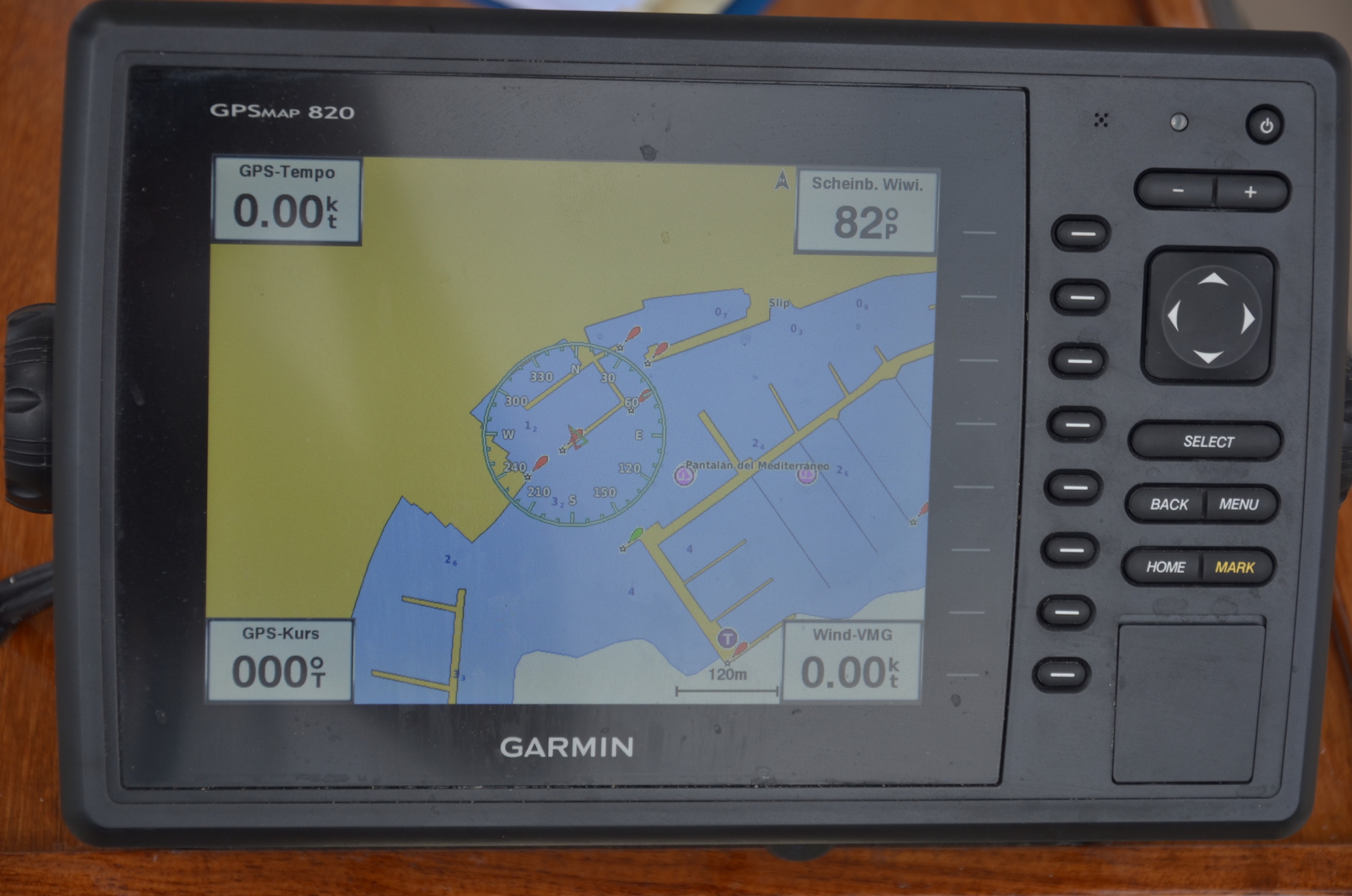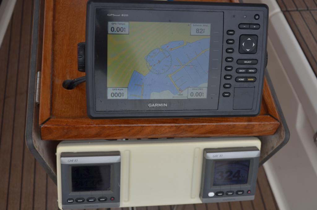| Navigation | Barometer, Echolot, Fernglas, GPS mit Kartenplotter im Cockpit, Hafenhandbücher, Handpeilkompass, Kompass, Seekarten, Sumlog, Windmesser |
