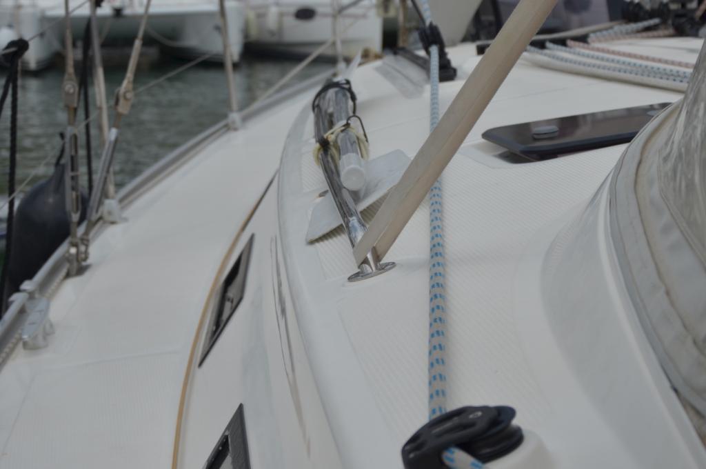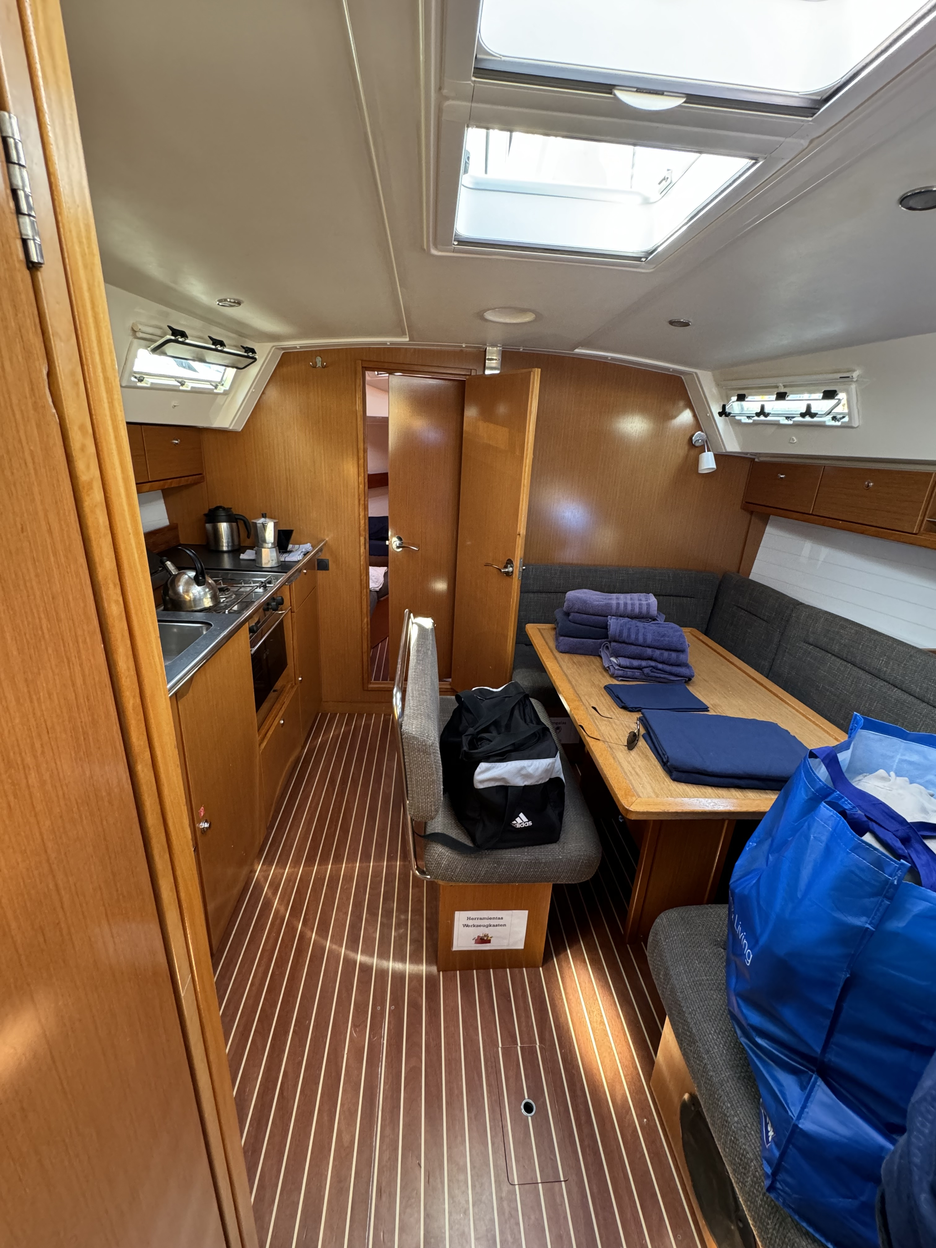 Zwei Punkte führen bei dieser Charter zu deutlischer Abwertung: Der Autopilot war defekt (wurde bei Übergabe klar kommuniziert) und die Rollreffanlage (Betätigung über Endlosleine am Mast) hat sich "verabschiedet" (ist aus dem Mast rausgerutscht), so dass wir das Groß komplett bergen mußten und anschließend nur noch mit Genua seglen konnten. Ersteres war ärgerlich, letzteres hätte bei mehr Wind und bei teilweise eingerolltem Groß zu erheblichen Problem führen können. Der Stützpunktleiter redet viel, ist aber nicht wirklich hilfreich und "natürlich" für nichts verantwortlich. Ohne die beiden Punkte wäre das Urteil deutlich positiver. Die Yacht war ansonsten für das Alter in gutem Zustand und die Elektrik hat einwandfrei funktioniert. Die Segel waren in gutem Zustand, aber die Bavaria ist untertakelt und die Schienen für die Schotholepunkte sind sehr kurz und nur bedingt funktional. Das nächste Mal dann doch wieder eine Sun Odyssee.