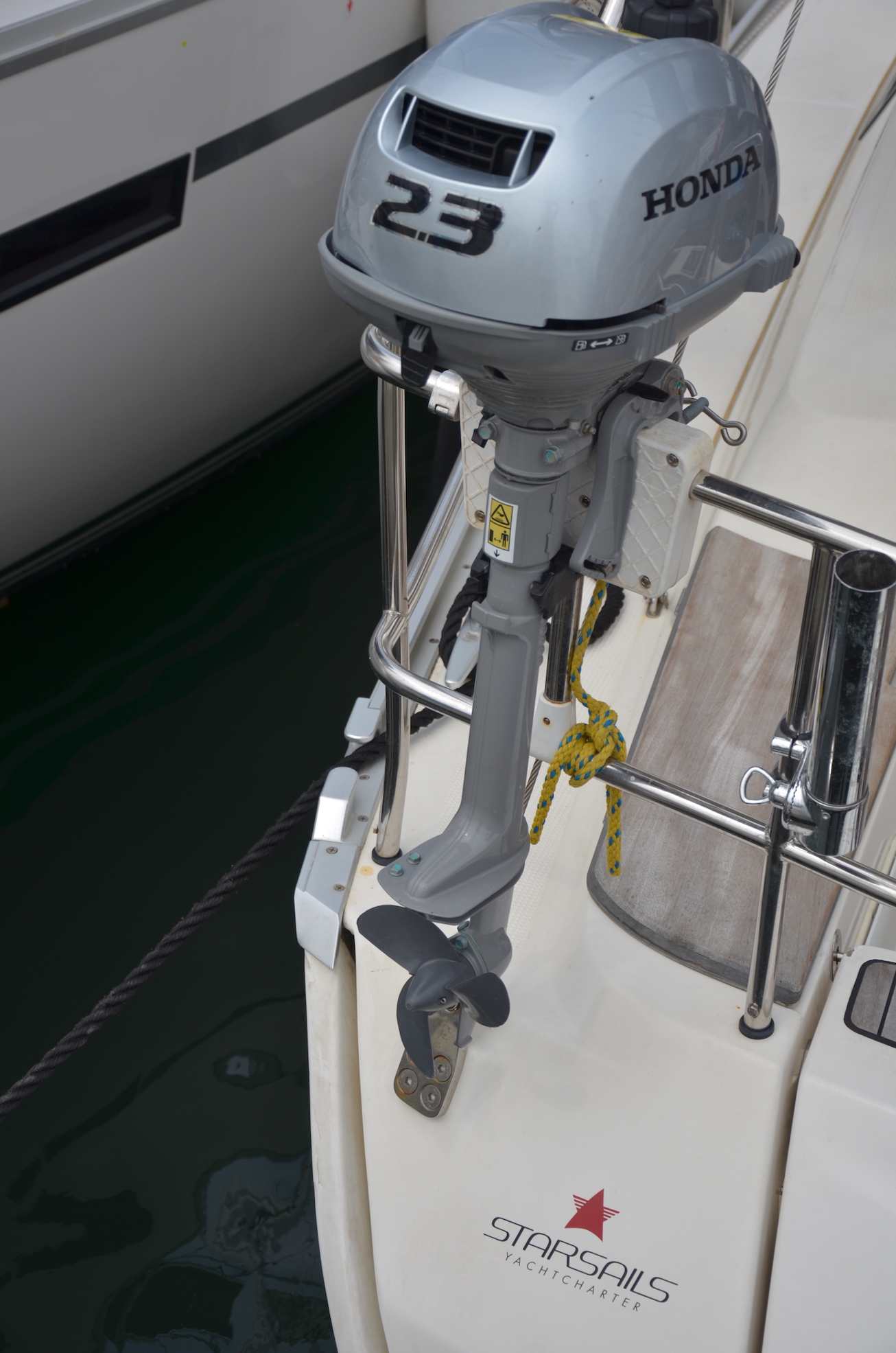 | Outside | Badeleiter, Badeplattform, Biminitop, Cockpitdusche, Cockpitlautsprecher, Cockpittisch, elektr. Ankerwinsch, Faltpropeller, Gangway, Sonnensegel, Sprayhood, Windex |