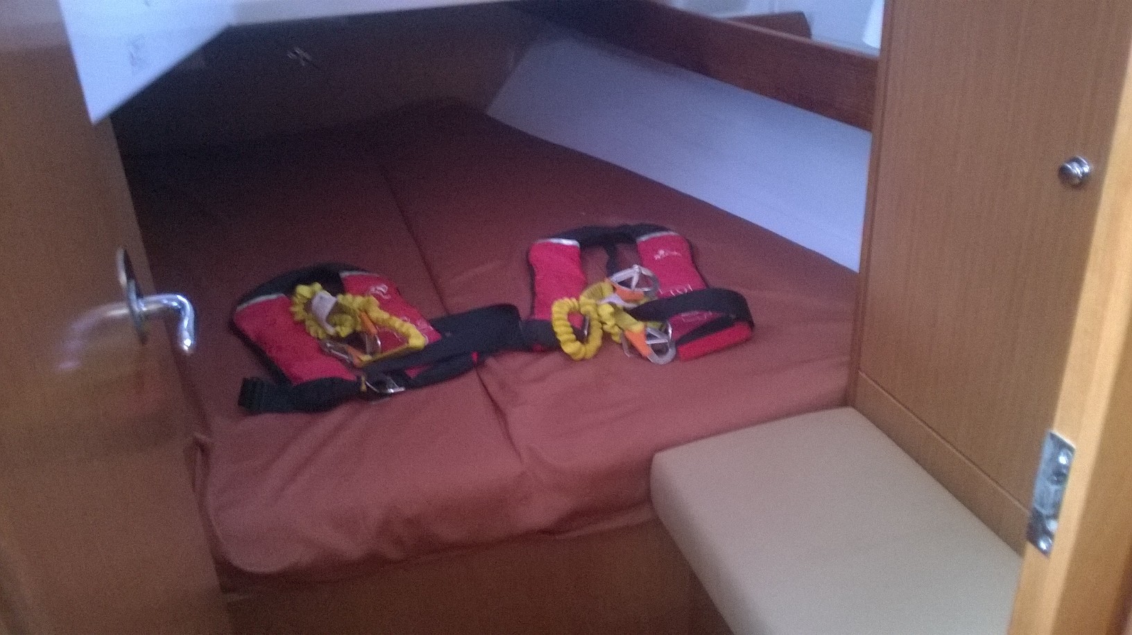 | Safety | Automatikwesten, Autopilot, Bootsmannstuhl, Bordapotheke, Bordwerkzeug, Bugstrahlruder, elektr. Bilgepumpe, Epirb, GMDSS, Leuchtboje, Navigationslichter, Notpinne, Notsignale, Rettungsinsel, Rettungskragen, Rettungswesten, Sicherheitsgurt, Taschenlampe, UKW-Funk |