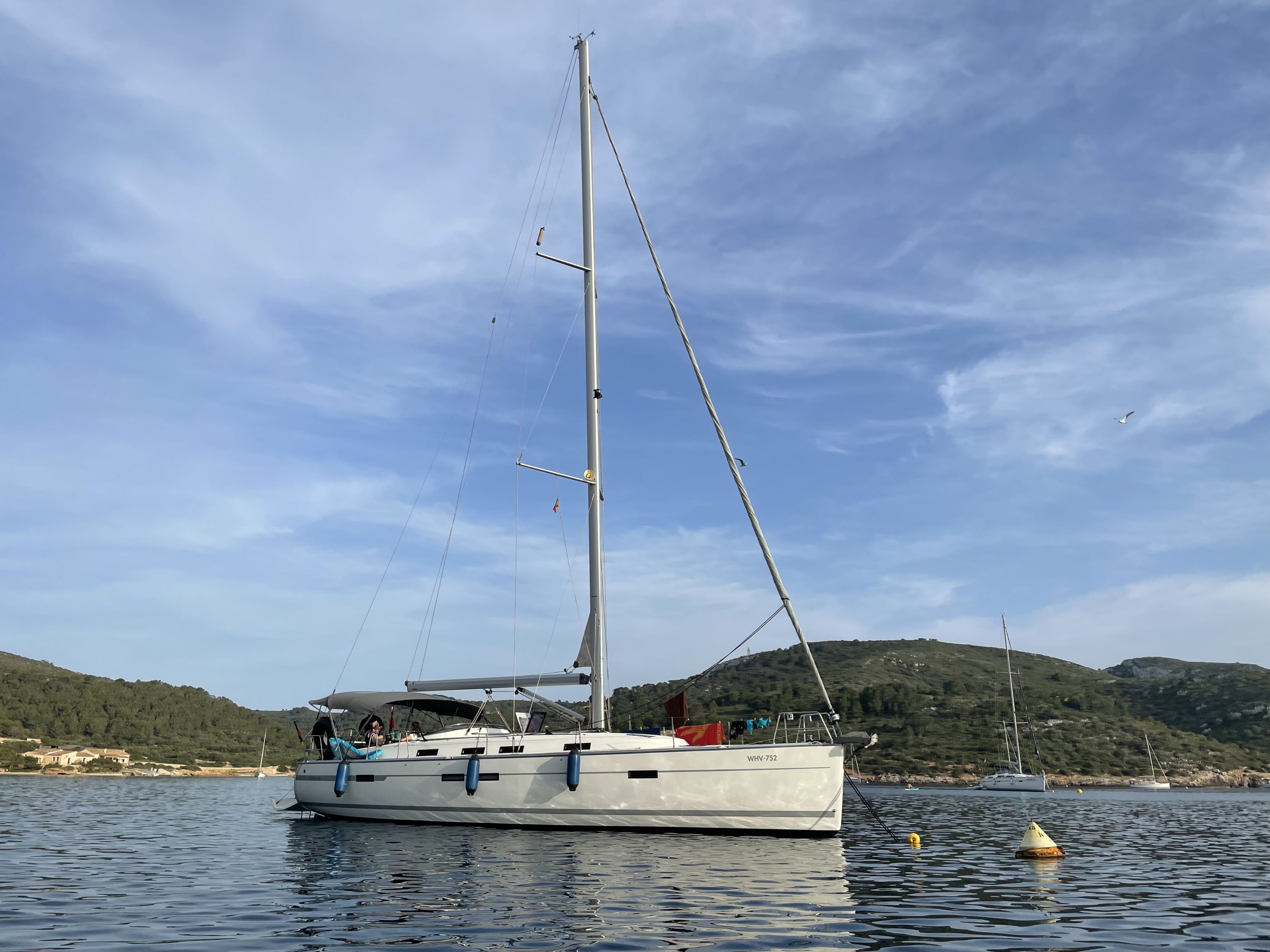 | Navigation | Barometer, Echolot, Fernglas, GPS mit Kartenplotter im Cockpit, Hafenhandbücher, Handpeilkompass, Kompass, Seekarten, Sumlog, Windmesser |