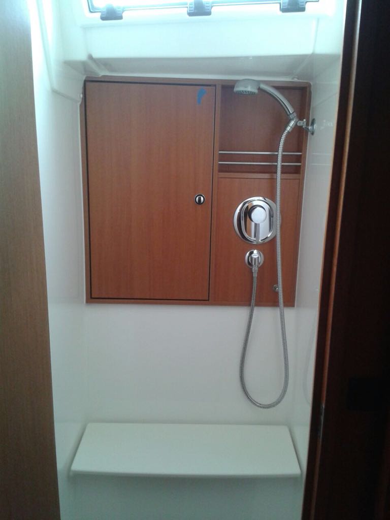 | Outside | Badeleiter, Biminitop, Cockpitdusche, Cockpittisch, elektr. Ankerwinsch, Faltpropeller, Gangway, Sonnensegel, Sprayhood, Windex |