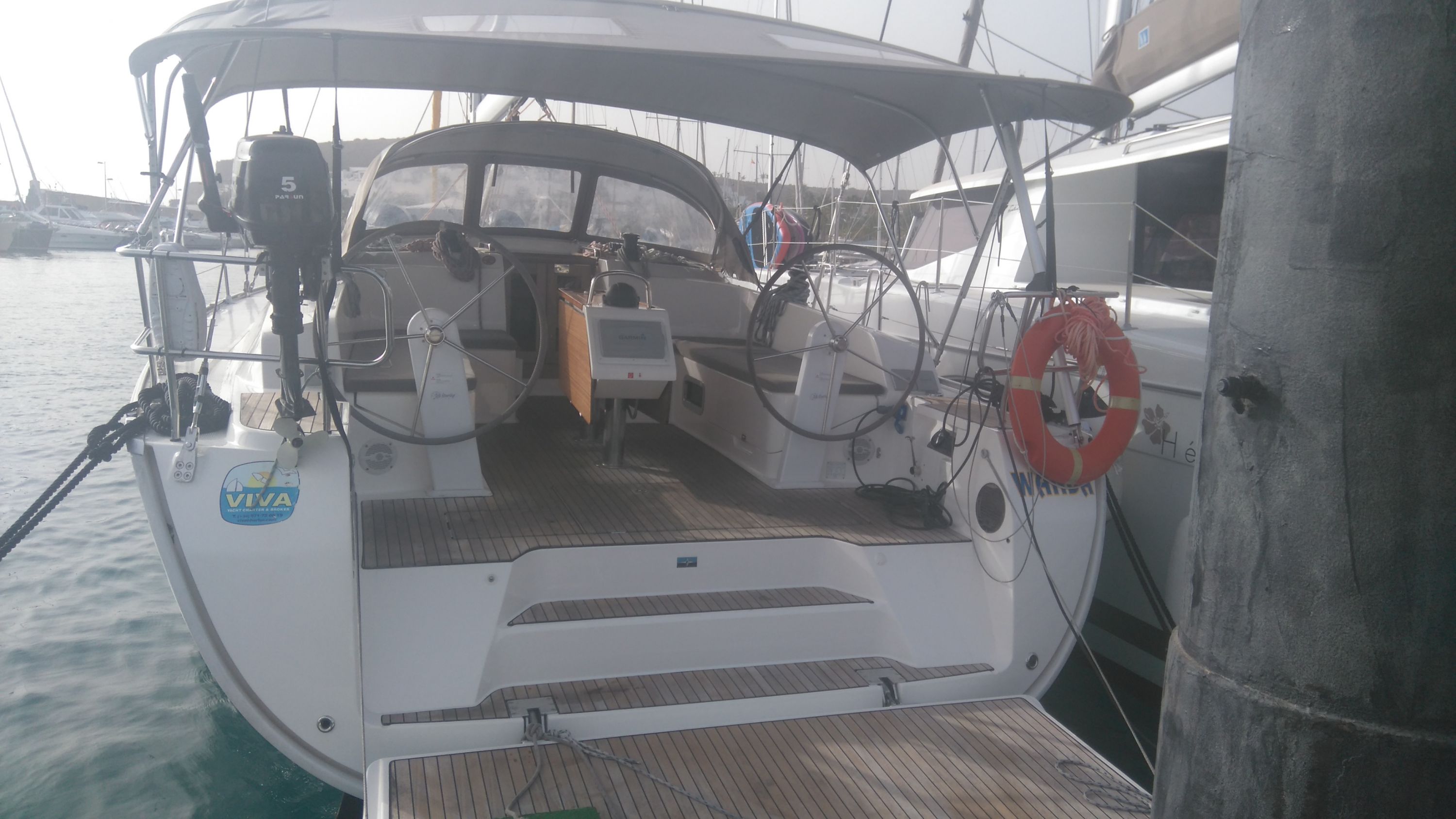 | Outside | 220 V-Landanschluss, Außendusche, Biminitop, Bootshaken, Cockpitpolster, Cockpittisch, elektr. Ankerwinsch, Fender, Festmacherleinen, Sprayhood, Wasserschlauch, Winschen |