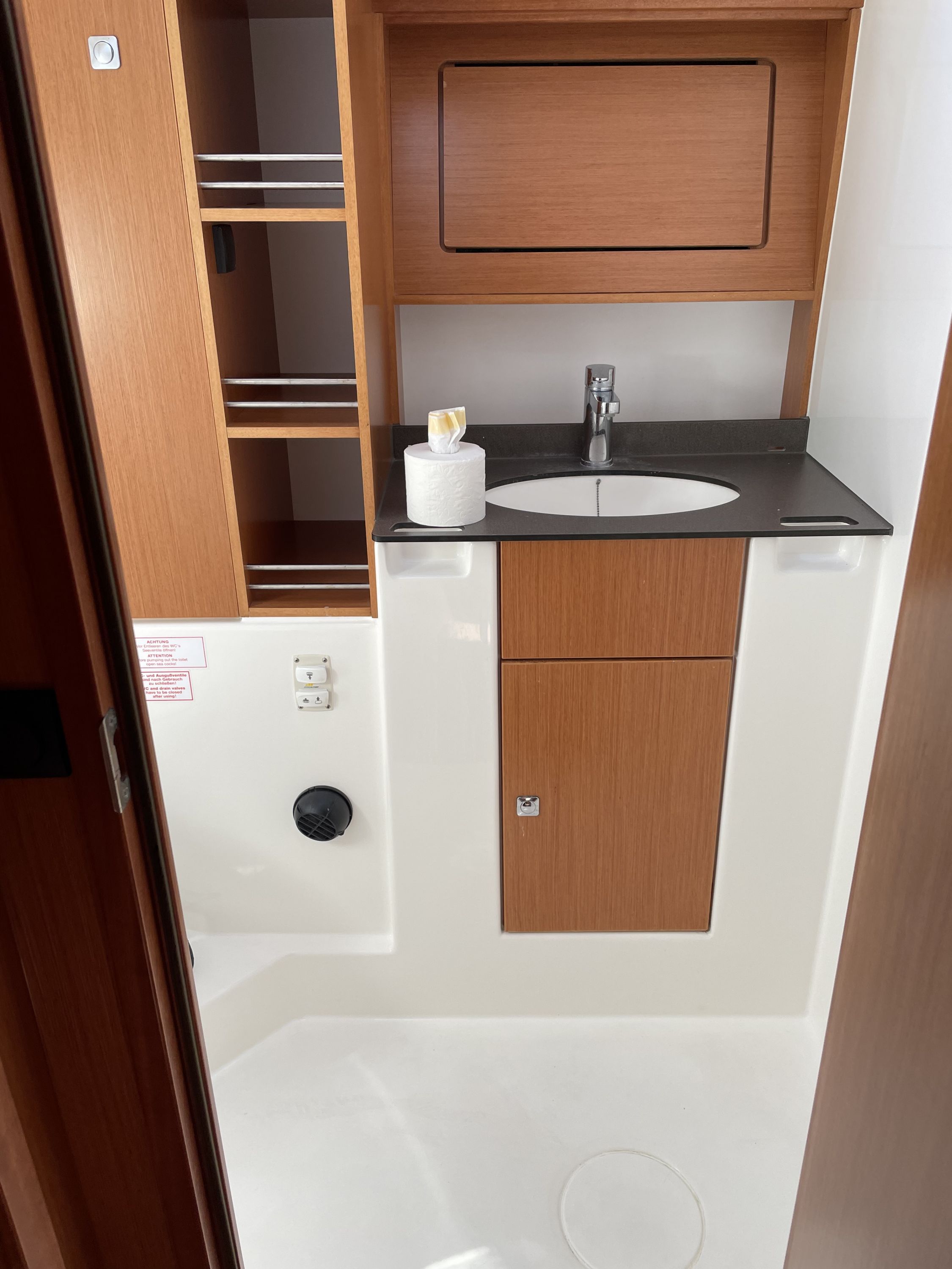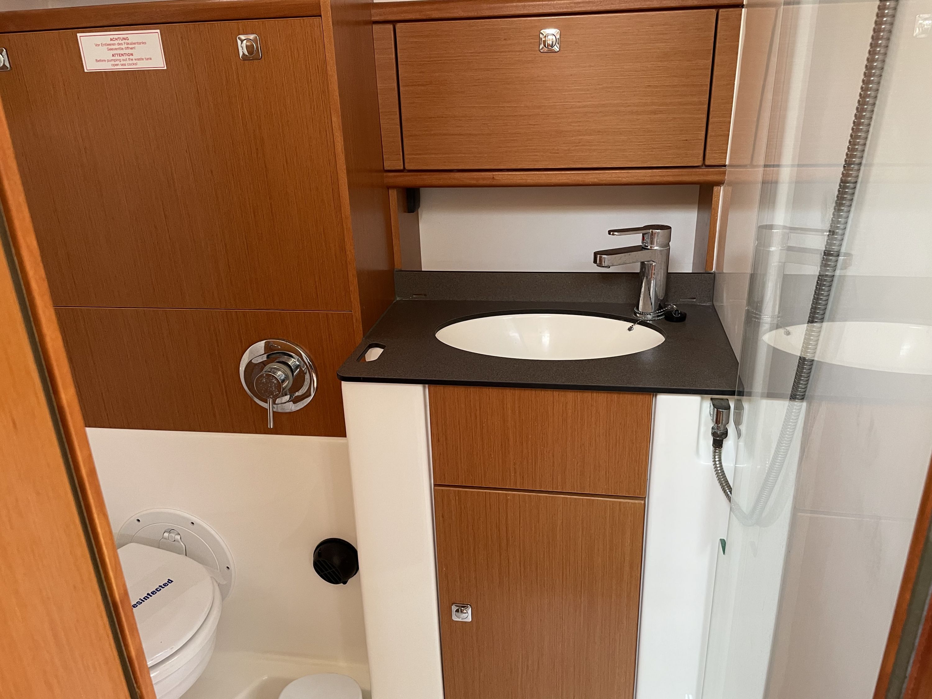 | Outside | Badeleiter, Biminitop, Cockpitdusche, Cockpittisch, elektr. Ankerwinsch, Gangway, Sonnensegel, Sprayhood, Windex |