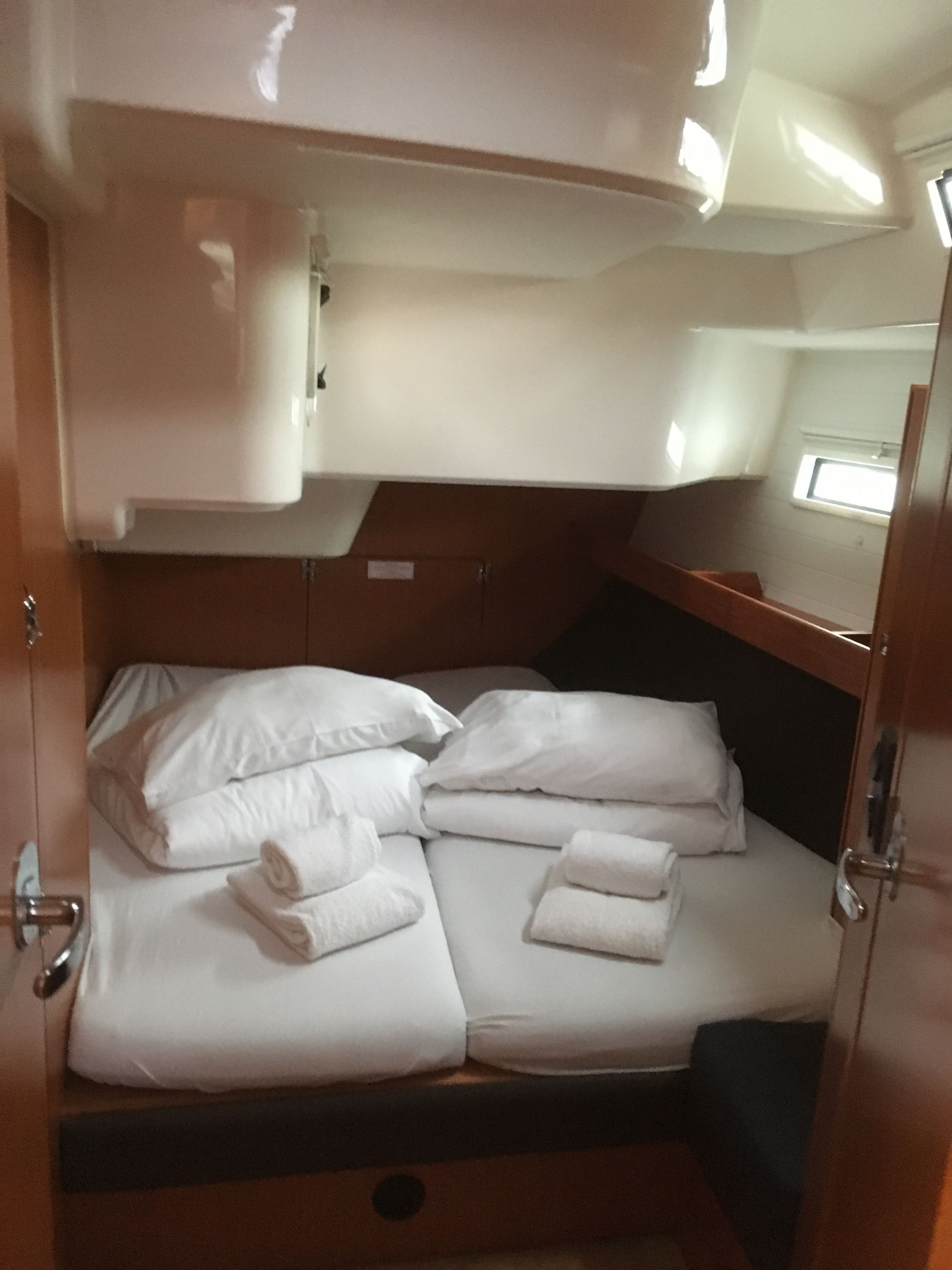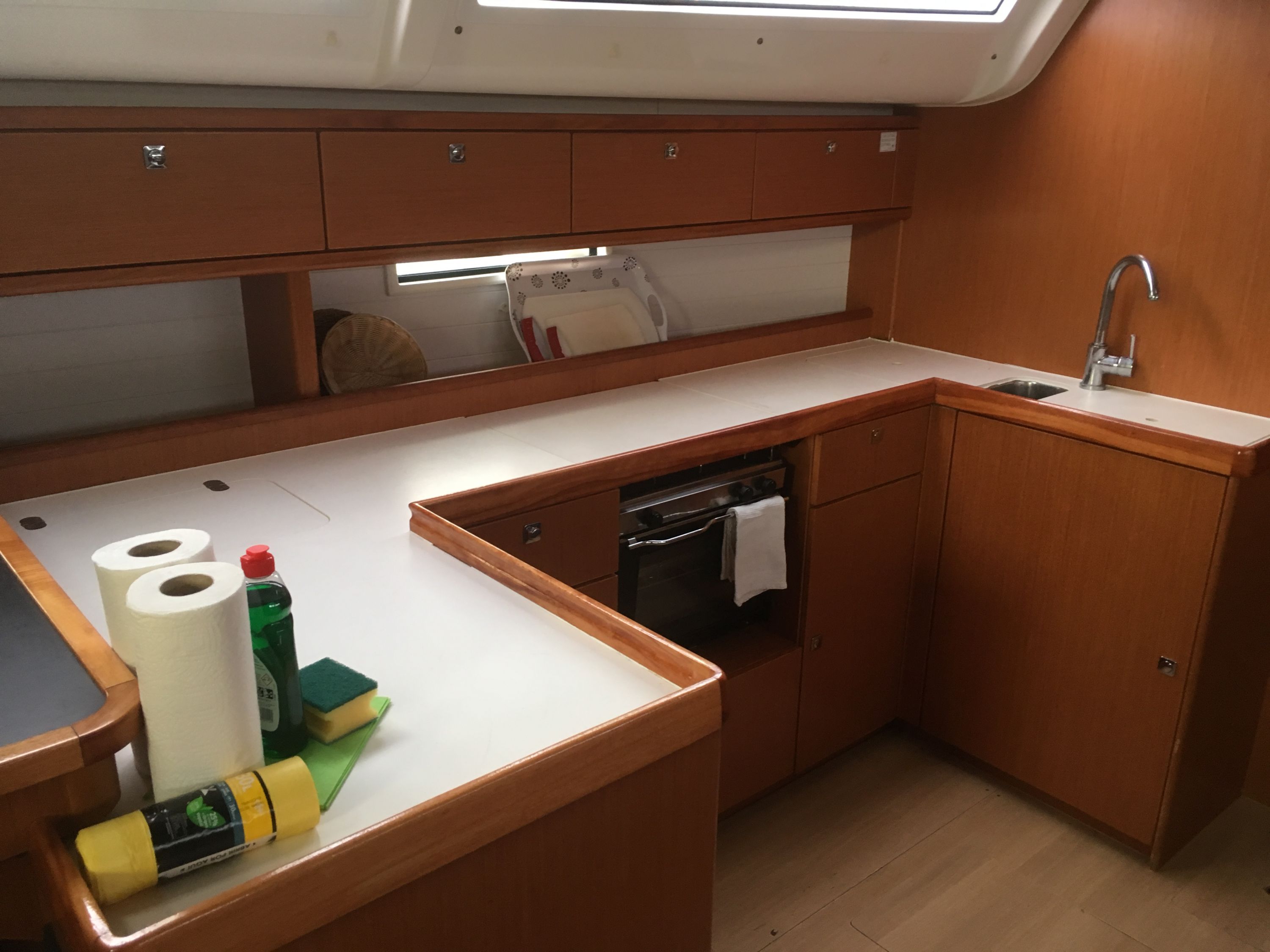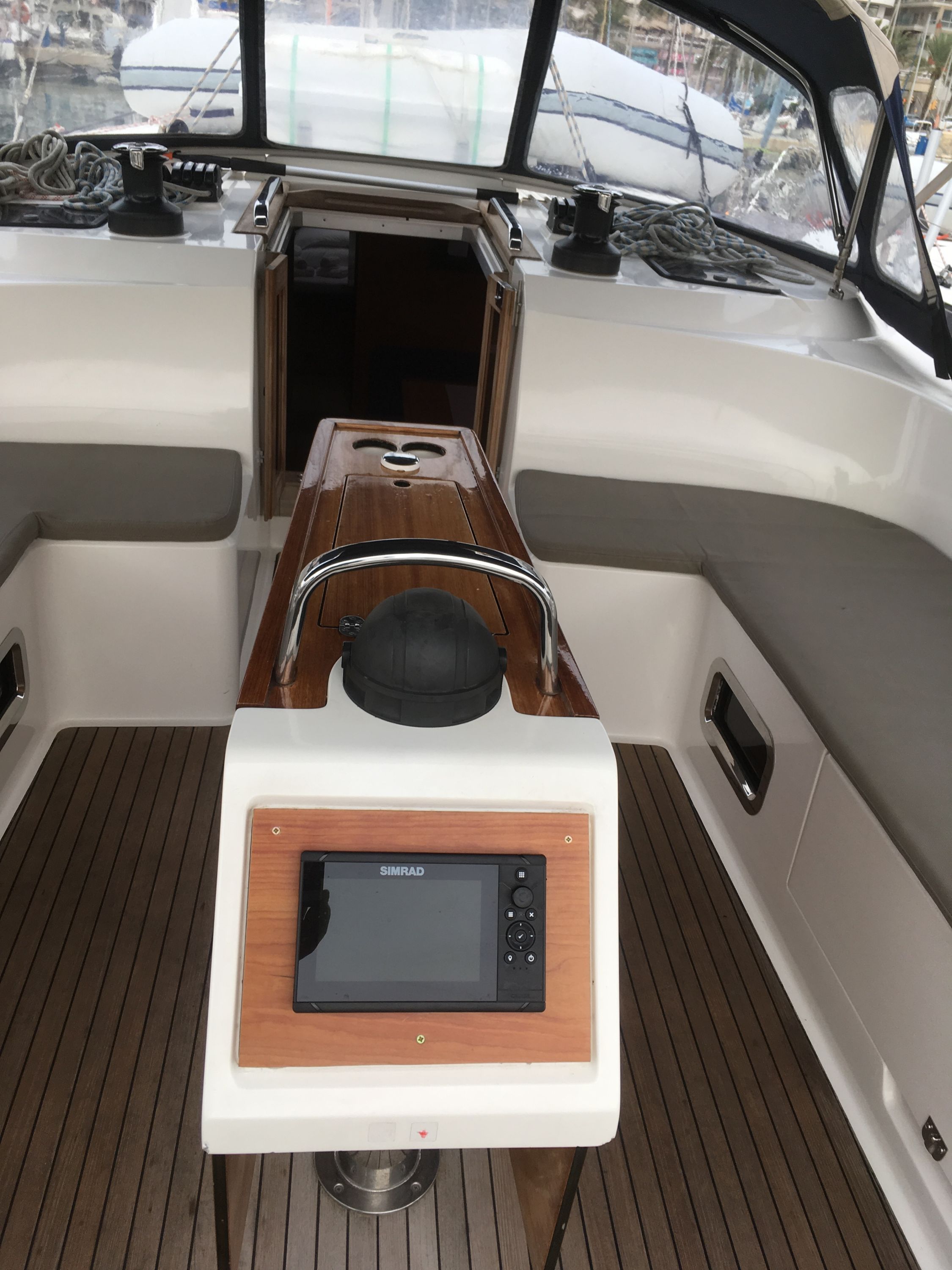 | Outside | 220 V-Landanschluss, Anker mit Kette, Badeleiter, Biminitop, Cockpitdusche, Cockpitlautsprecher, Cockpitpolster, Cockpittisch, elektr. Ankerwinsch, Sprayhood, Teak im Cockpit, Winschen |