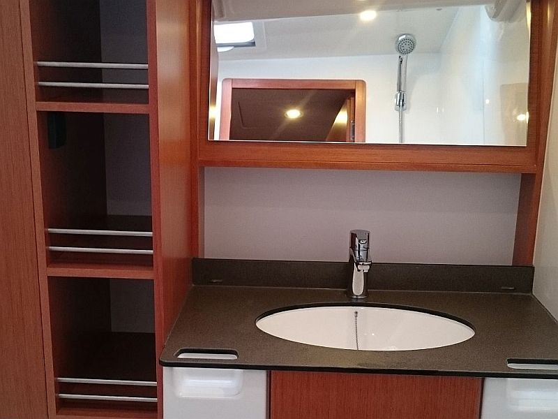 Outside 220 V-Landanschluss, Badeleiter, Biminitop, Cockpitdusche, Cockpitlautsprecher, Cockpitpolster, Cockpittisch, elektr. Ankerwinsch, Gangway, Schnorchelausrüstung, Selbstholende Winschen, Sprayhood, Treibanker, Windex