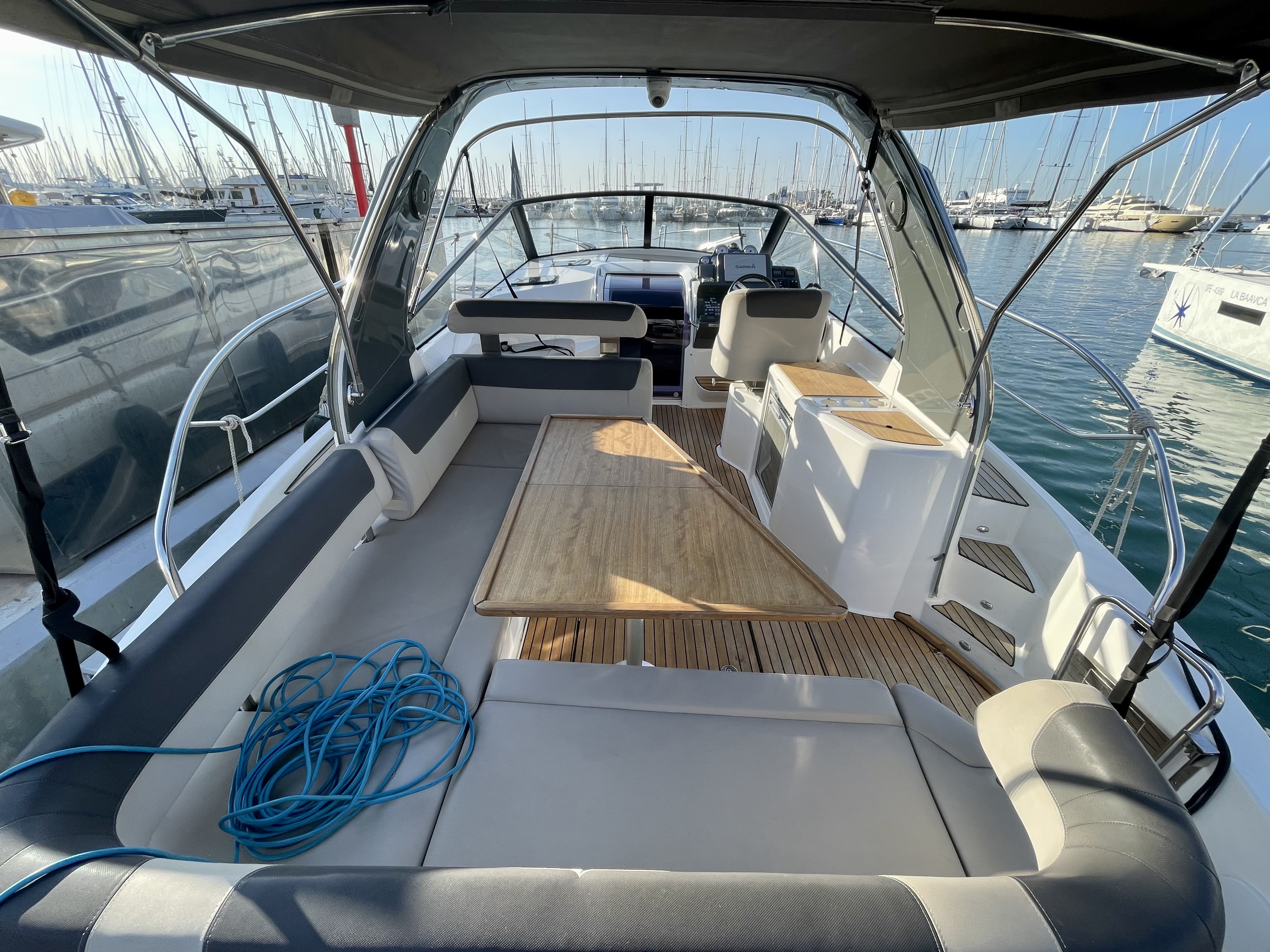 | Outside | 220 V-Landanschluss, Badeplattform, Biminitop, Cockpitdusche, Cockpitkühlschrank, Cockpittisch, elektr. Ankerwinsch |