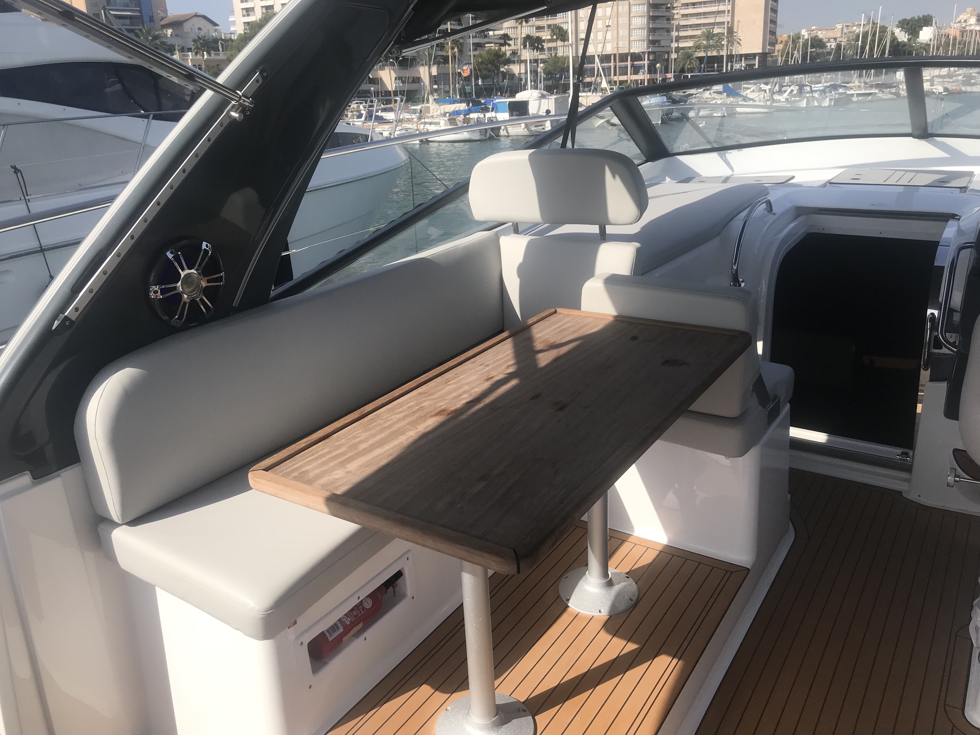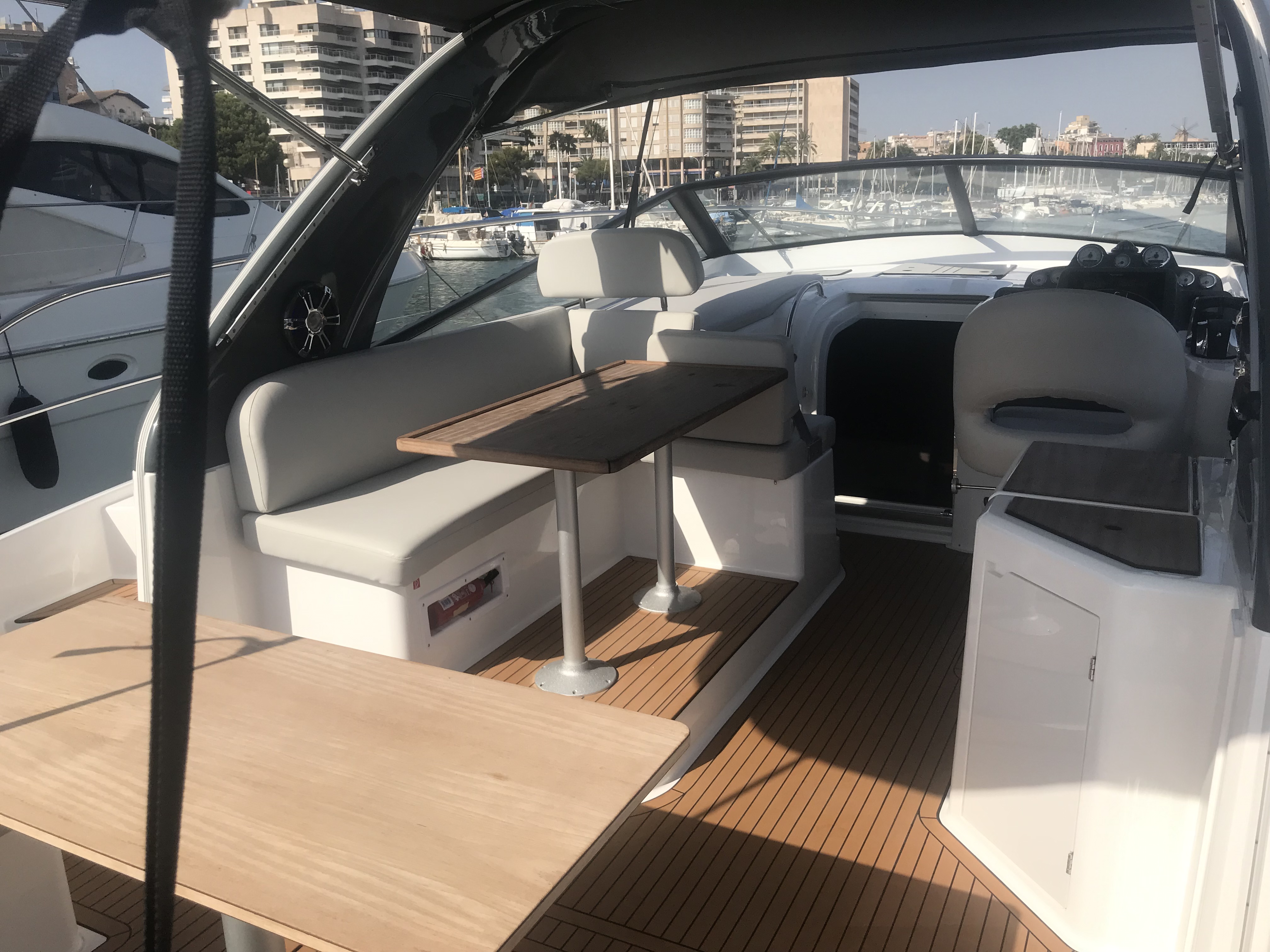 | Outside | 220 V-Landanschluss, Anker mit Kette, Badeplattform, Biminitop, Cockpitdusche, Cockpitlautsprecher, Teak im Cockpit |