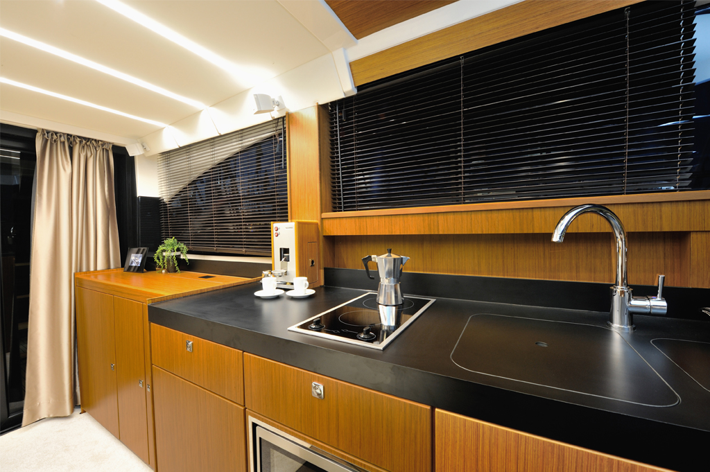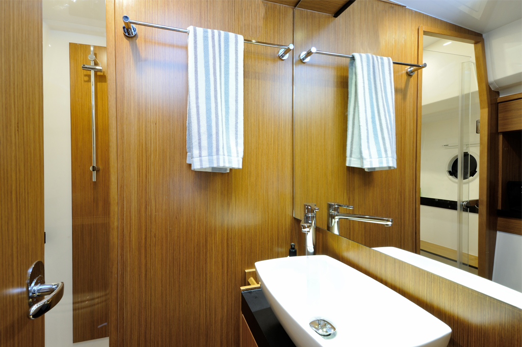 | Outside | 220 V-Landanschluss, Badeleiter, Biminitop, Cockpitdusche, Cockpitlautsprecher, Cockpittisch, elektr. Ankerwinsch, Flybridge, Gangway, Grill, Treibanker |