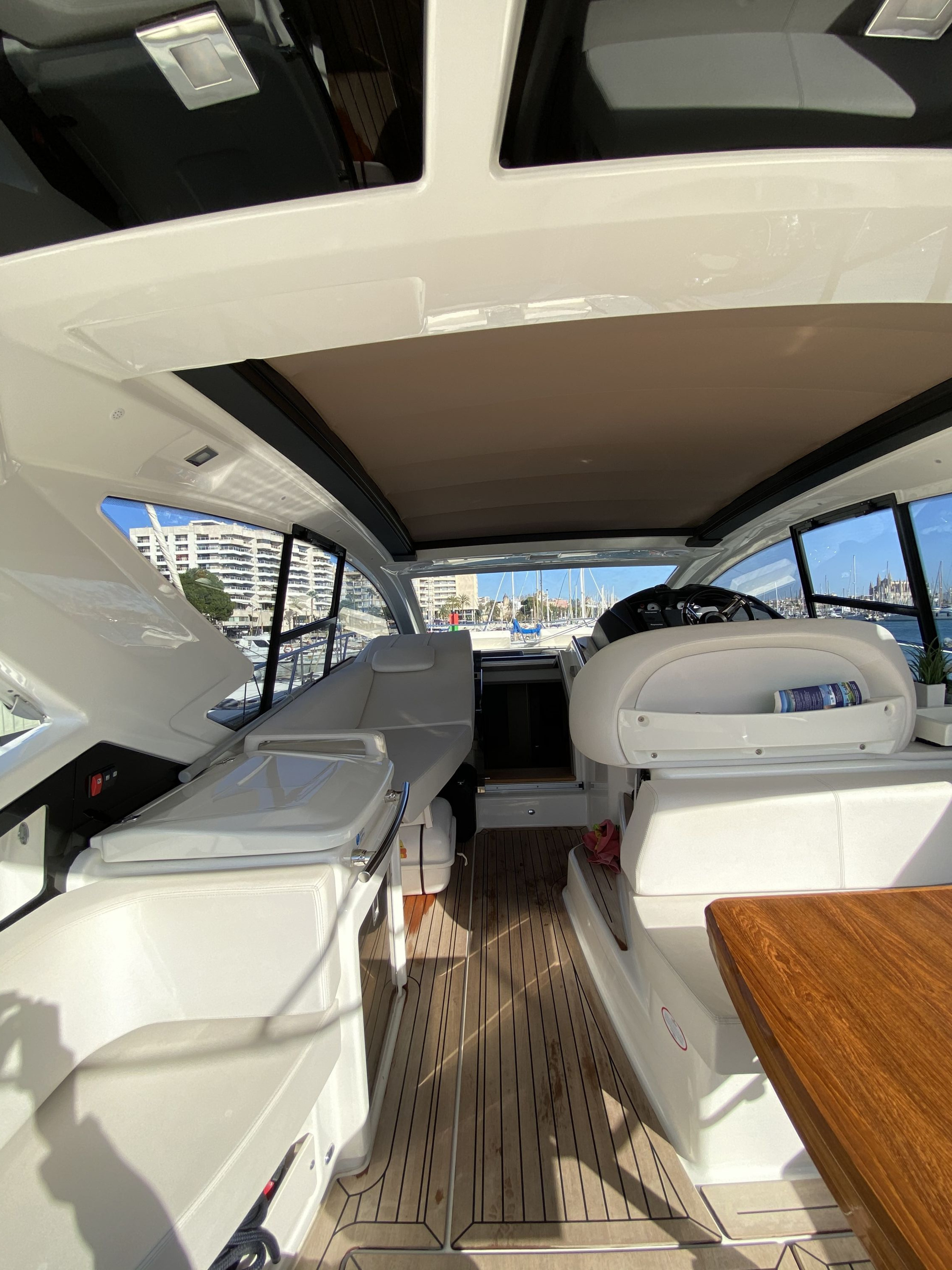 | Outside | 220 V-Landanschluss, Badeplattform, Biminitop, Cockpitdusche, elektr. Ankerwinsch, Elektrogrill, Grill, Sprayhood, Teak im Cockpit |