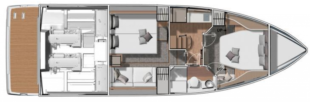| Outside | Badeplattform, elektr. Ankerwinsch, Grill, hydraul. Gangway, Teakdeck |