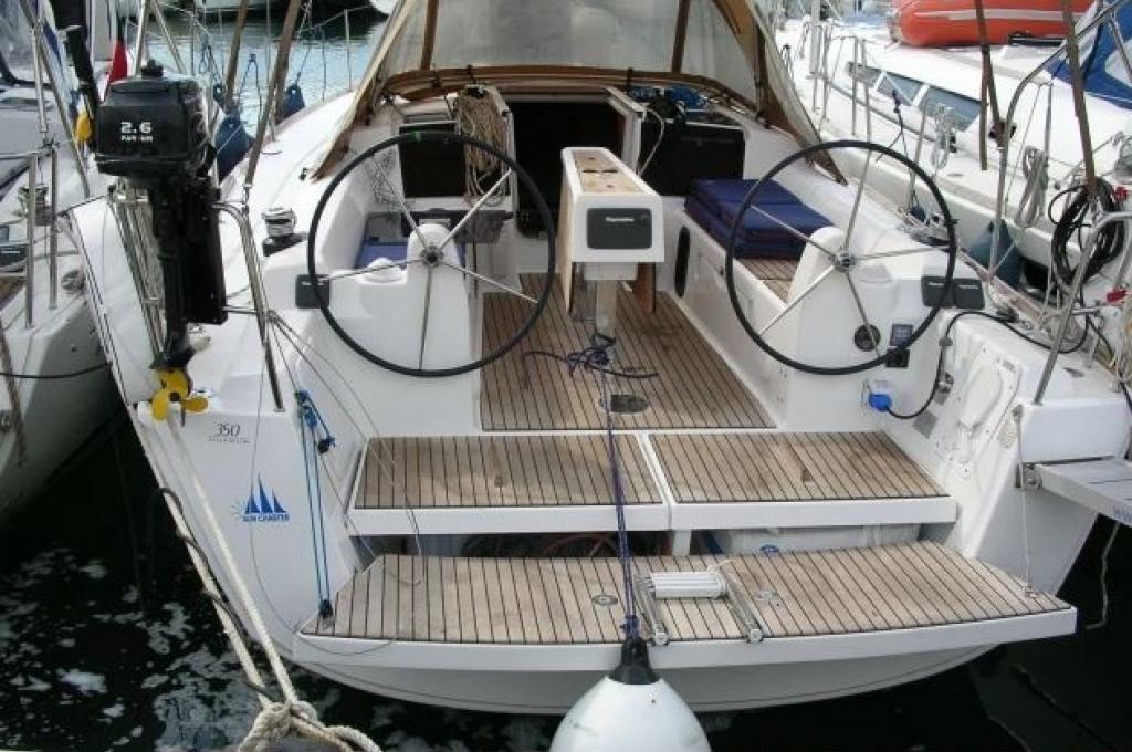 Outside 220 V-Landanschluss, Anker mit Kette, Ankerwinsch, Biminitop, Bootshaken, Cockpitdusche, Cockpitlautsprecher, Cockpitpolster, Cockpittisch, Dieselkanister , elektr. Ankerwinsch, Fender, Festmacherleinen, Gangway, Kugelfender, Kunststoff-Eimer (Pütz), Lifeline System, Sprayhood, Teak im Cockpit, Wantenschneider, Wasserkanister , Wasserschlauch, Windex