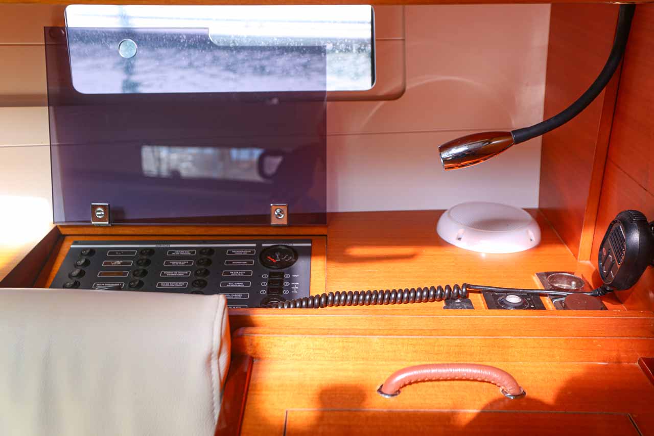 | Safety | AIS Empfänger, Automatikwesten, Autopilot, Blitzboje, Bootsmannstuhl, Bordapotheke, Bordwerkzeug, Epirb, Feuerlöscher, Lifebelts, Motor-Ersatzteile, Nebelhorn, Notsignale, Radarreflektor, Rettungsinsel, Suchscheinwerfer, Taschenlampe, UKW-Funk m. DSC, Zweitanker |