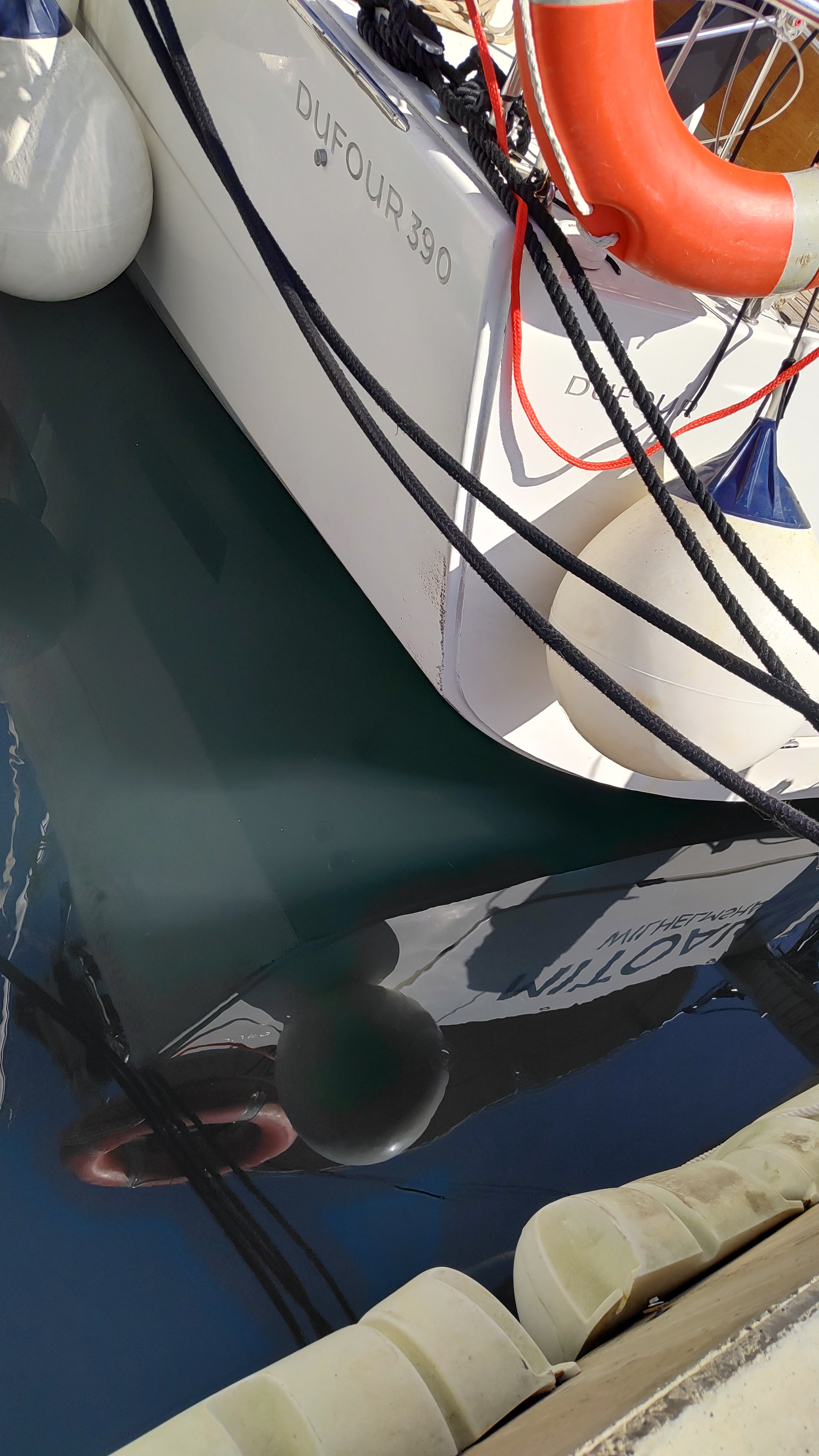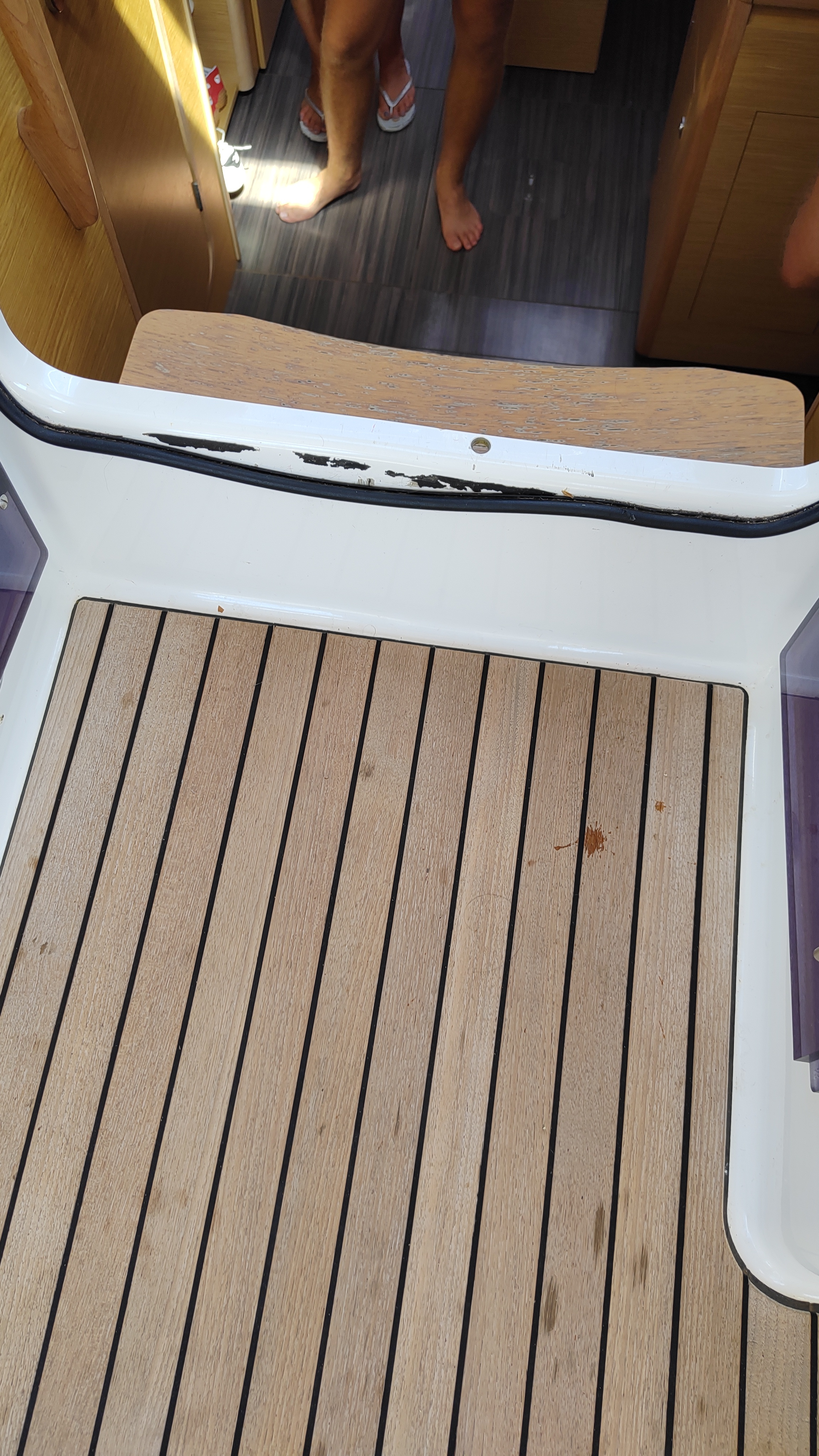 Boot war insgesamt in gutem Zustand, nur kleine Mängel: Verklicker blieb oft hängen, Ausstiegshilfe Badeleiter links blieb nicht in Position.