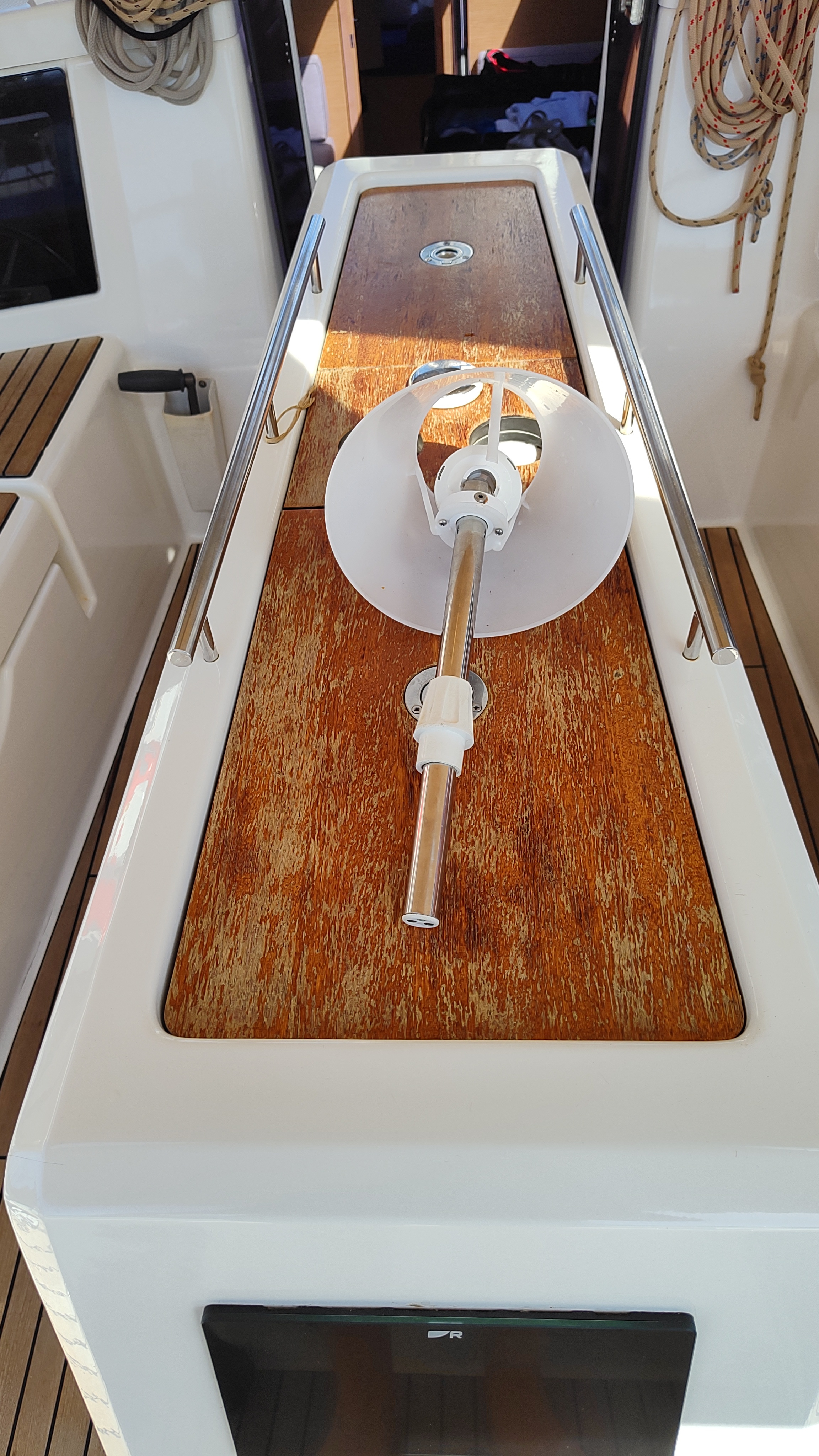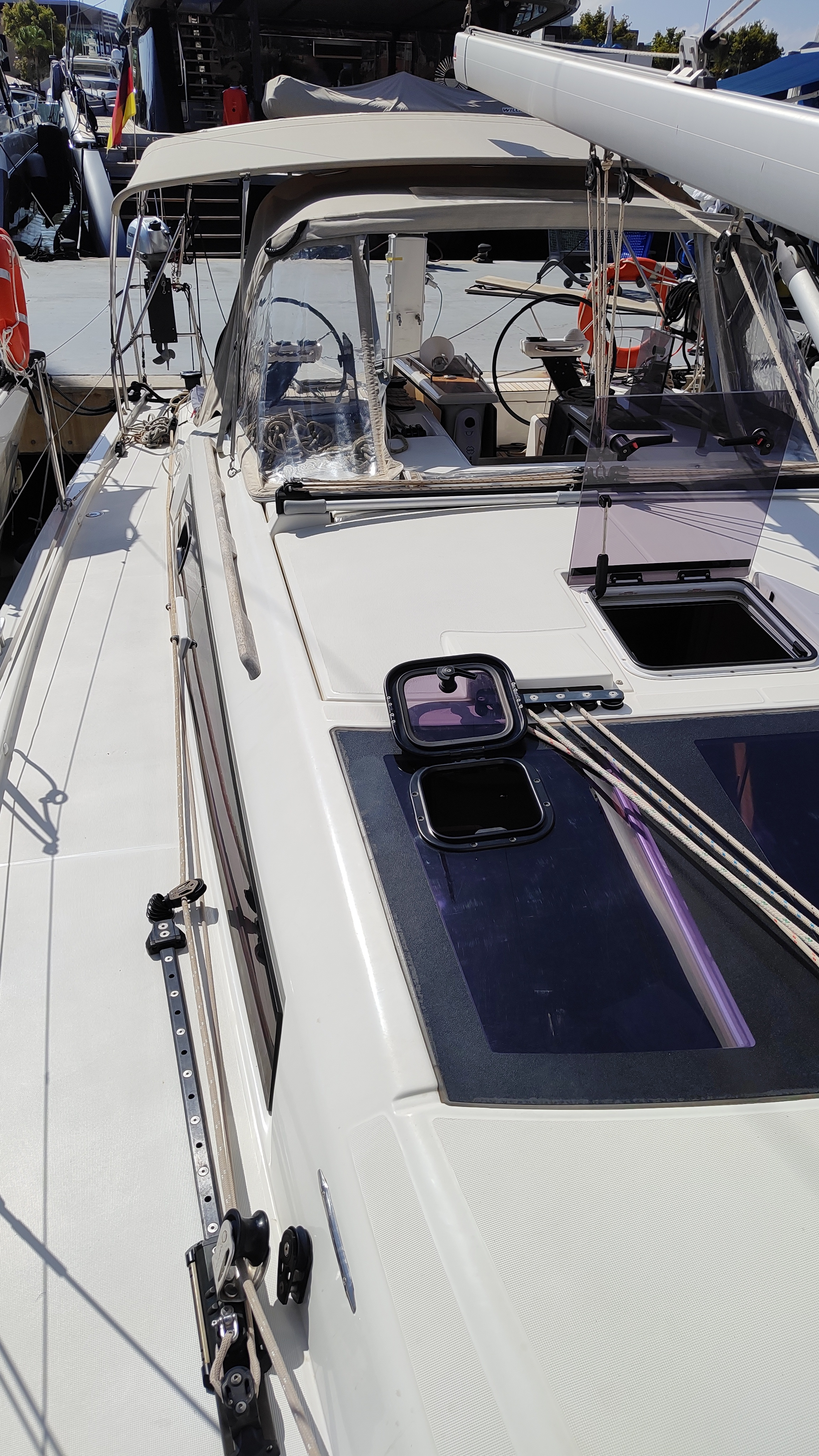 | Outside | Biminitop, Cockpitpolster, Cockpittisch, elektr. Ankerwinsch, Fender, Festmacherleinen, Gangway, Grill, Heckdusche, Lifeline System, Sprayhood, Teak im Cockpit, Wet Bar |