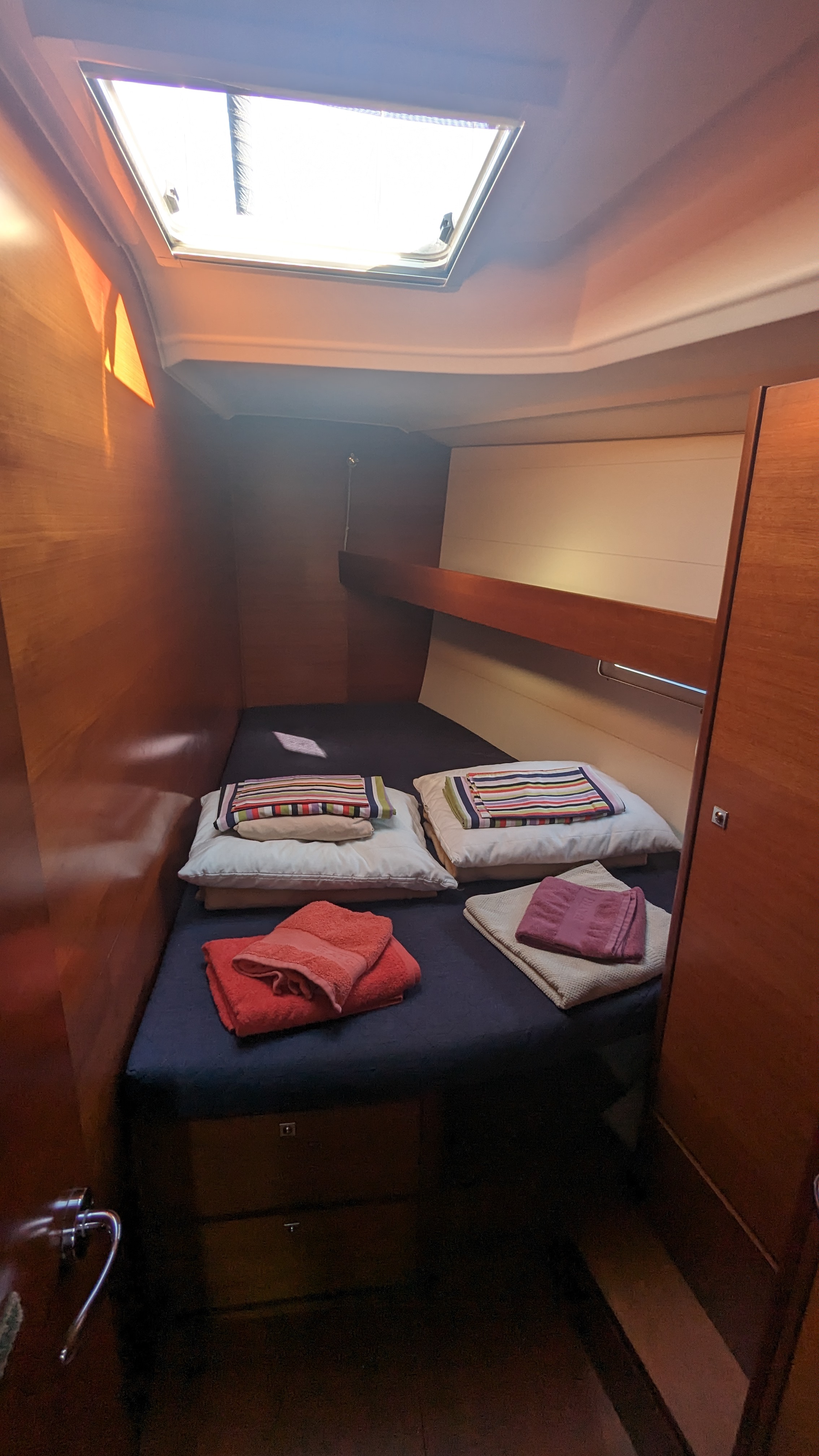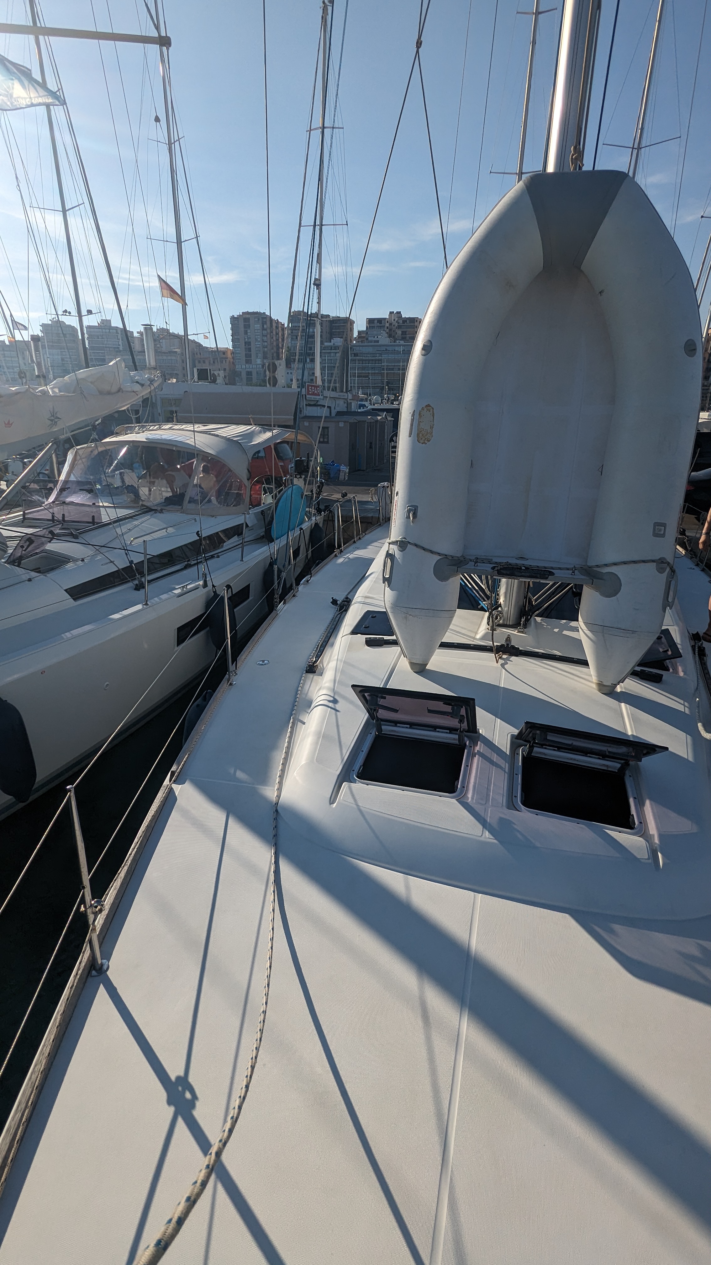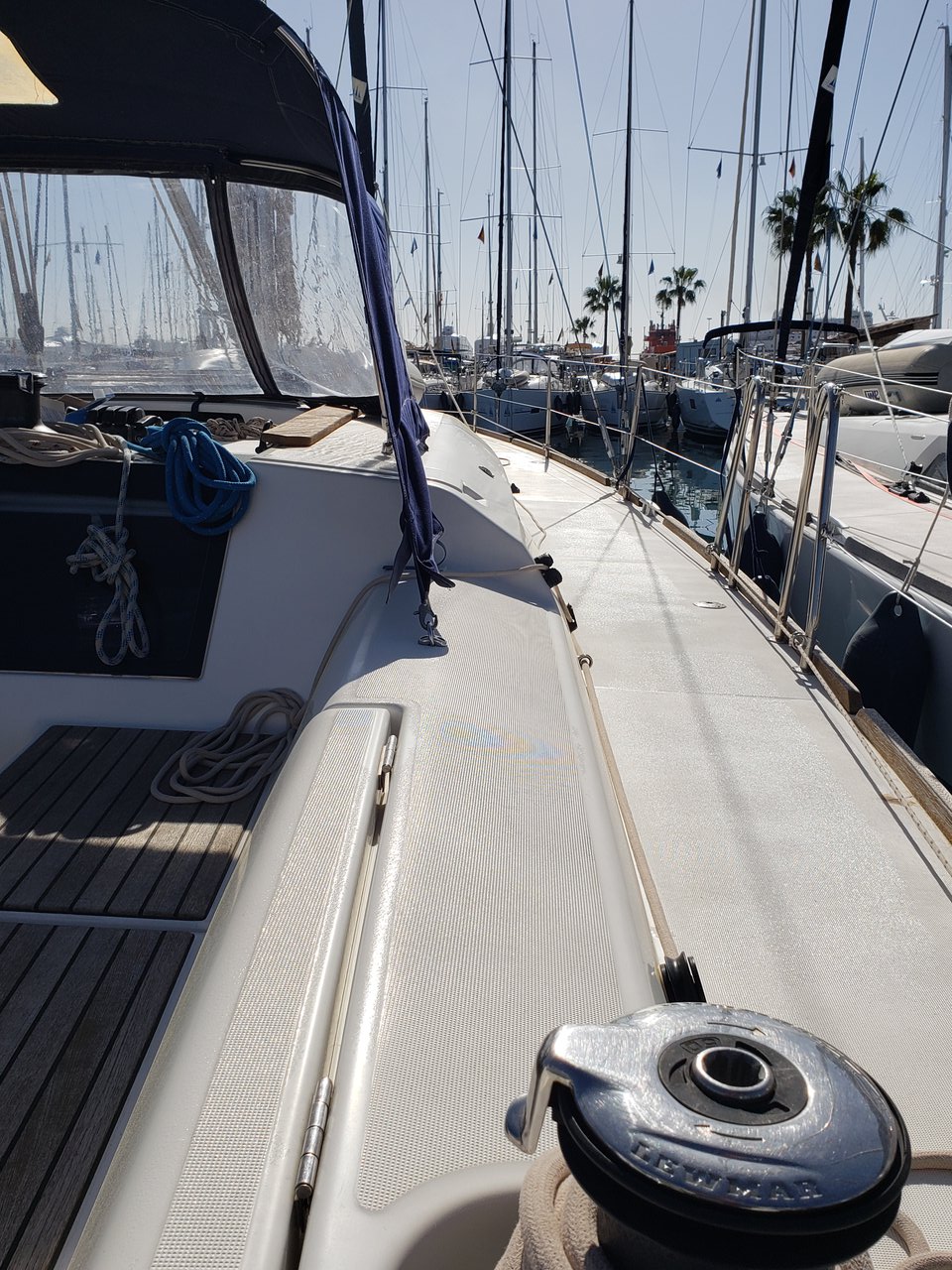 220 V-Landanschluss, Anker mit Kette, Ankerwinsch, Badeleiter, Biminitop, Bootshaken, Cockpitdusche, Cockpitlautsprecher, Cockpitpolster, Cockpittisch, Dieselkanister , elektr. Ankerwinsch, Fender, Festmacherleinen, Gangway, Heckdusche, Kugelfender, Kunststoff-Eimer (Pütz), Sonnensegel, Sprayhood, Teak im Cockpit, Treibanker, Wantenschneider, Wasserkanister , Wasserschlauch, Windex |