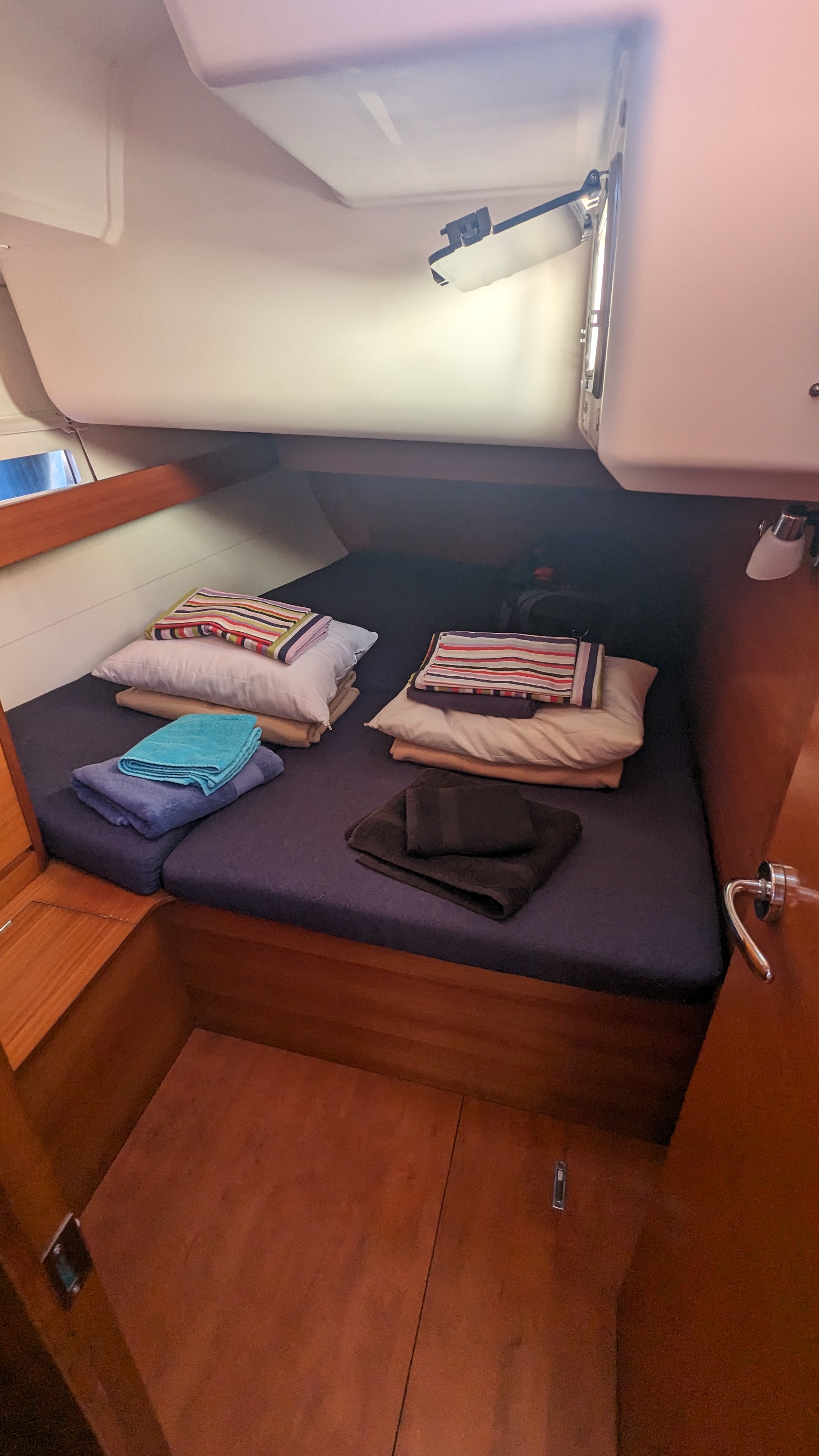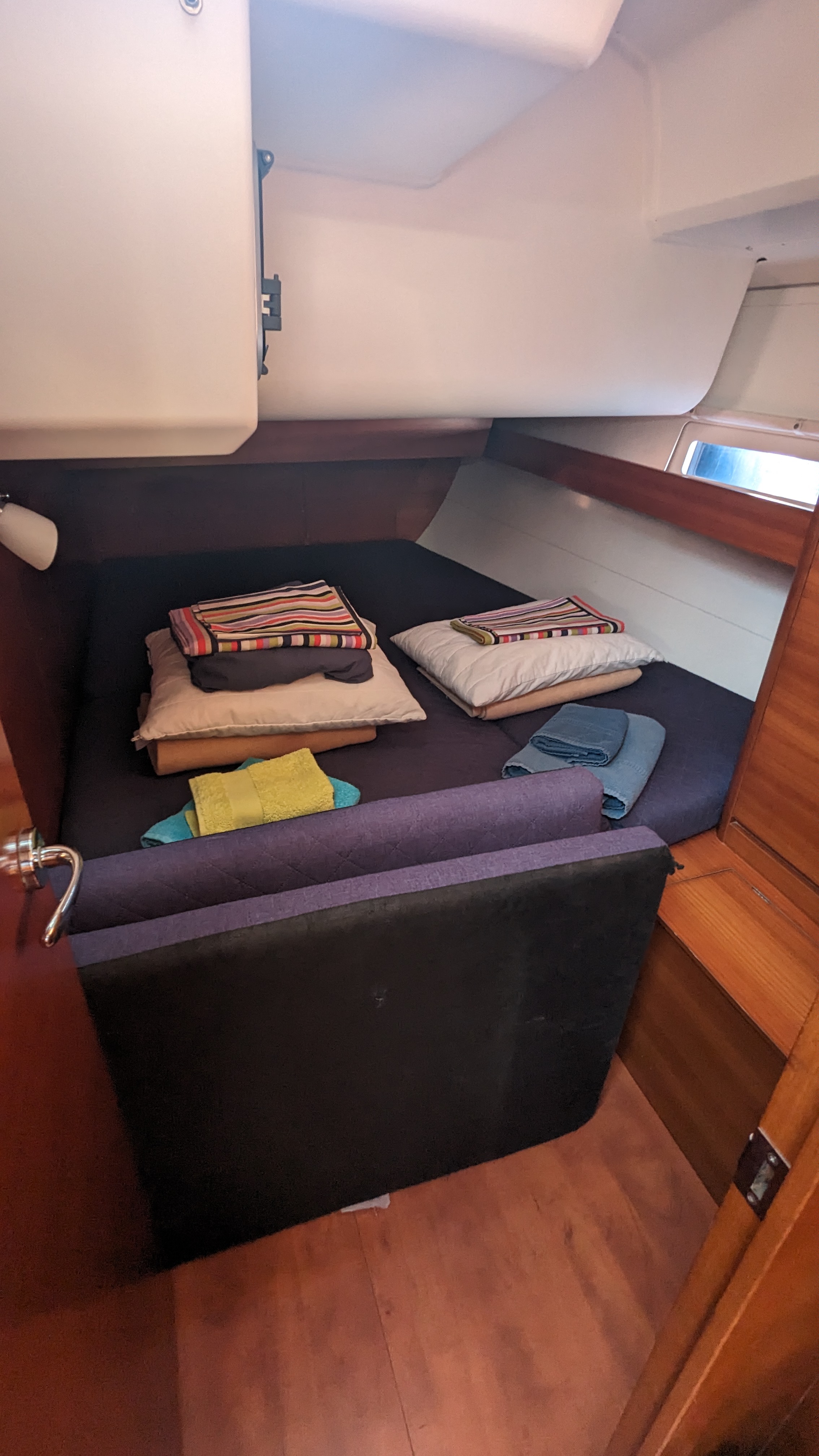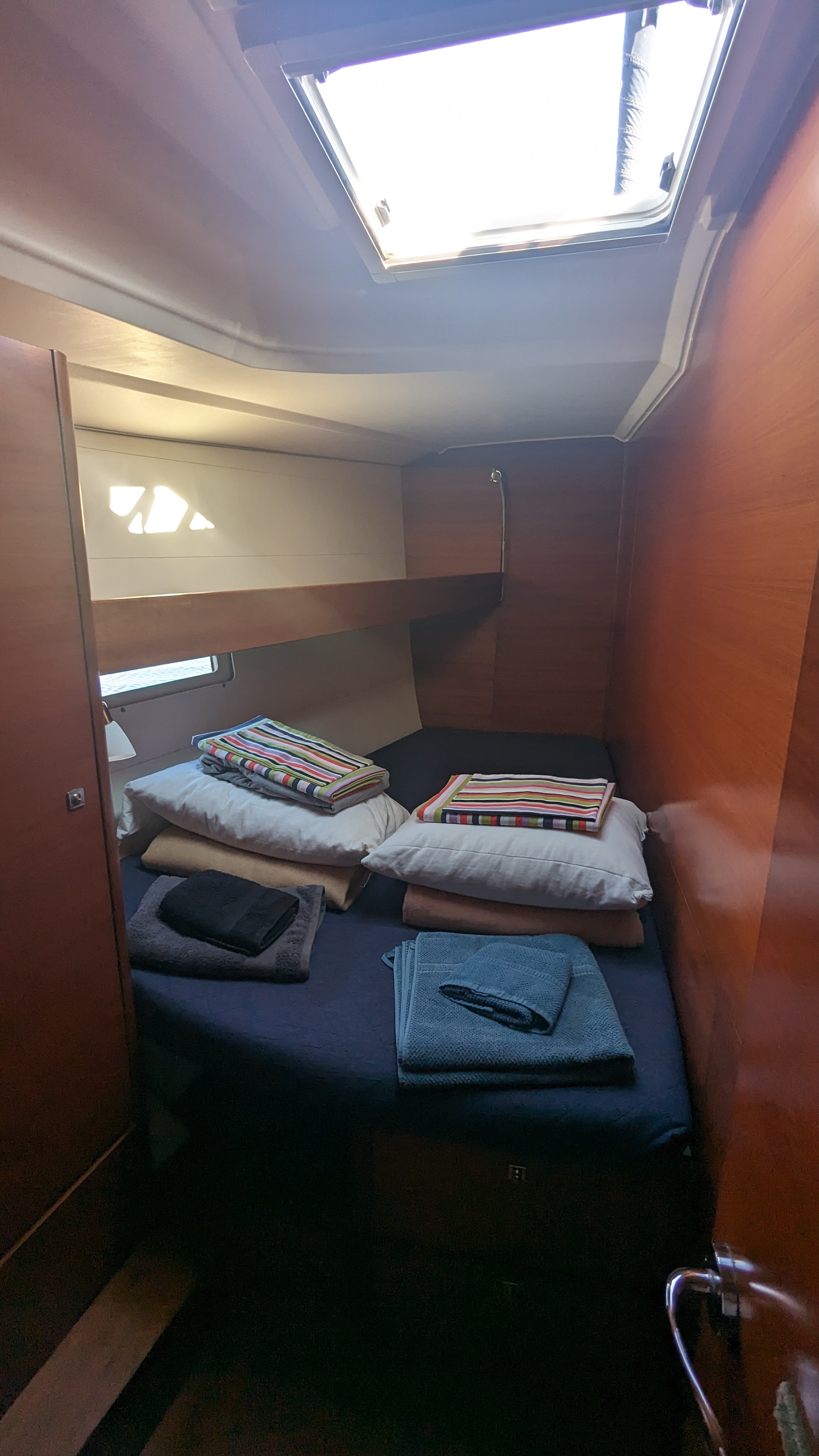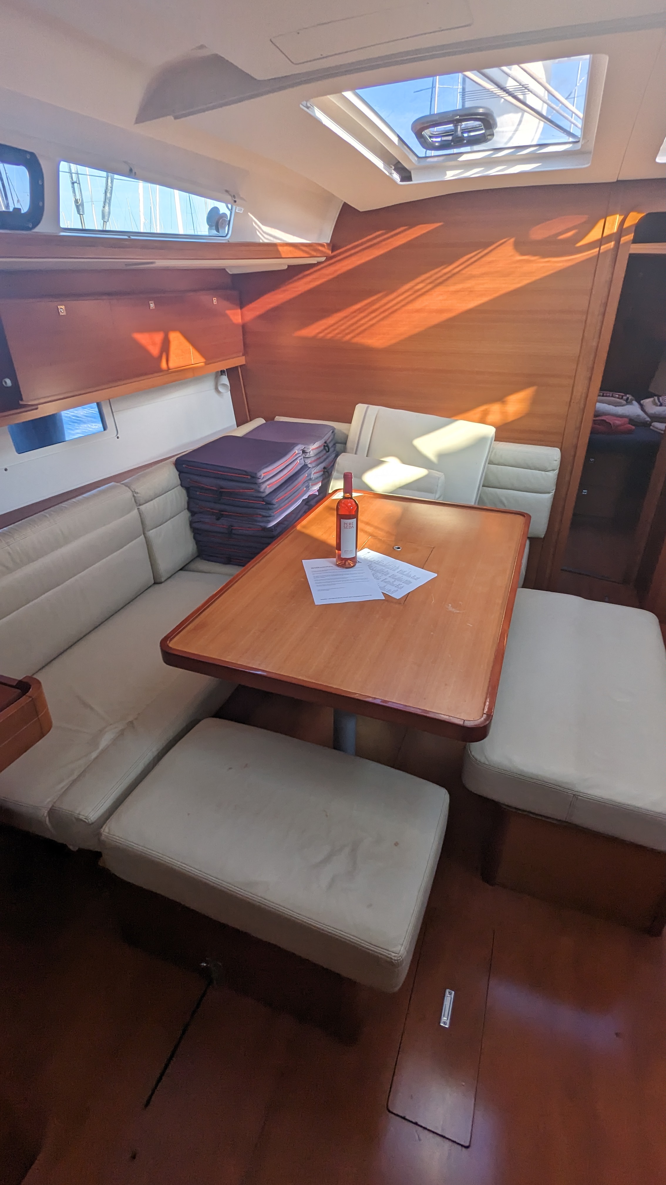 220 V-Landanschluss, Anker mit Kette, Ankerwinsch, Badeleiter, Biminitop, Bootshaken, Cockpitdusche, Cockpitlautsprecher, Cockpitpolster, Cockpittisch, Dieselkanister , elektr. Ankerwinsch, Fender, Festmacherleinen, Gangway, Heckdusche, Kugelfender, Kunststoff-Eimer (Pütz), Sonnensegel, Sprayhood, Teak im Cockpit, Treibanker, Wantenschneider, Wasserkanister , Wasserschlauch, Windex |