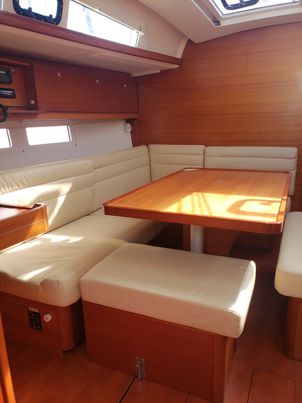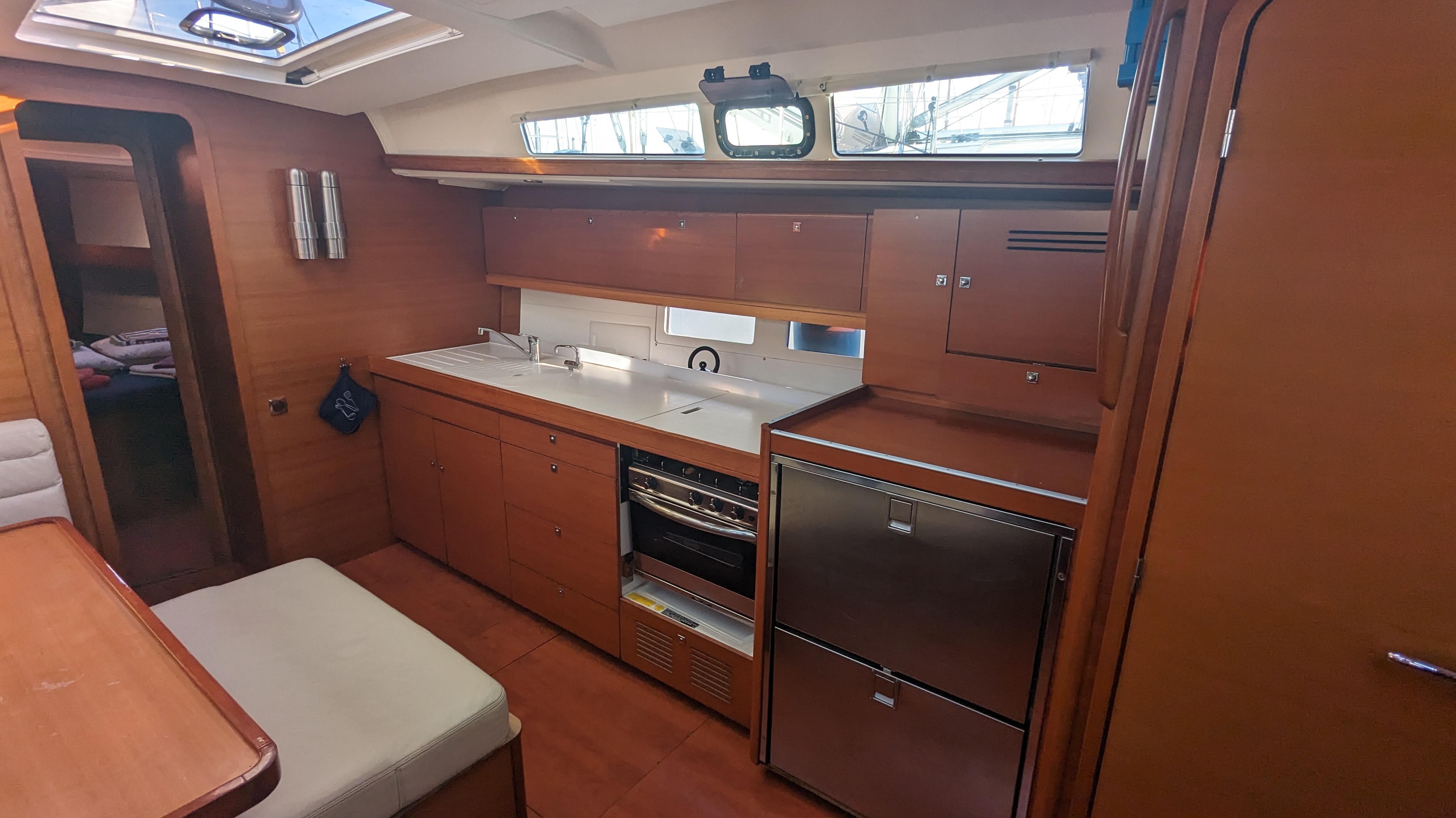12V Steckdose, 220V Steckdosen, Borduhr, Fäkalientank, Gasherd mit Backofen, Inverter 12V/220V, Kühlschrank, Ladegerät, Luftpumpe für Beiboot, Pantryausstattung, Radio, Salontisch absenkbar, Warmwasser, WC (elektr.) |