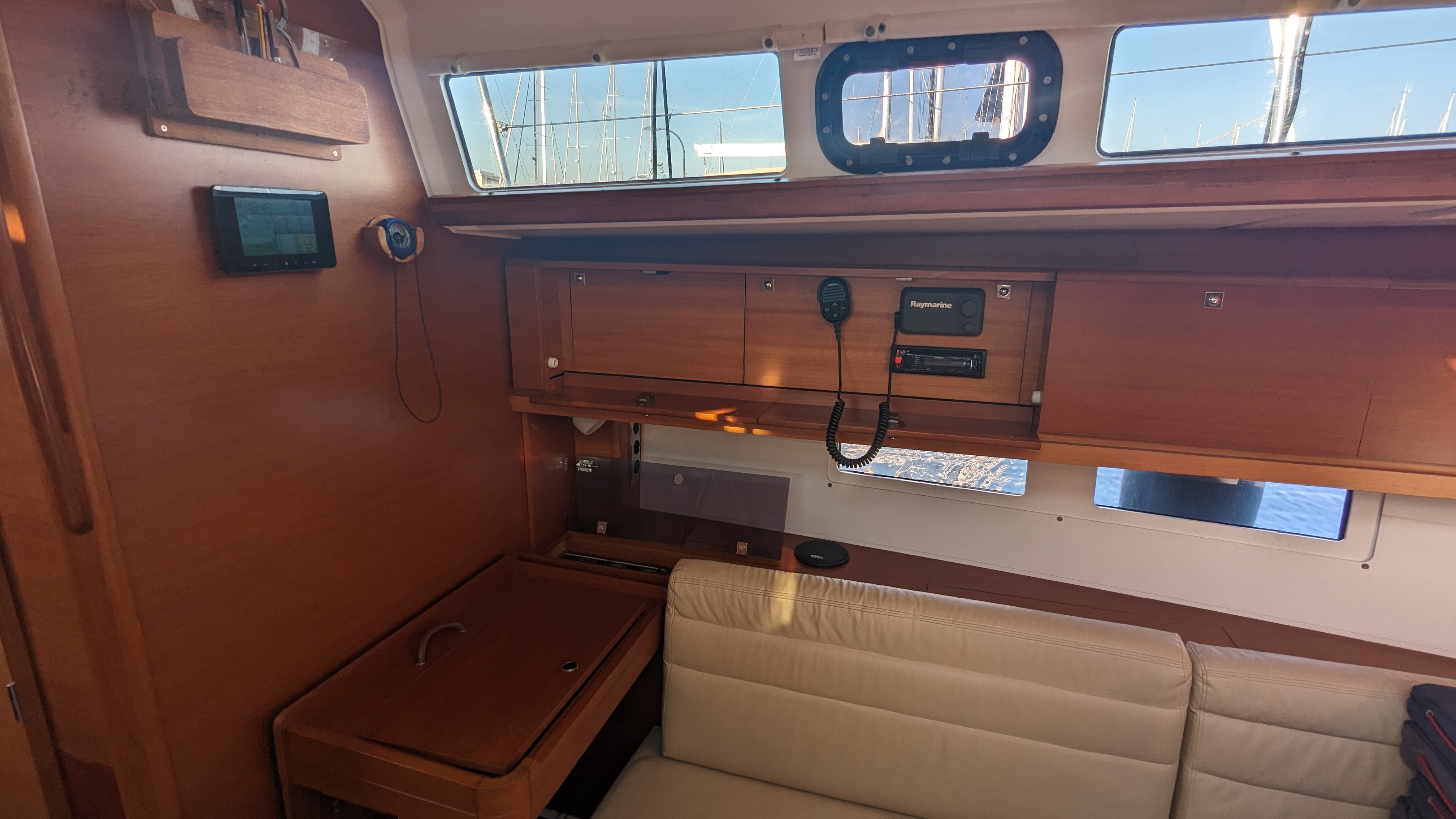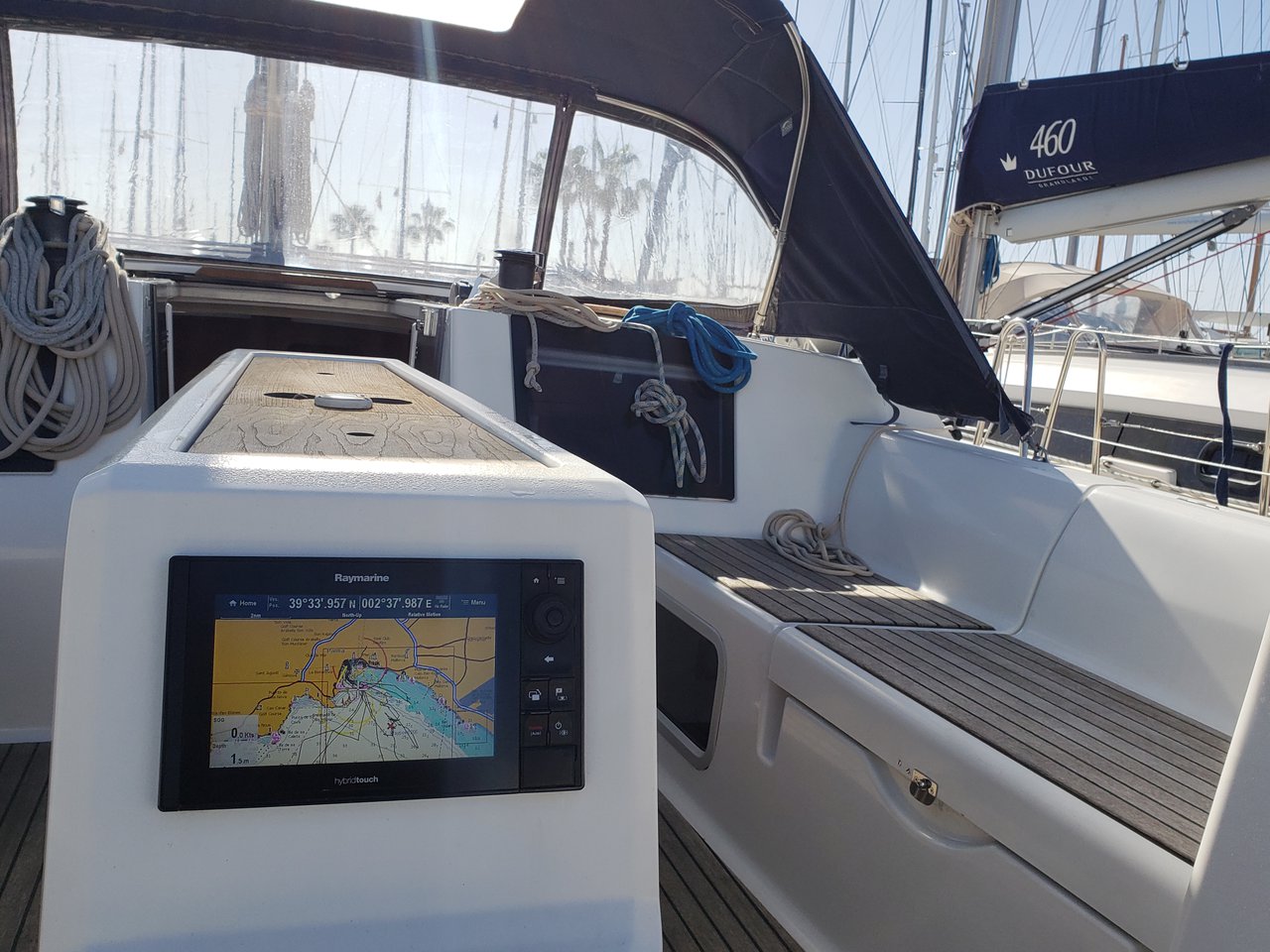 Barometer, Echolot, Farbkartenplotter, Fernglas, GPS mit Kartenplotter im Cockpit, Hafenhandbücher, Handpeilkompass, Kompass, Navigationsbesteck, Seekarten, Sumlog, Tridata (Log, Echolot, Windm.), Windmesser |