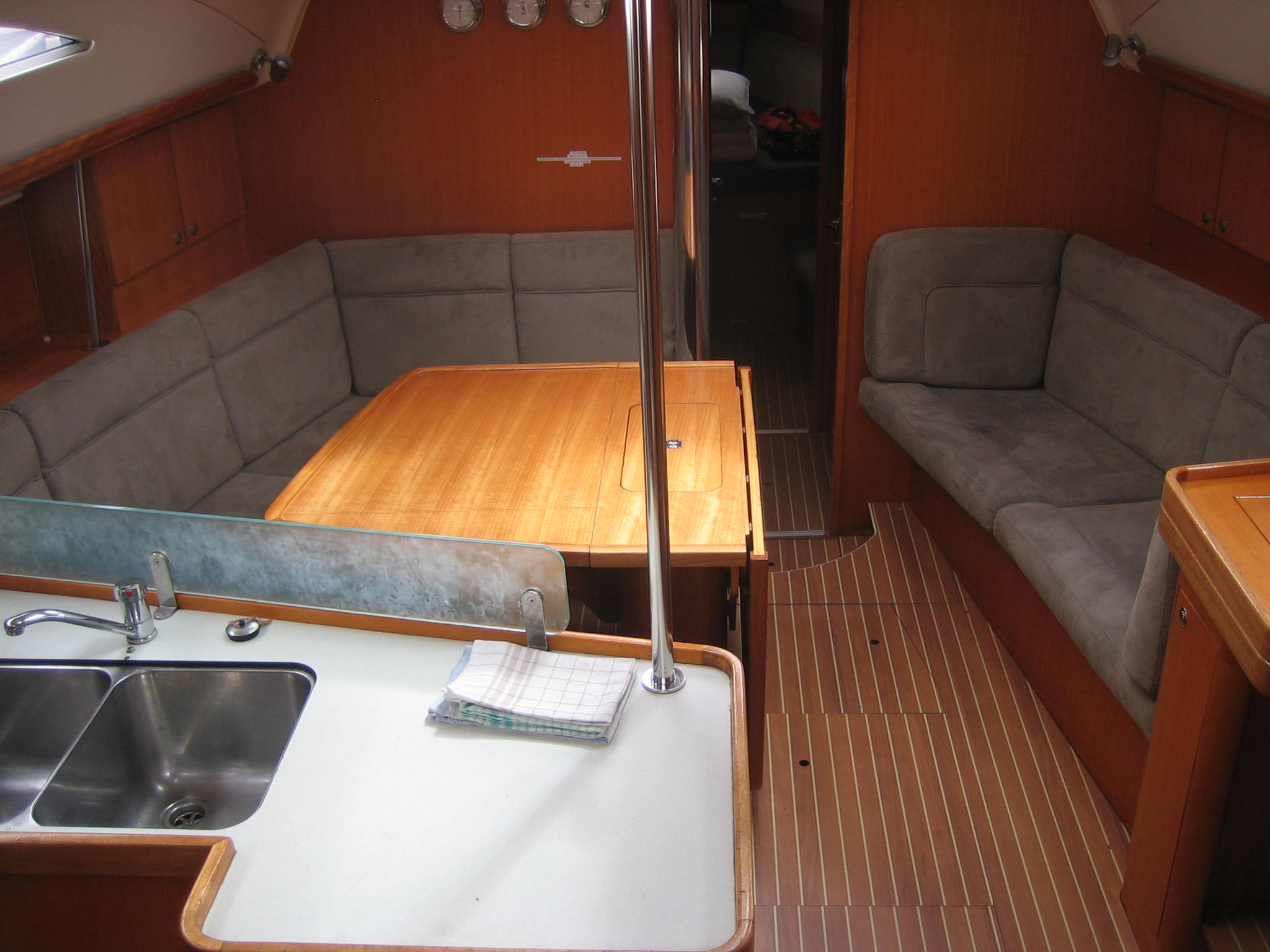 | Outside | 220 V-Landanschluss, Biminitop, Cockpitdusche, Cockpittisch, elektr. Ankerwinsch, Festmacherleinen, Solaranlage, Sprayhood, Teakdeck |