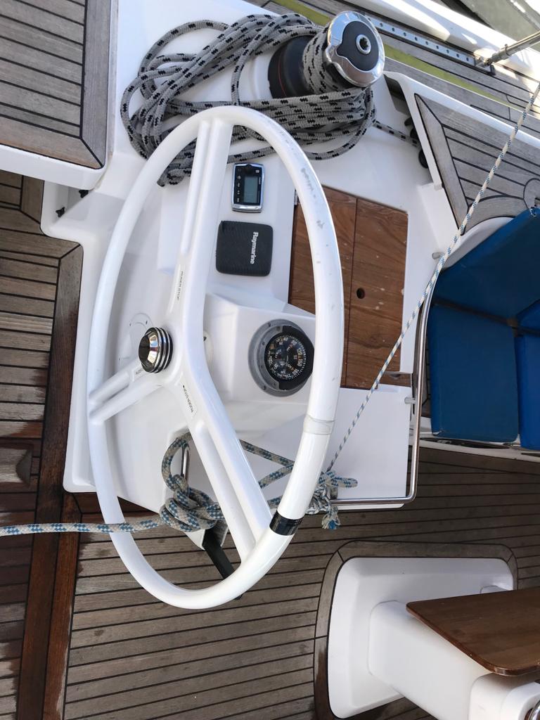 | Navigation | Barometer, Echolot, elektr. Seekarten, Fernglas, GPS mit Kartenplotter, GPS mit Kartenplotter im Cockpit, Hafenhandbücher, Handpeilkompass, Kompass, Navigationsbesteck, Seekarten, Sumlog, Windmesser |