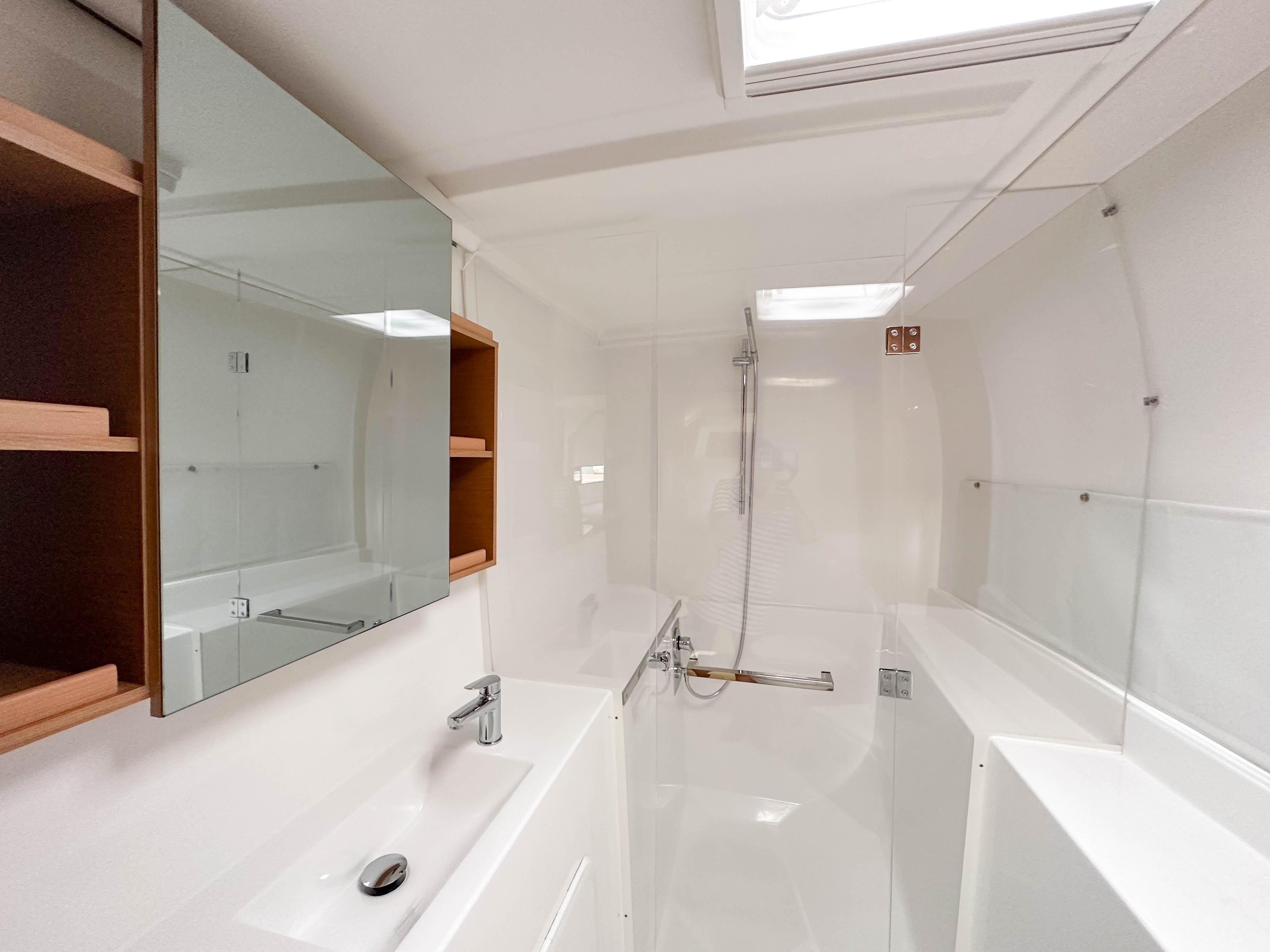 | Outside | Außendusche, Badeleiter, Badeplattform, Cockpitpolster, Cockpittisch, elektr. Ankerwinsch |